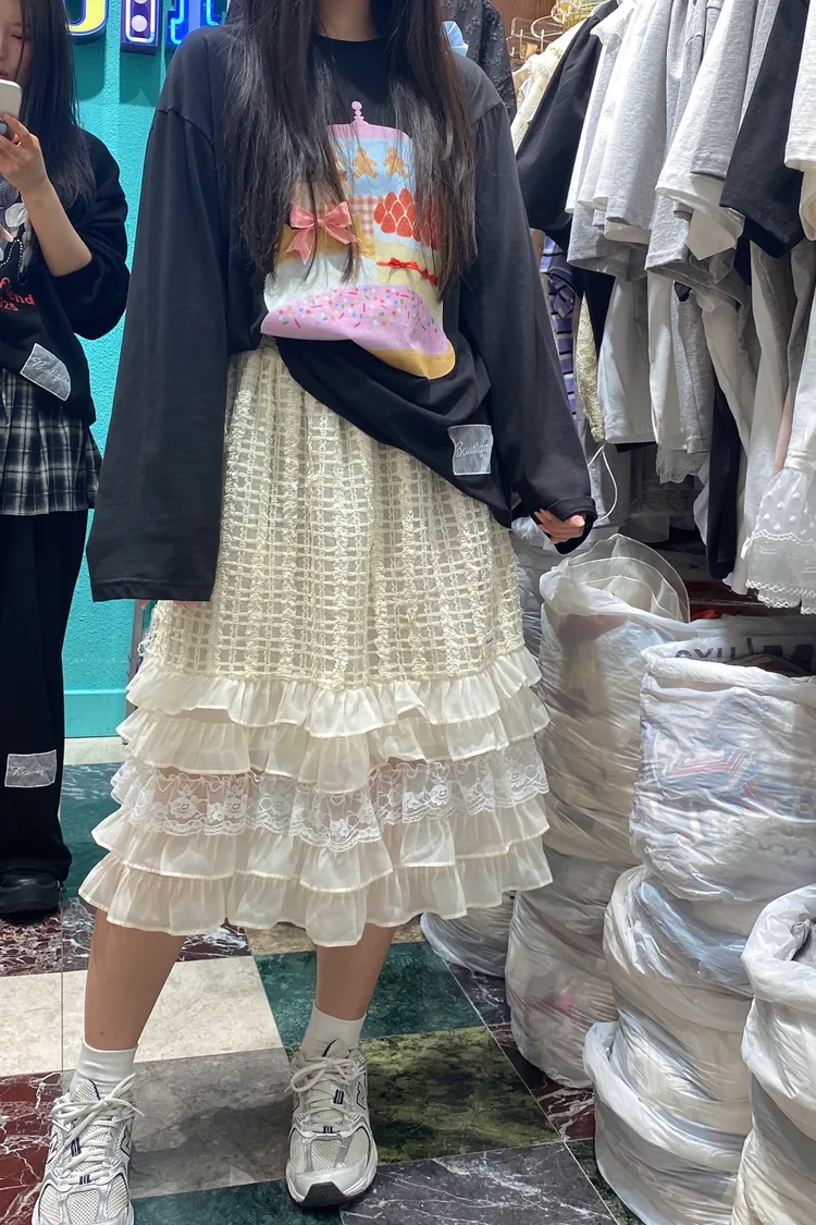 超像仙女專屬的小閃光裙~ 帶有細閃的格織網紗面料,走起路來自帶閃亮濾鏡 拼接層次蛋糕抓摺雪紡蕾絲裙擺,輕輕一轉就像花瓣散落~ 腰部整圈彈性鬆緊,S-XL妞都可以穿,怎麼搭都甜美度滿分! 不管配T恤還是小背心,輕鬆穿出浪漫小仙女LOOK小幫手166公分穿到小腿肚