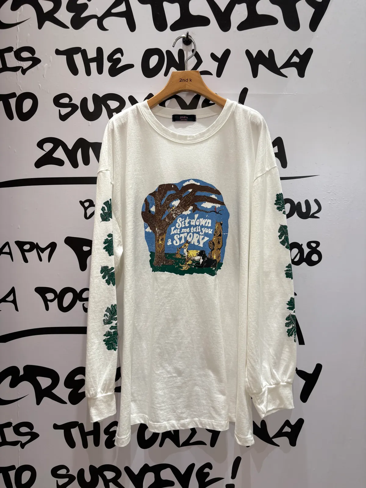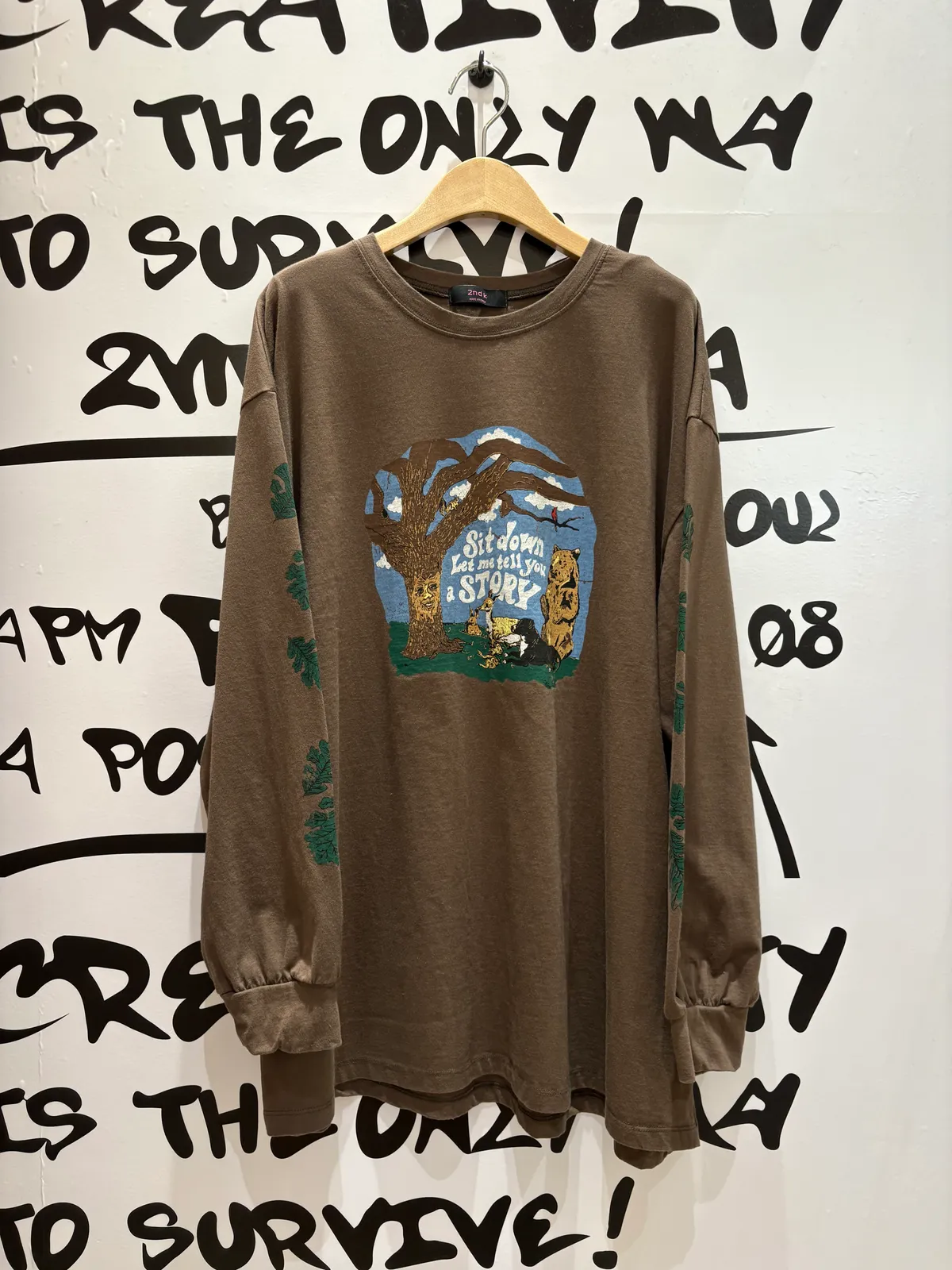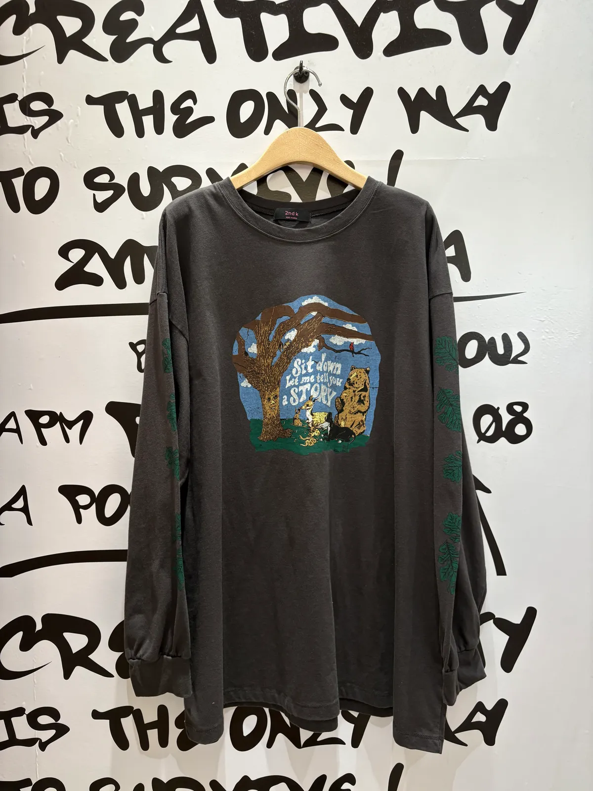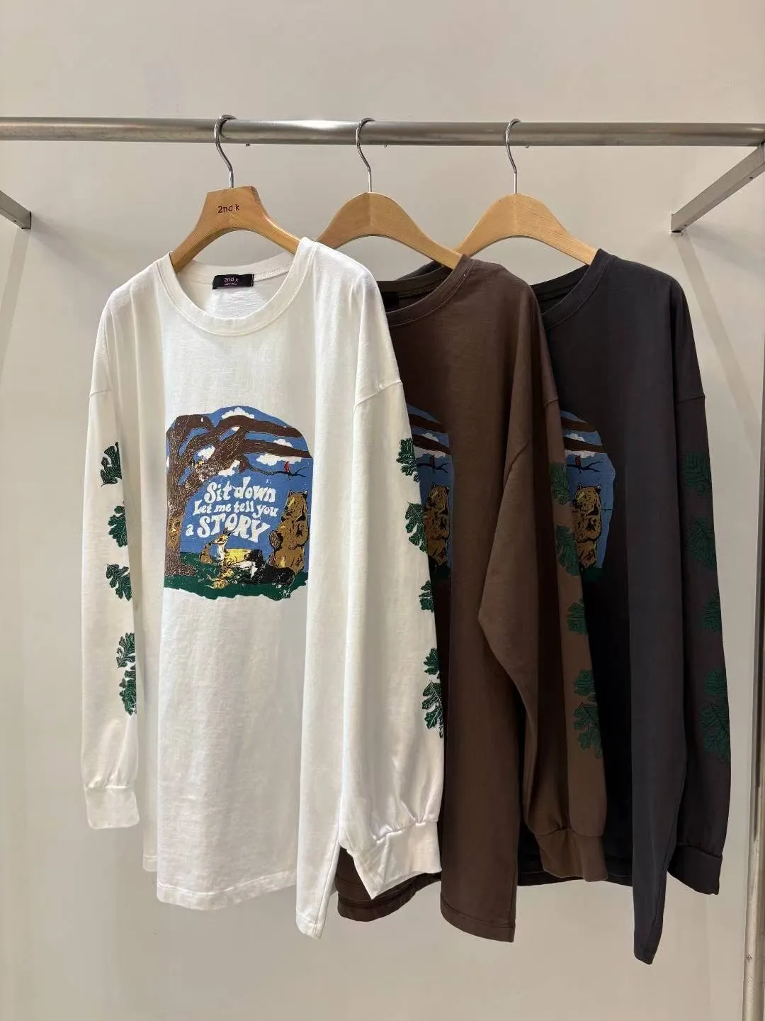 走進森林的奇幻世界,你展開一場冒險! 棉料材質、落肩寬鬆蓋臀版型,S-XL妞都可以穿 胸前印有可愛小動物和英文標語 sit down let me tell you a story 彷彿在邀請你聽一段溫暖的故事手袖兩側排滿綠意樹葉圖案,細節滿滿穿上它就像把整片森林帶在身上,可愛又童趣