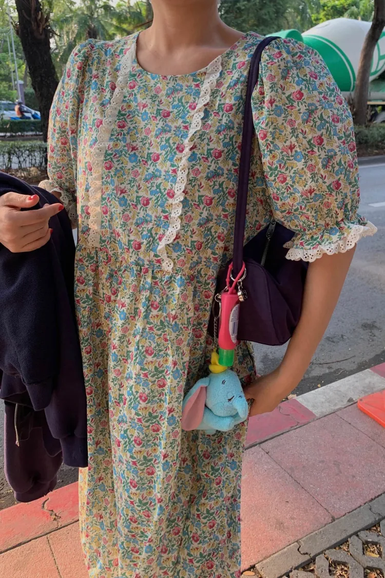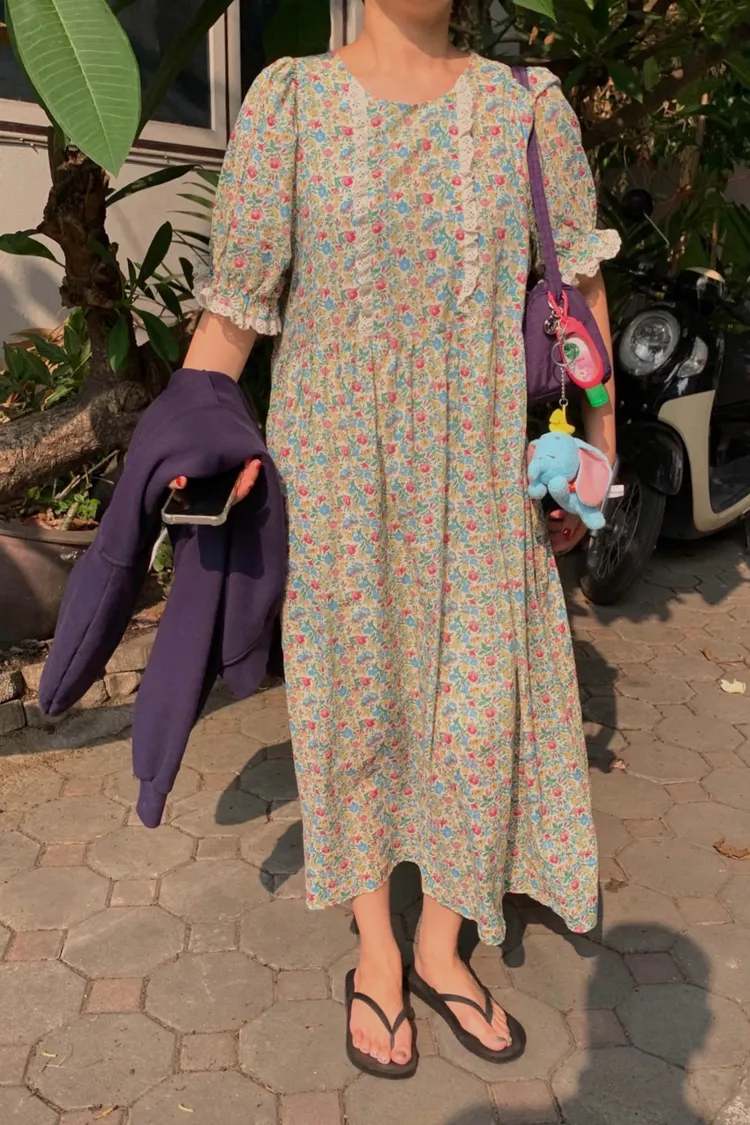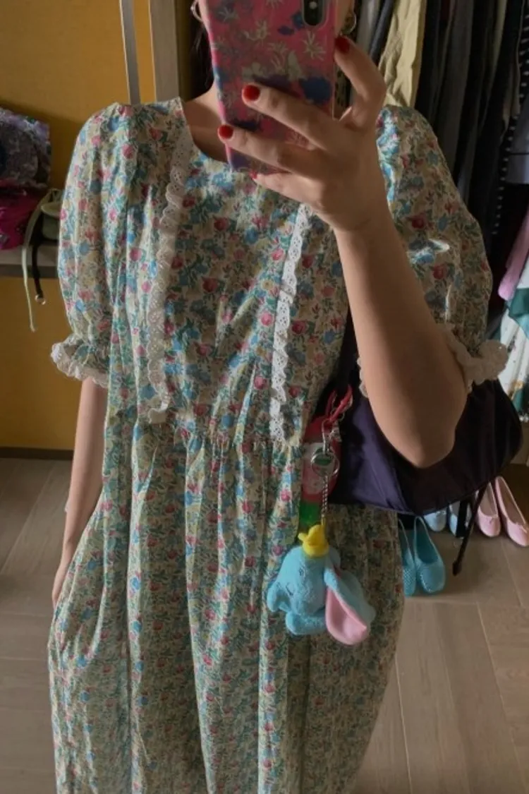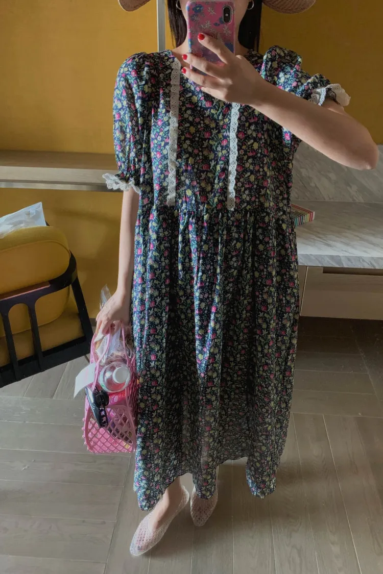 春夏的甜美代表作~ 輕薄棉料,高腰傘狀裙擺比例瞬間拉長,走路都像在飄♡,S-L妞都可以穿 滿版撞色小花超吸睛,甜而不膩,胸前和袖口還有緞帶蕾絲拼接,細節感大爆棚 蓬蓬袖設計讓手臂小修飾,整體剪裁剛剛好 背面有拉鍊好穿脫、有口袋 穿上它,不管是約會、逛街、野餐還是拍照打卡,都能美得像幅畫一樣~🌸