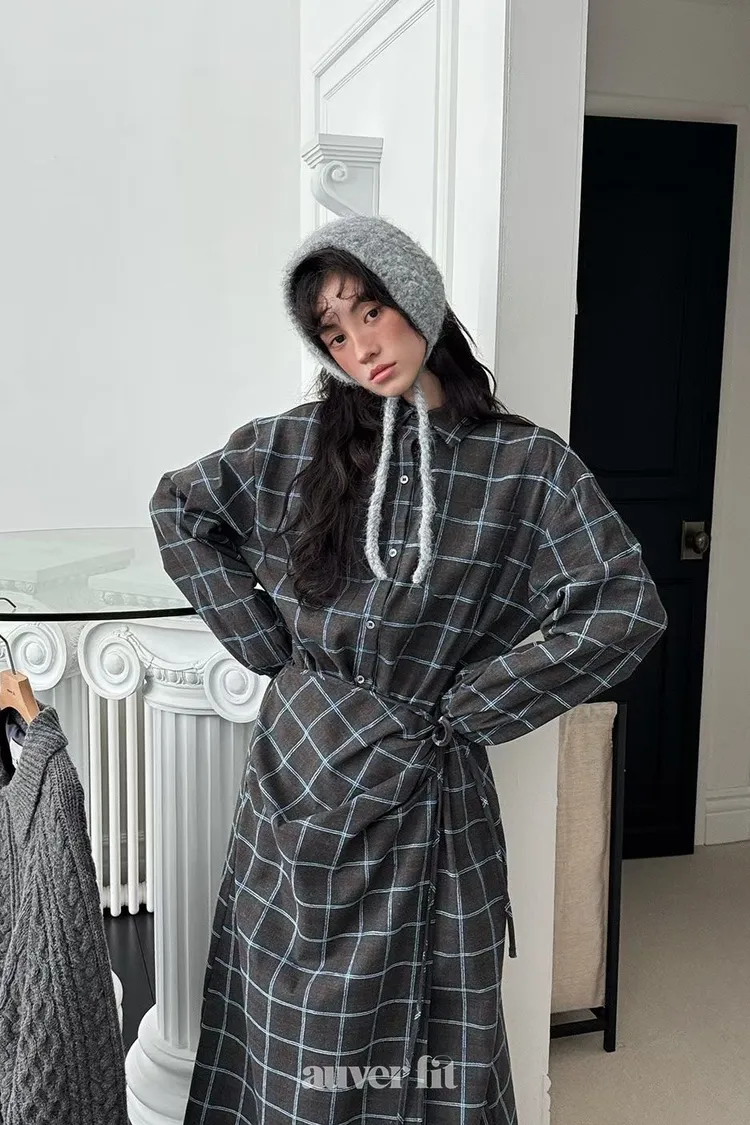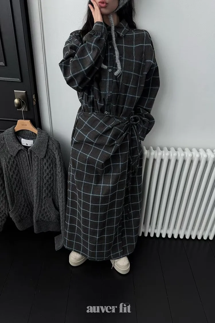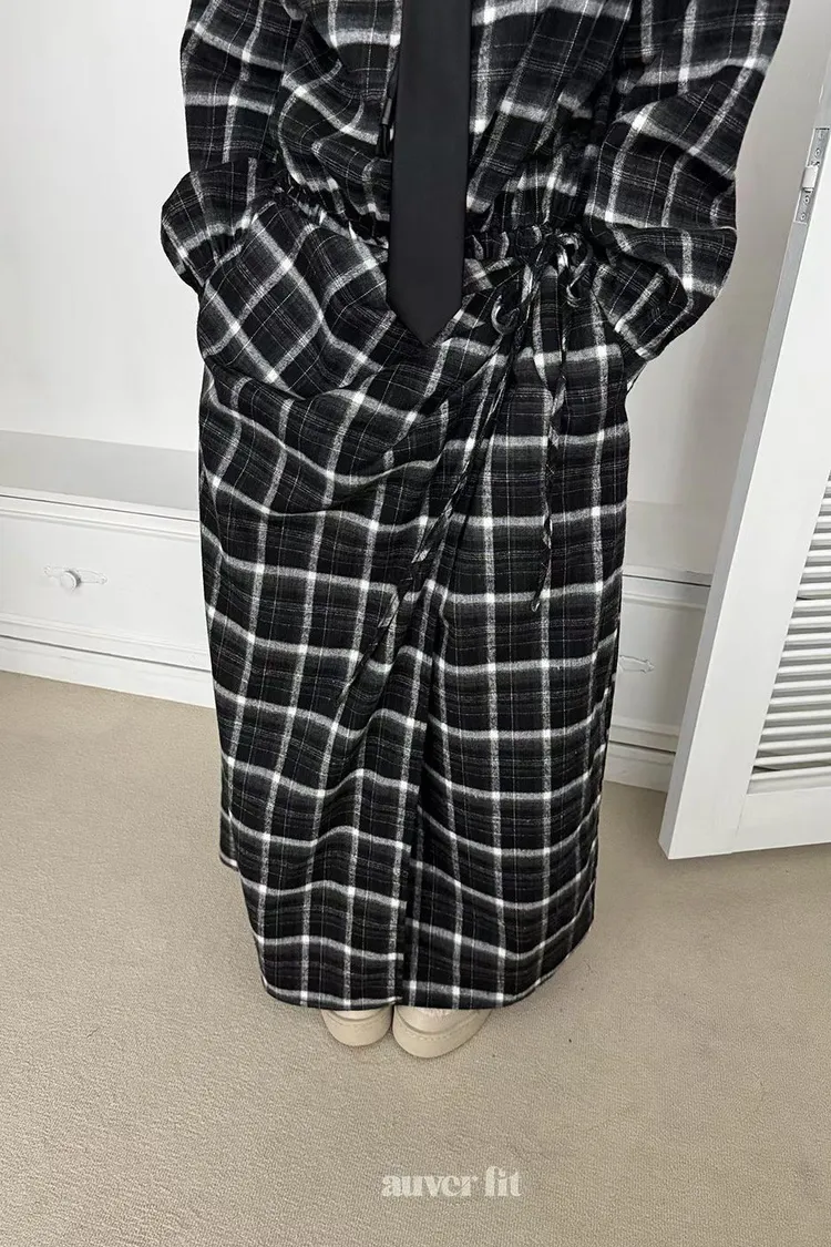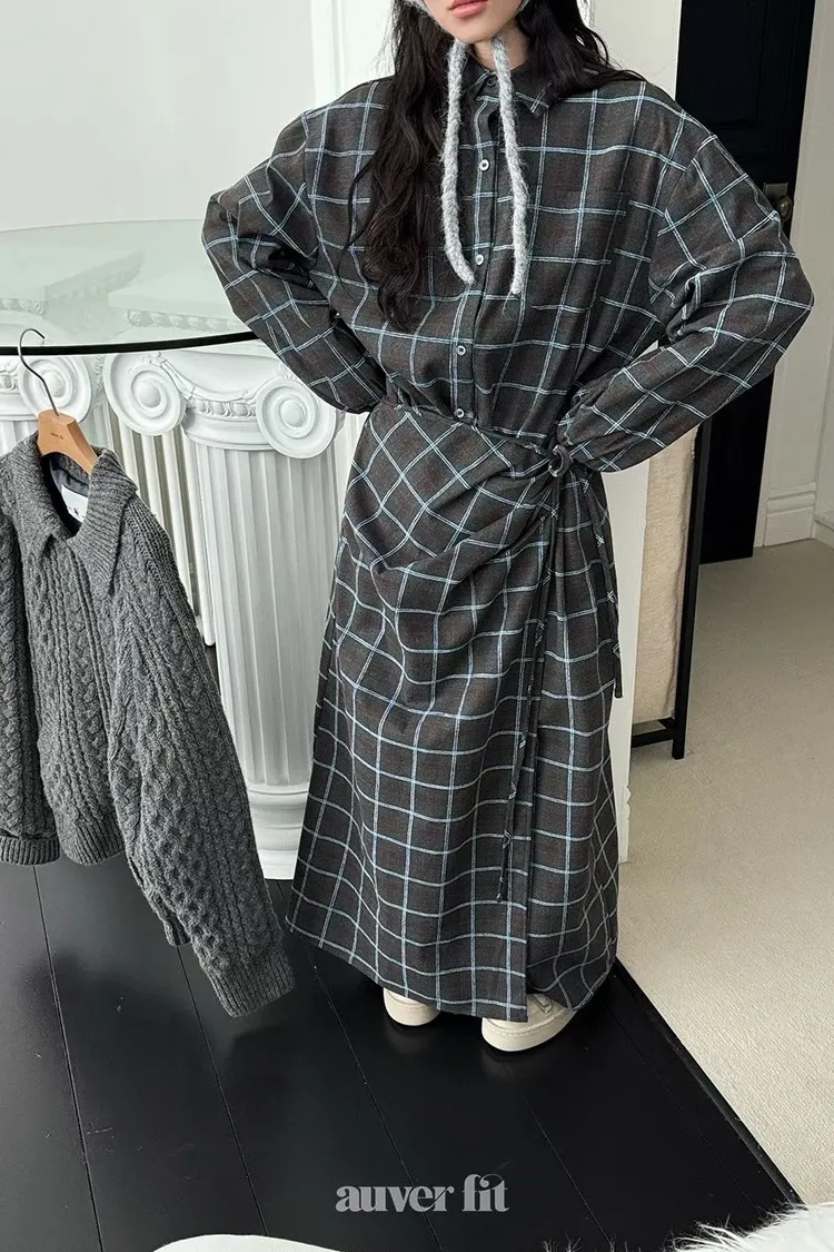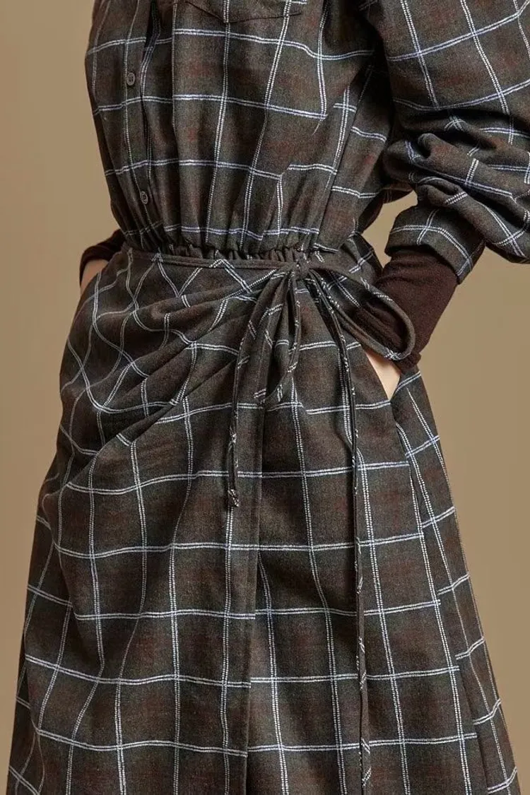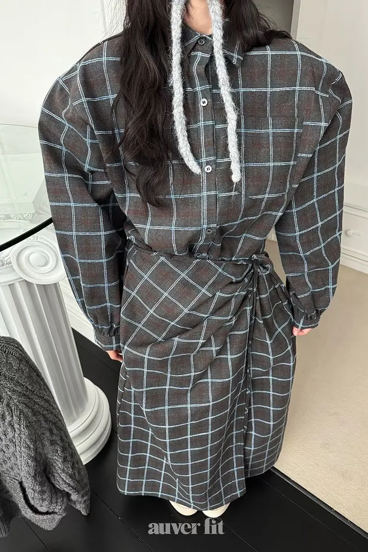 DCD03格紋午後磨毛棉造型綁帶襯衫洋