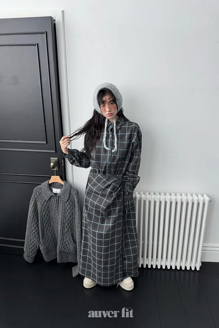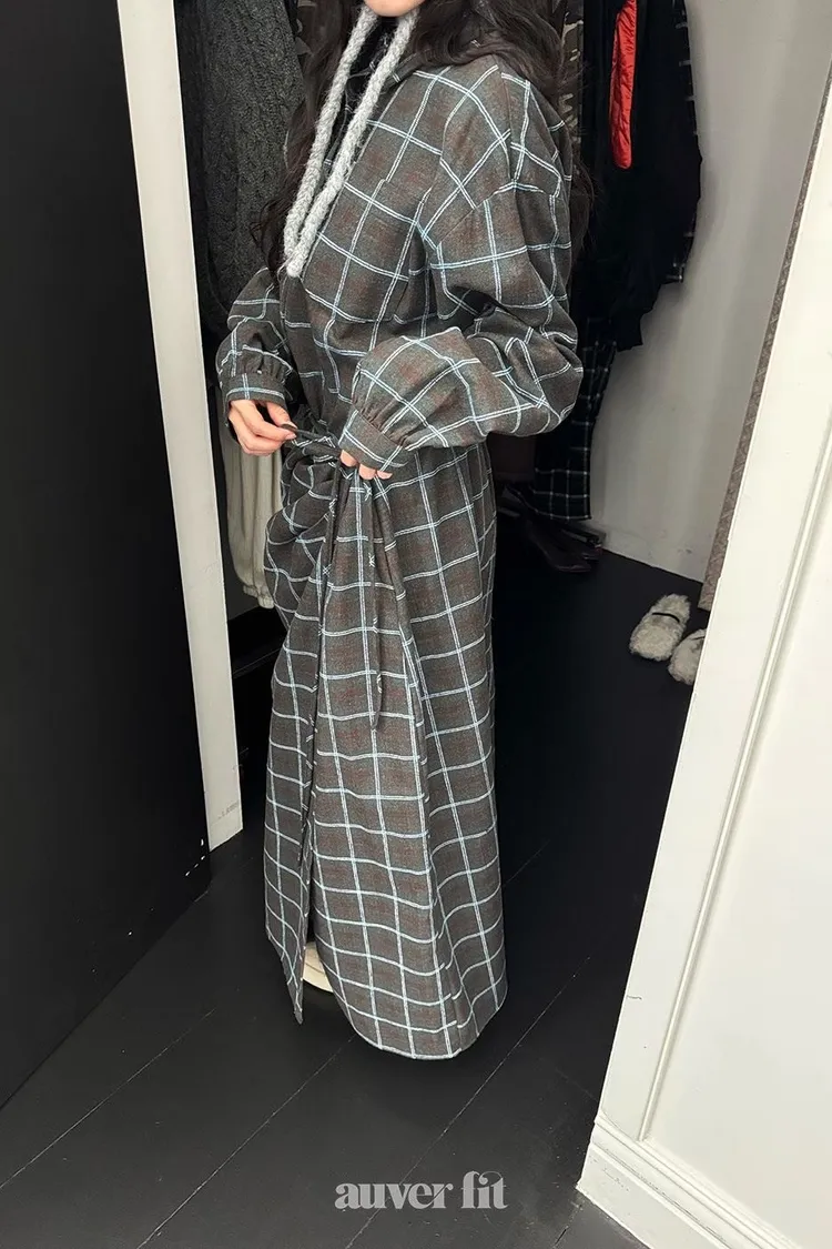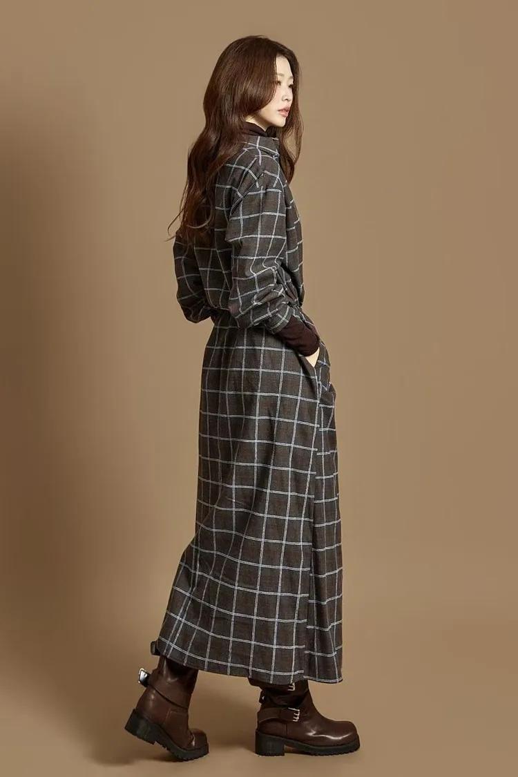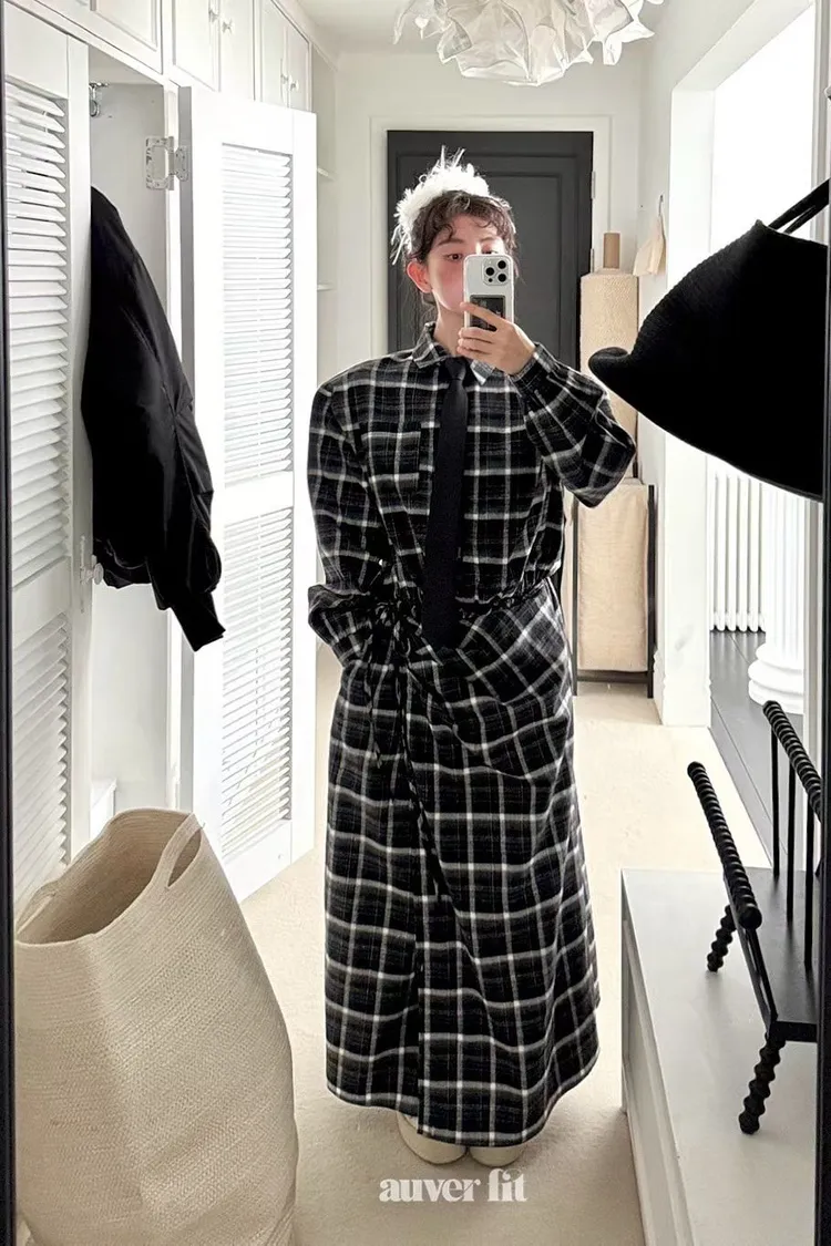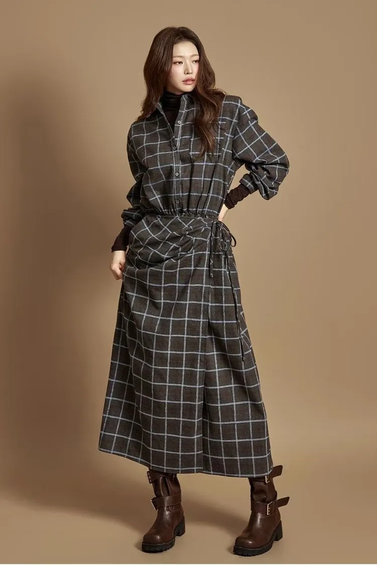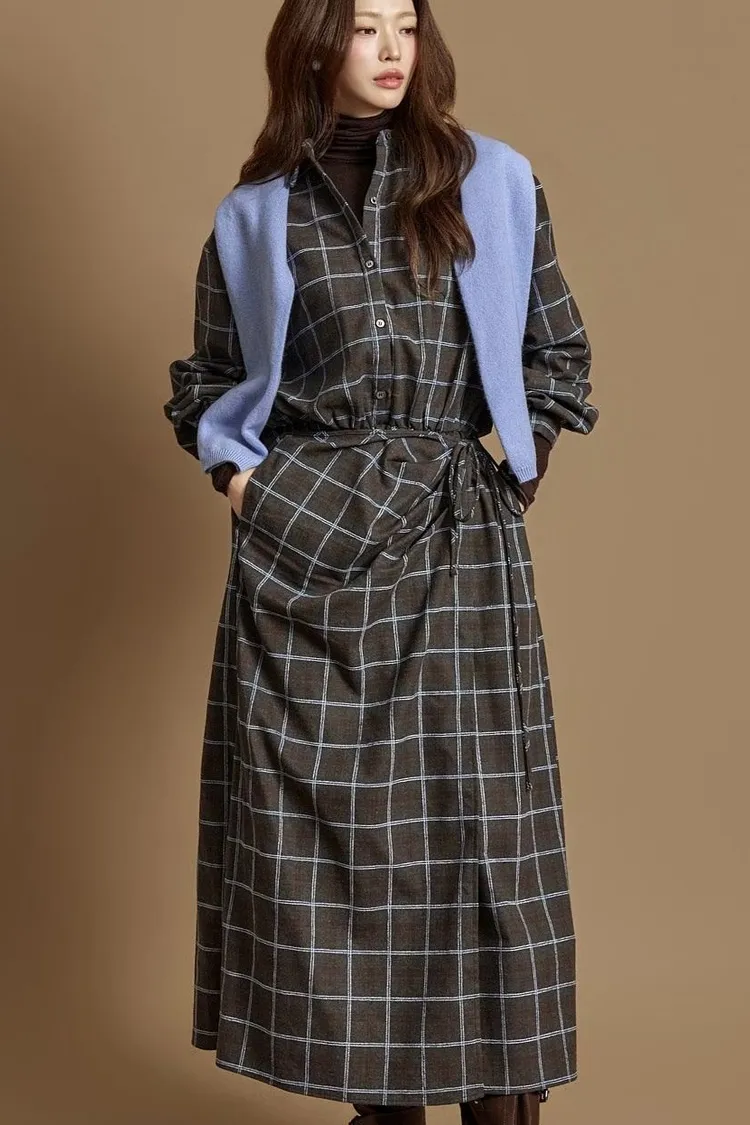DCD03格紋午後磨毛棉造型綁帶襯衫洋