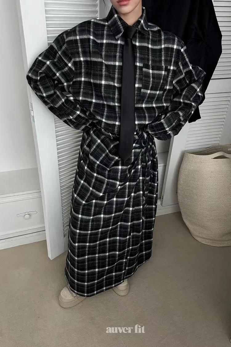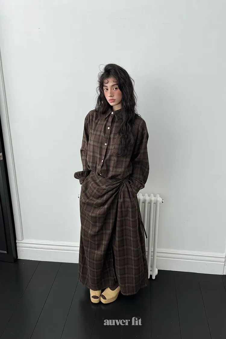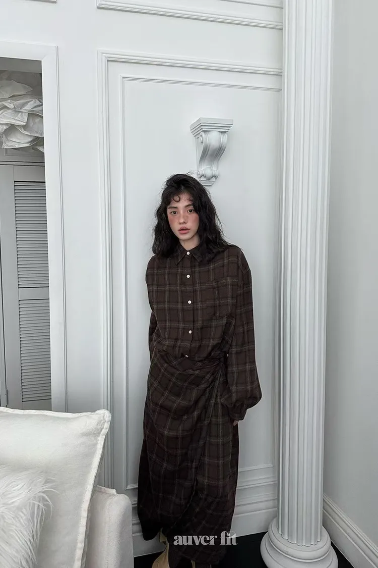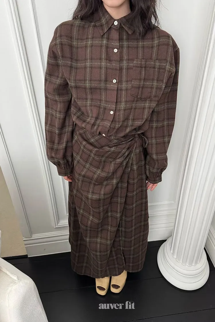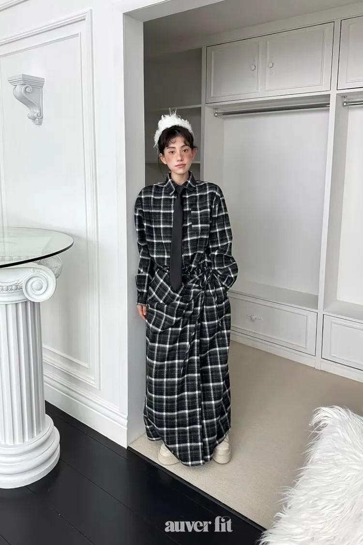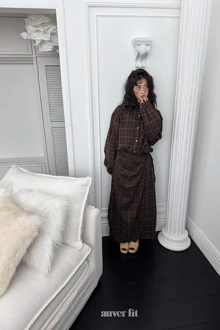 DCD03格紋午後磨毛棉造型綁帶襯衫洋
