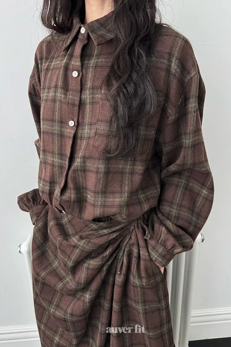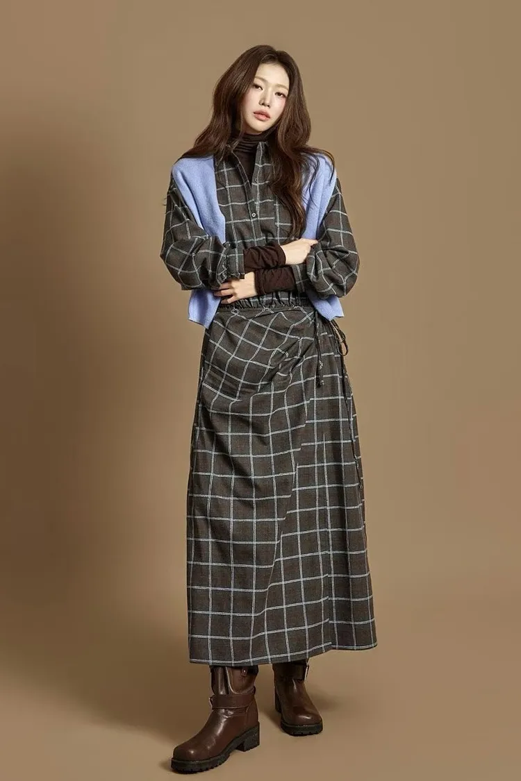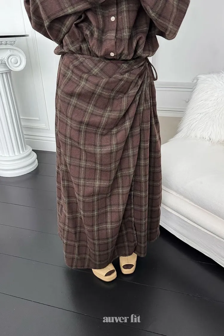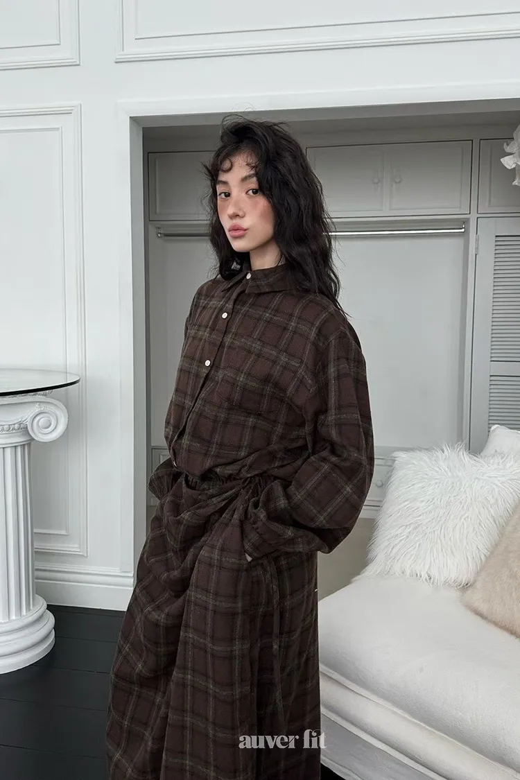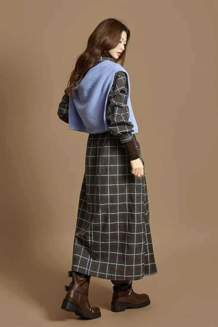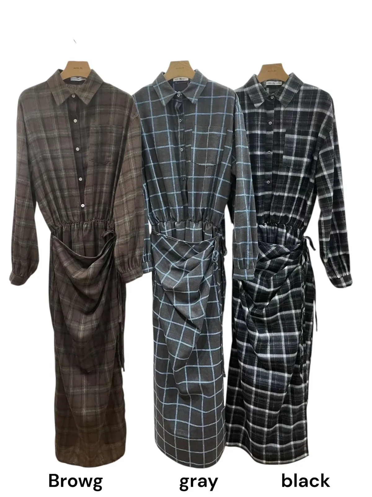 DCD03格紋午後磨毛棉造型綁帶襯衫洋