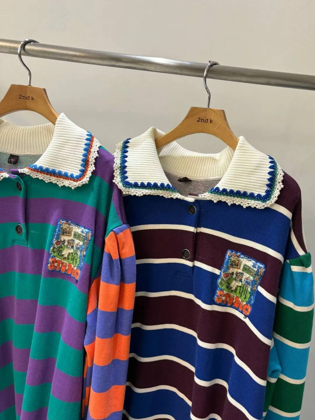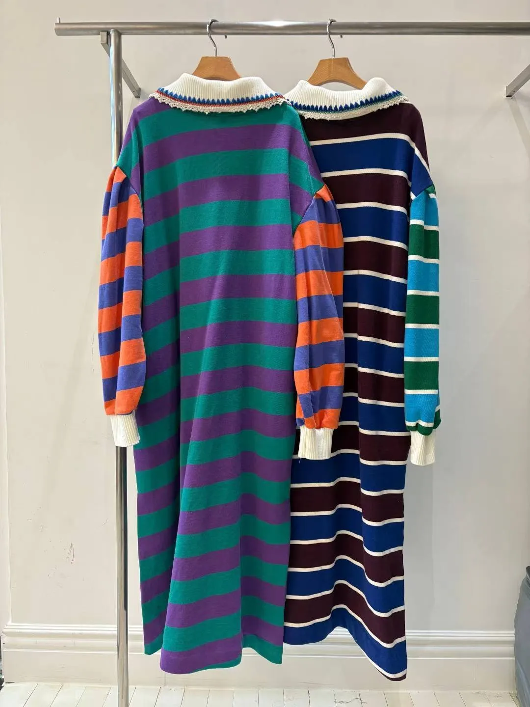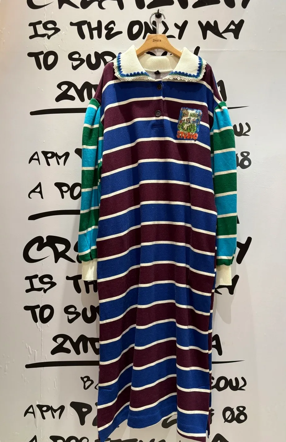 一穿上就有「好可愛但不幼稚」的那種魔法 撞色拼接棉料材質舒服又有型、落肩寬鬆版型,S-XL妞都可以穿 橫條紋搭配身體與手袖不同色的設計,自帶層次感,怎麼看都不無聊 坑條翻領拼接蕾絲多了一點甜甜的學院氣息 胸前可愛的圖案布章是近看會被發現的小亮點 POLO衫式連身洋休閒中帶點乖巧感 有口袋 韓國熱銷色是藍綠袖