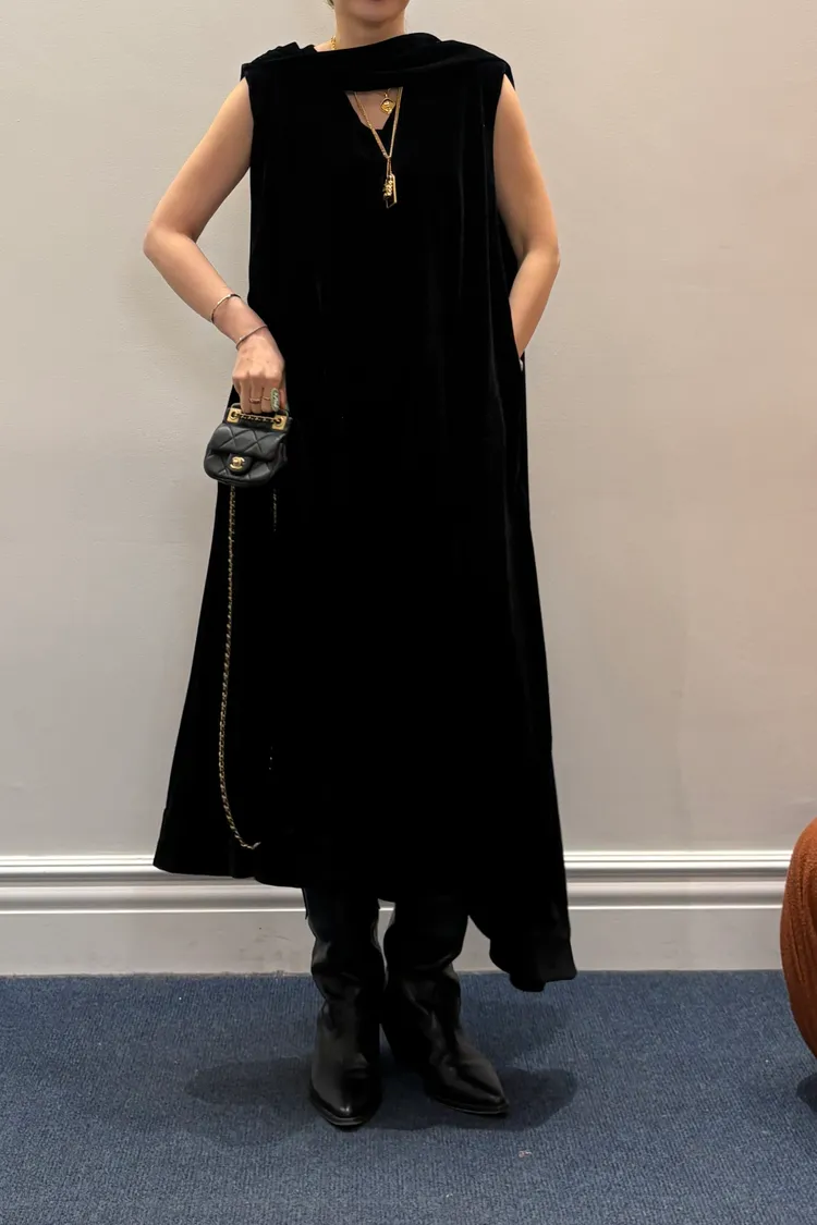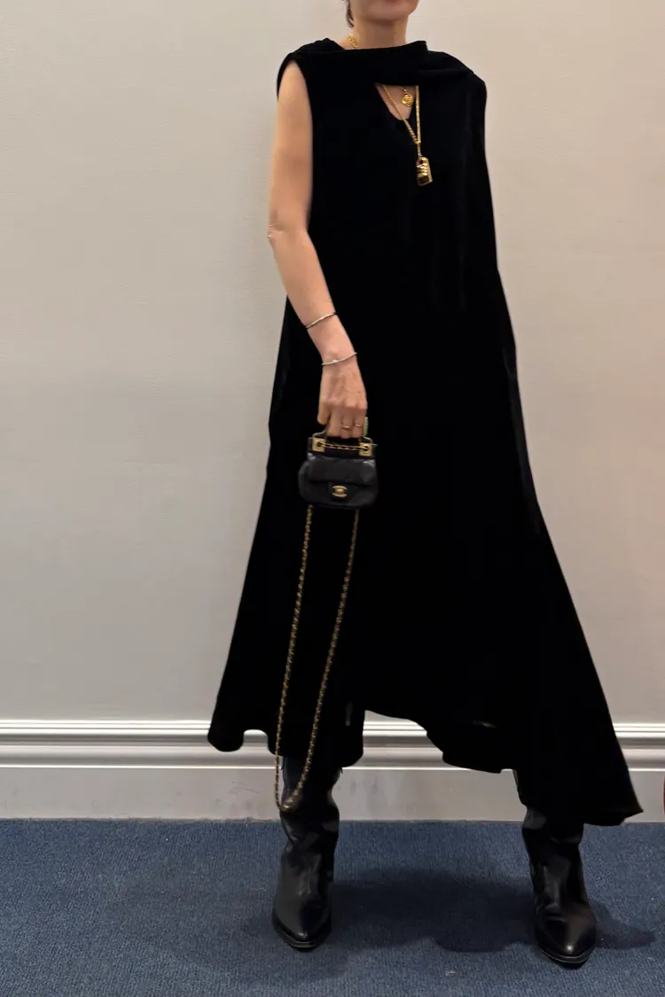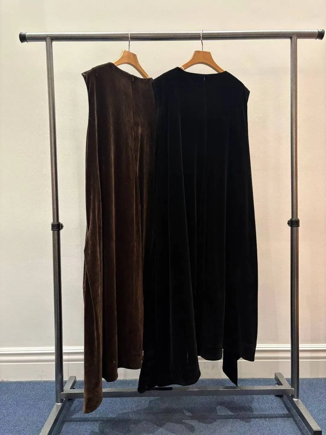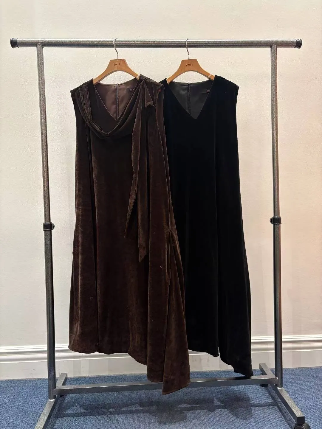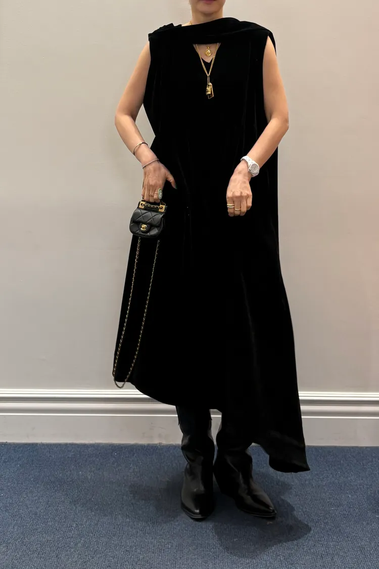 貴氣絲絨面料自帶光澤感,低調卻很有存在感寬鬆版型,S-L妞都可以穿 V領設計剛剛好修飾臉型與鎖骨線條,無袖剪裁俐落又顯瘦 領口側邊有多一片造型圍巾,不用另外搭配就自帶層次感 不靠浮誇、卻默默散發貴氣 有口袋