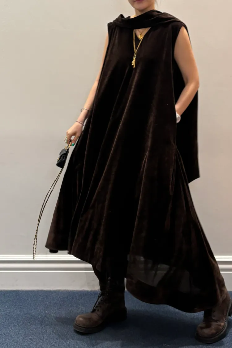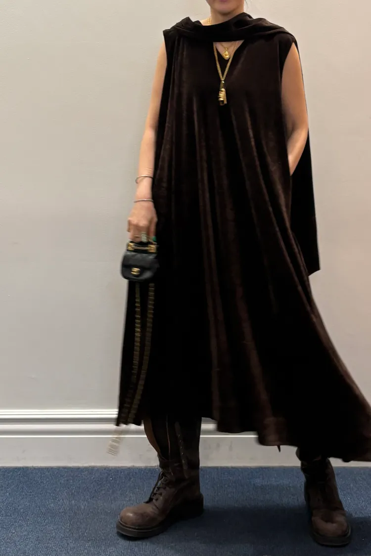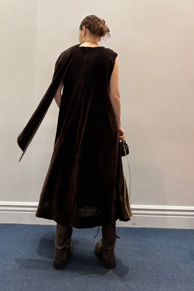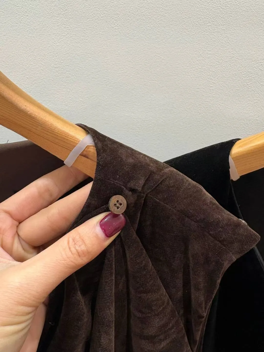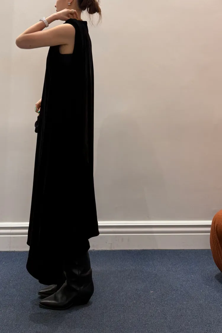 貴氣絲絨面料自帶光澤感,低調卻很有存在感寬鬆版型,S-L妞都可以穿 V領設計剛剛好修飾臉型與鎖骨線條,無袖剪裁俐落又顯瘦 領口側邊有多一片造型圍巾,不用另外搭配就自帶層次感 不靠浮誇、卻默默散發貴氣 有口袋
