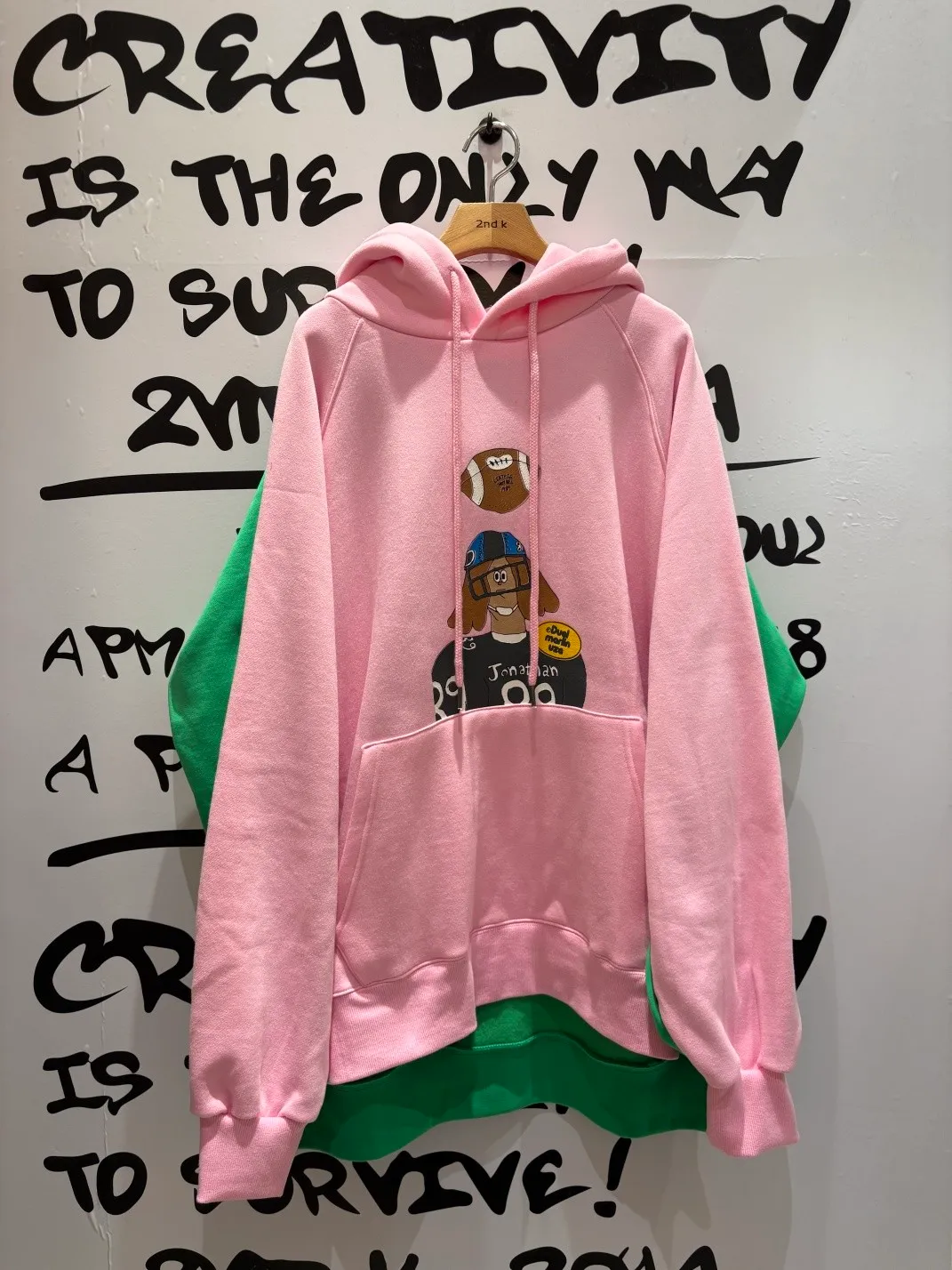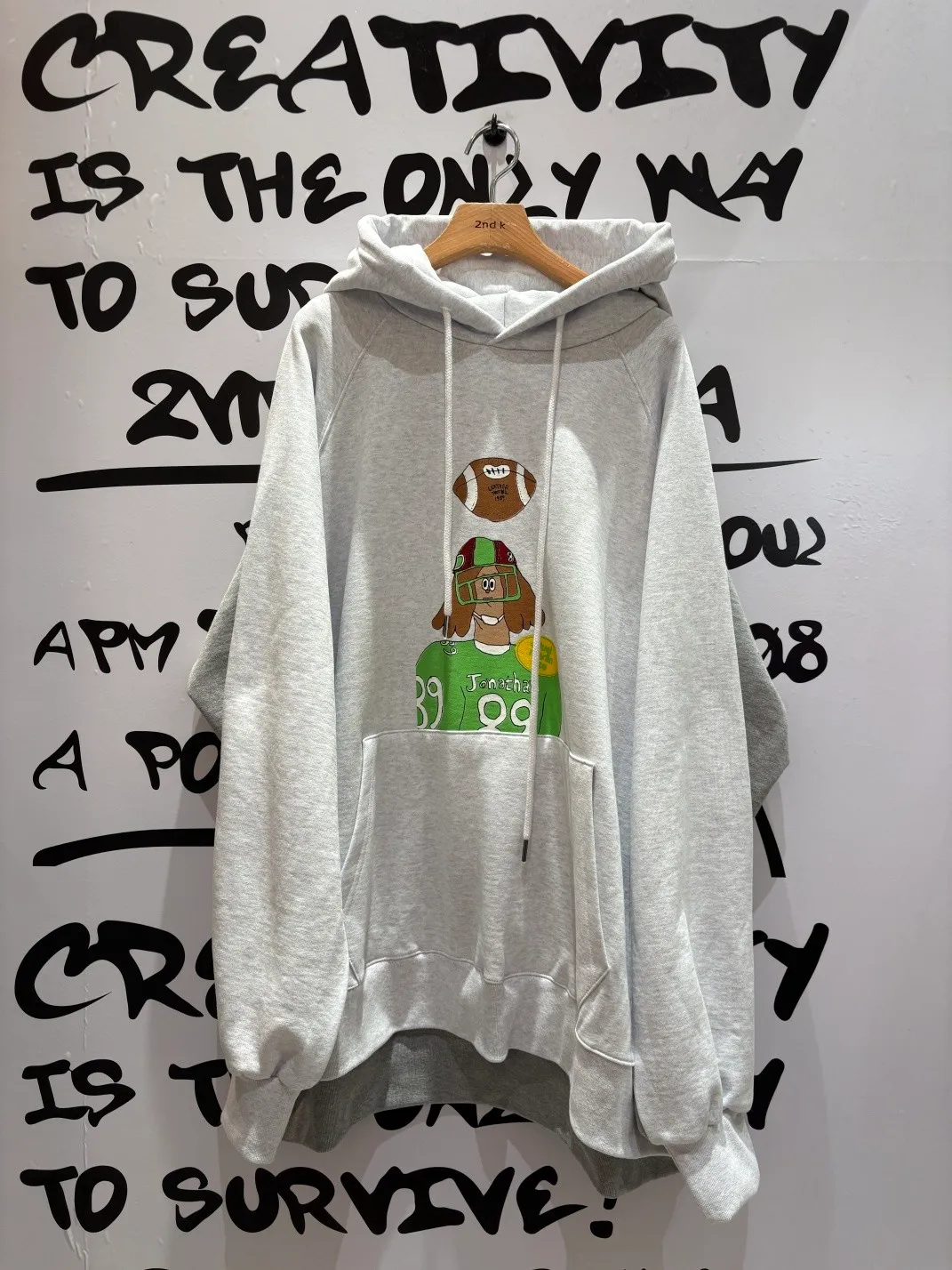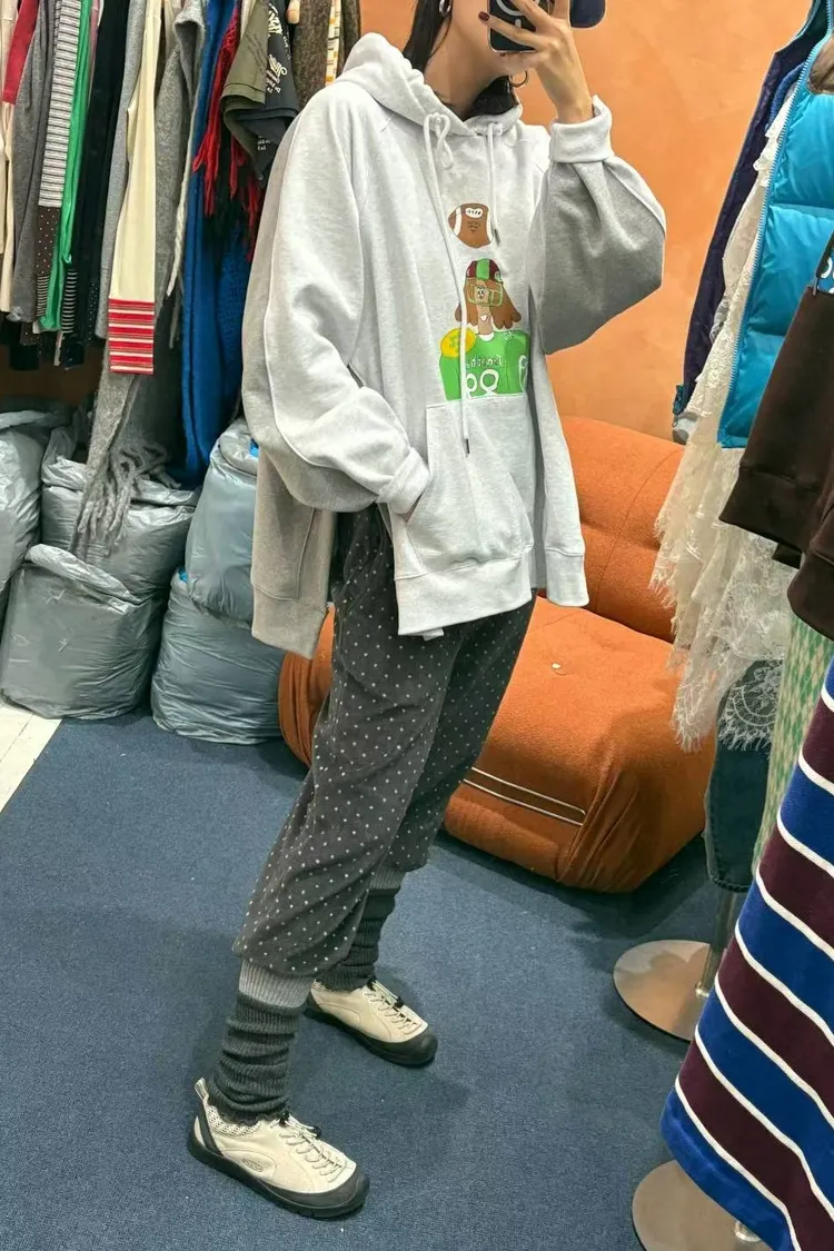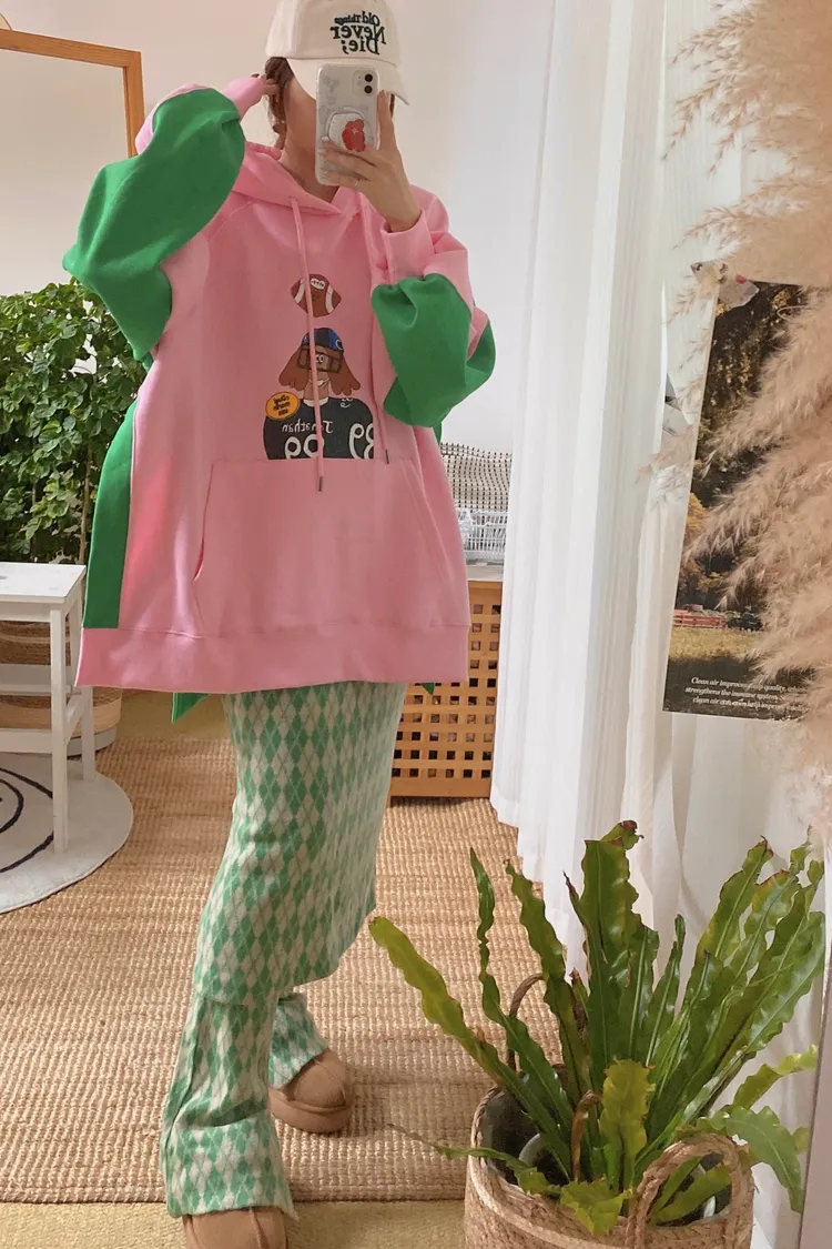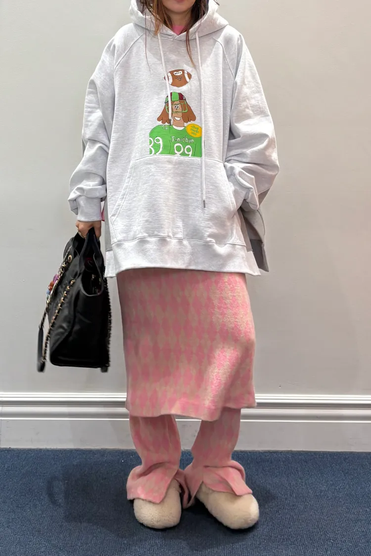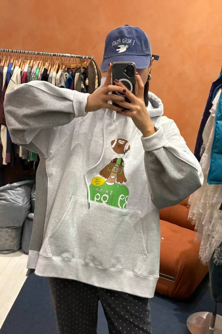 正反撞色拼接棉料材質,走起路來連背影都在耍帥、內裡加絨 落肩寬鬆連帽版型,S-XL妞都可以穿,慵懶感直接拉滿 詼諧的足球員印花讓整件多了點幽默與童趣,不會太運動卻很有態度 側邊開衩加上前短後長的衣襬,修飾比例也更好看 正面大大的袋鼠口袋,隨手插手就很有型