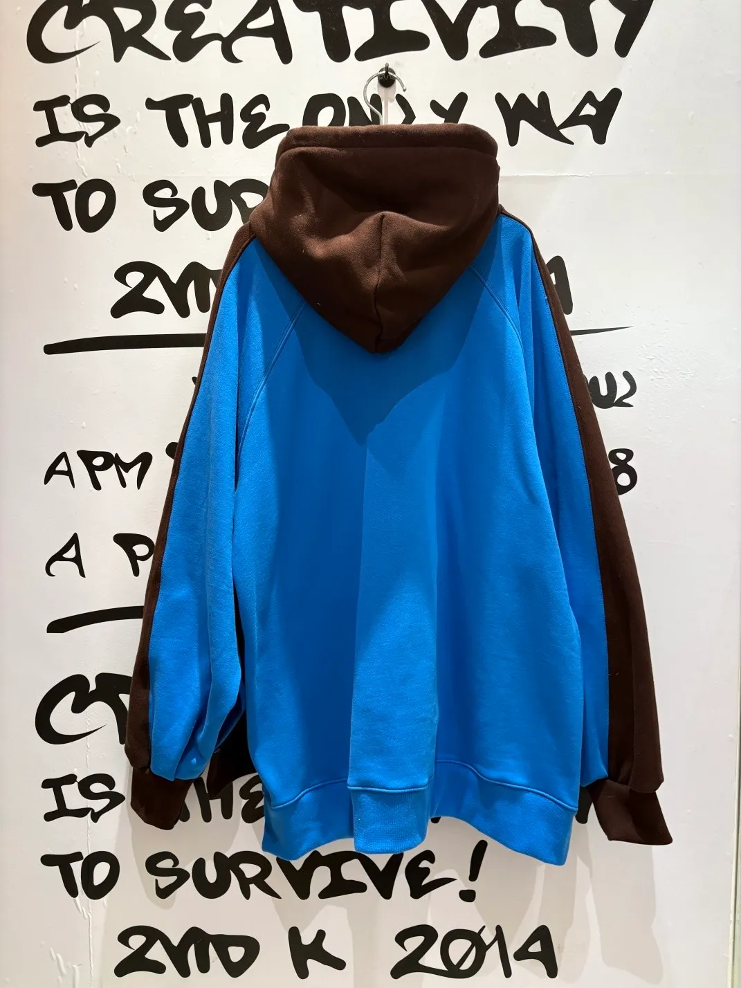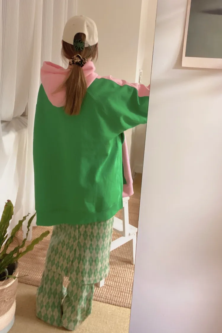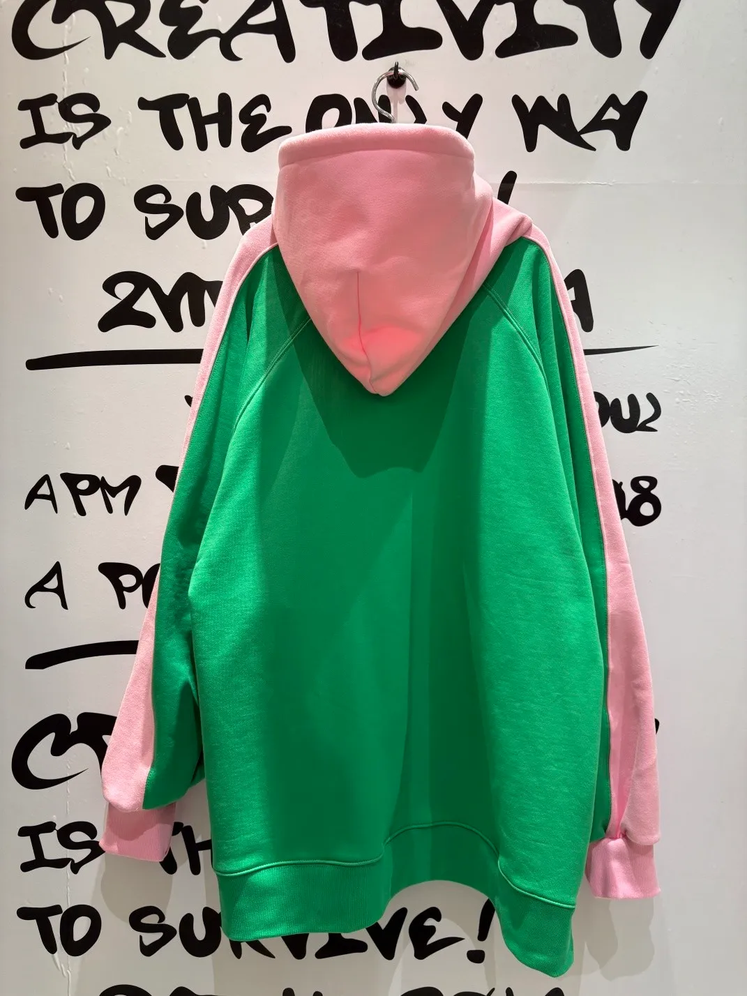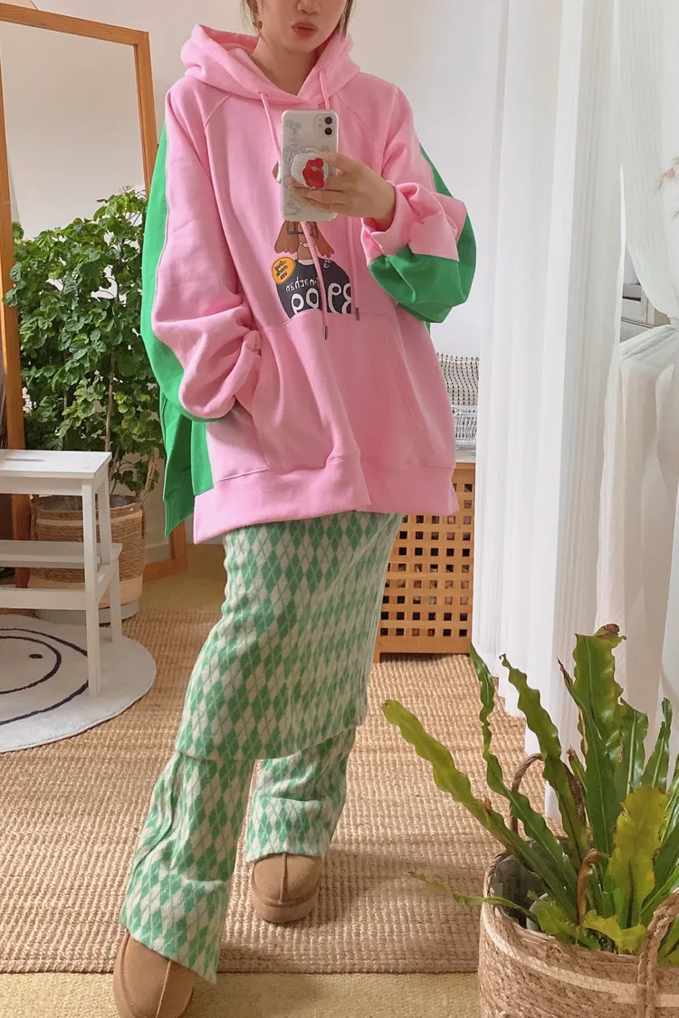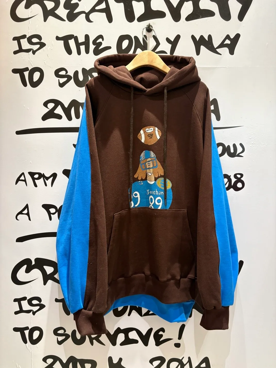 正反撞色拼接棉料材質,走起路來連背影都在耍帥、內裡加絨 落肩寬鬆連帽版型,S-XL妞都可以穿,慵懶感直接拉滿 詼諧的足球員印花讓整件多了點幽默與童趣,不會太運動卻很有態度 側邊開衩加上前短後長的衣襬,修飾比例也更好看 正面大大的袋鼠口袋,隨手插手就很有型