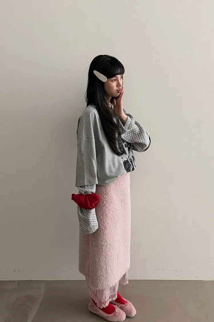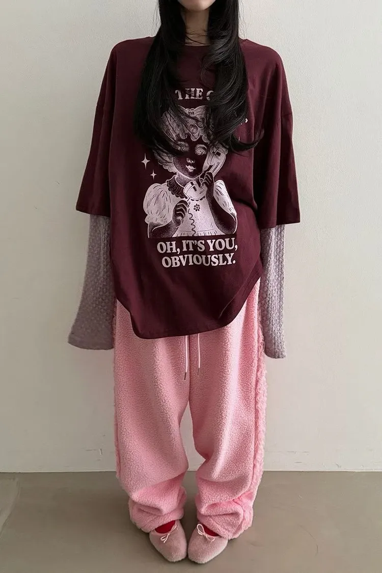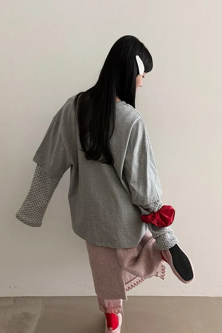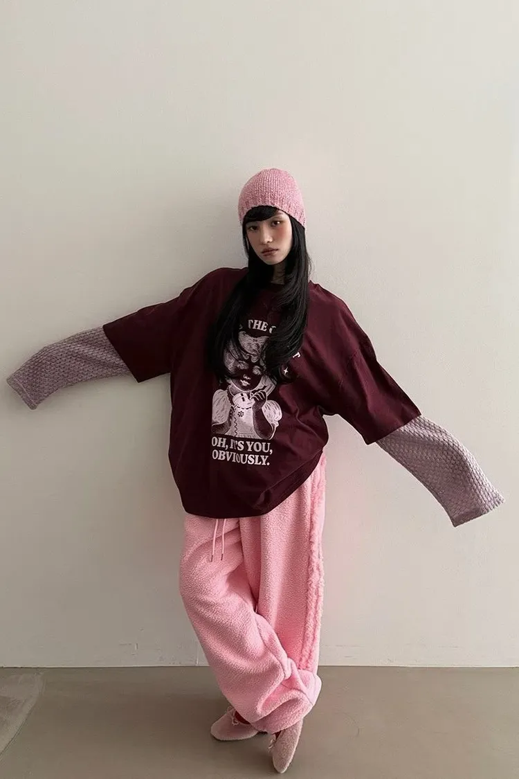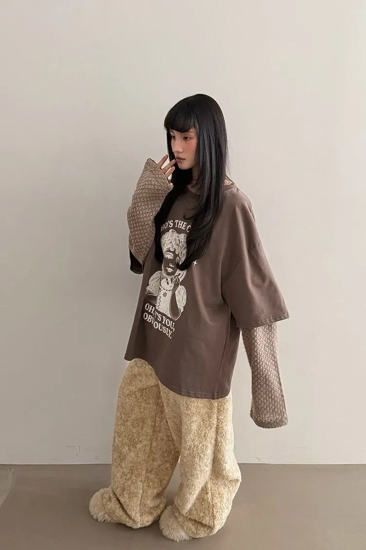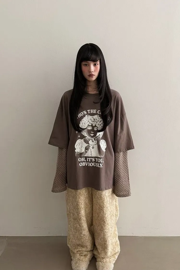 棉料材質、拼接針織手袖設計,多了一點溫度與層次,讓整體看起來不單調 拓印感的復古漫畫女孩搭配正線熱線通話的圖案 像從老雜誌裡翻出來的小插畫,帶點俏皮又有濃濃復古味 落肩寬鬆蓋臀版型,S-XL妞都可以穿,隨便一套就有型