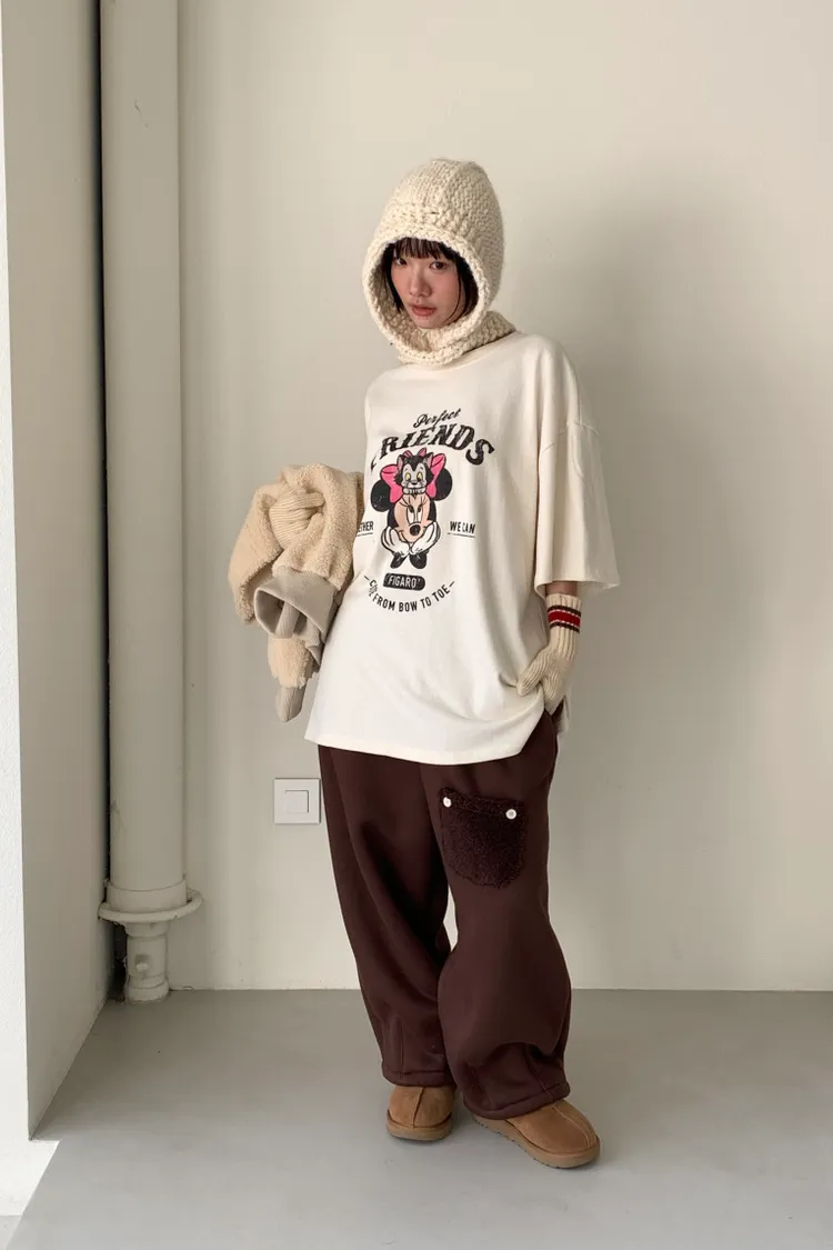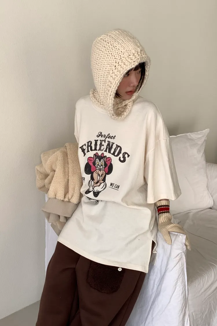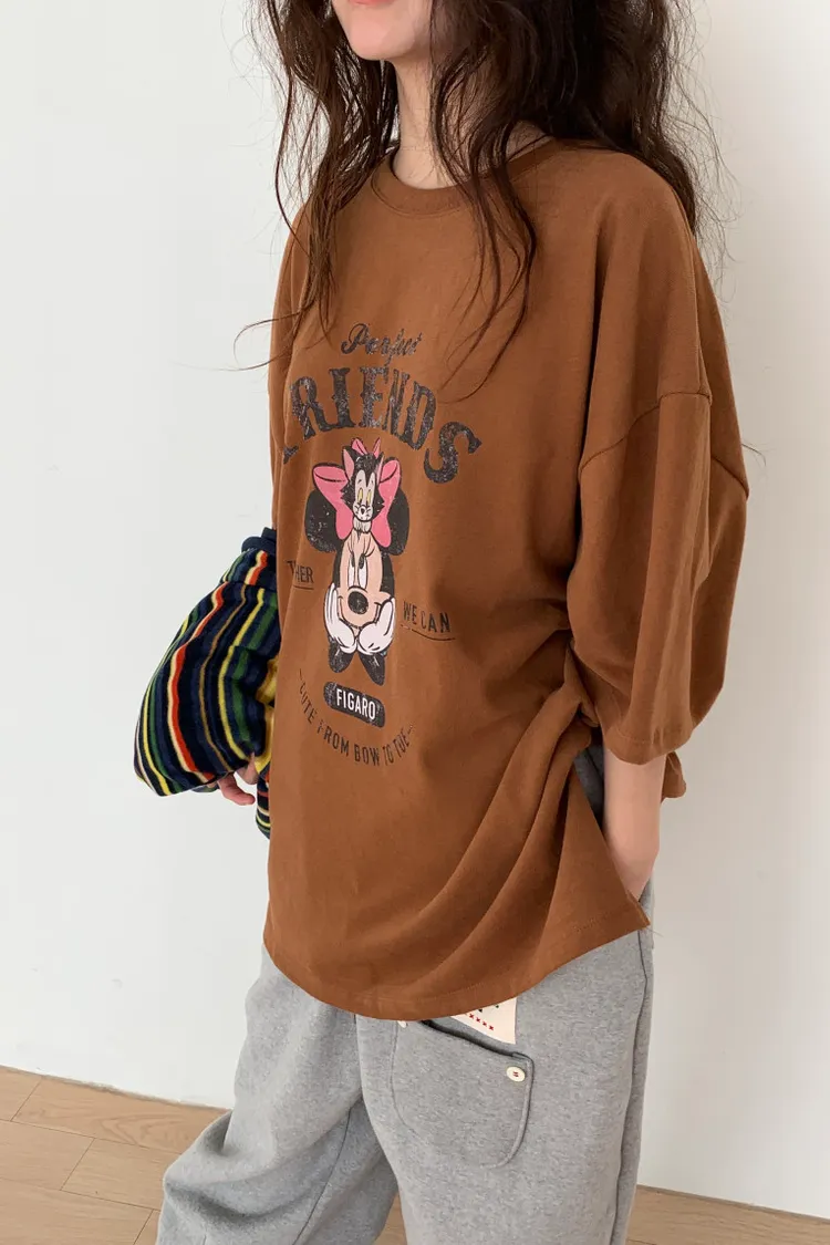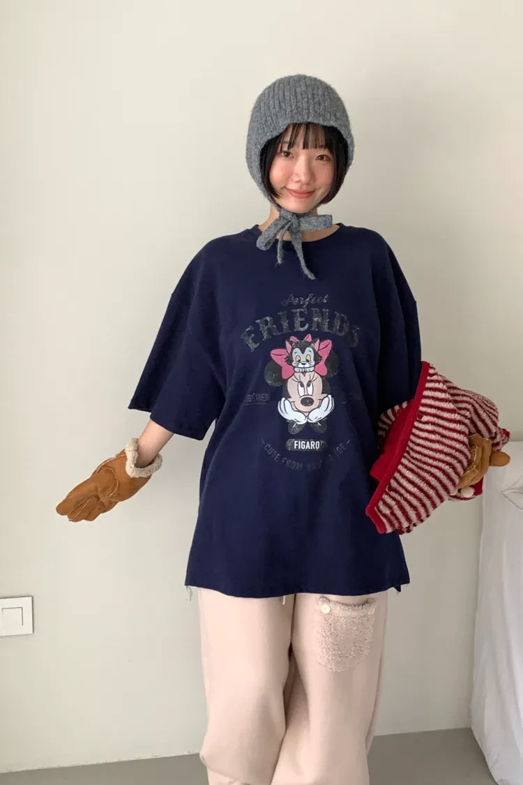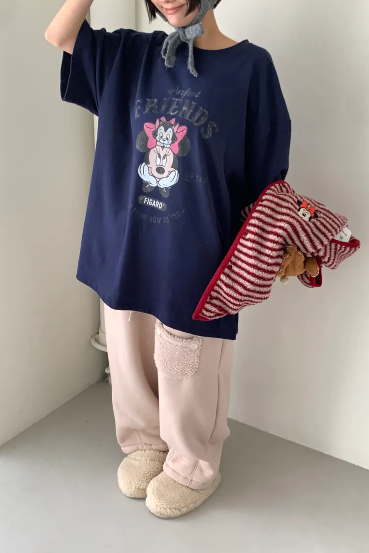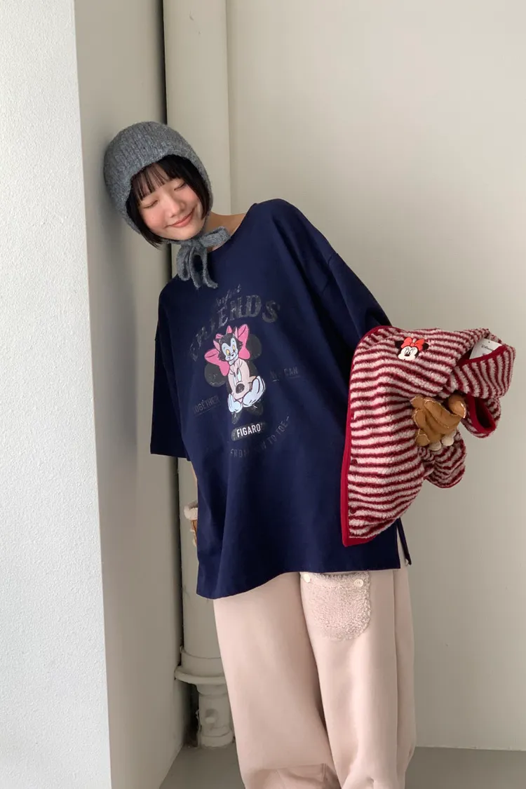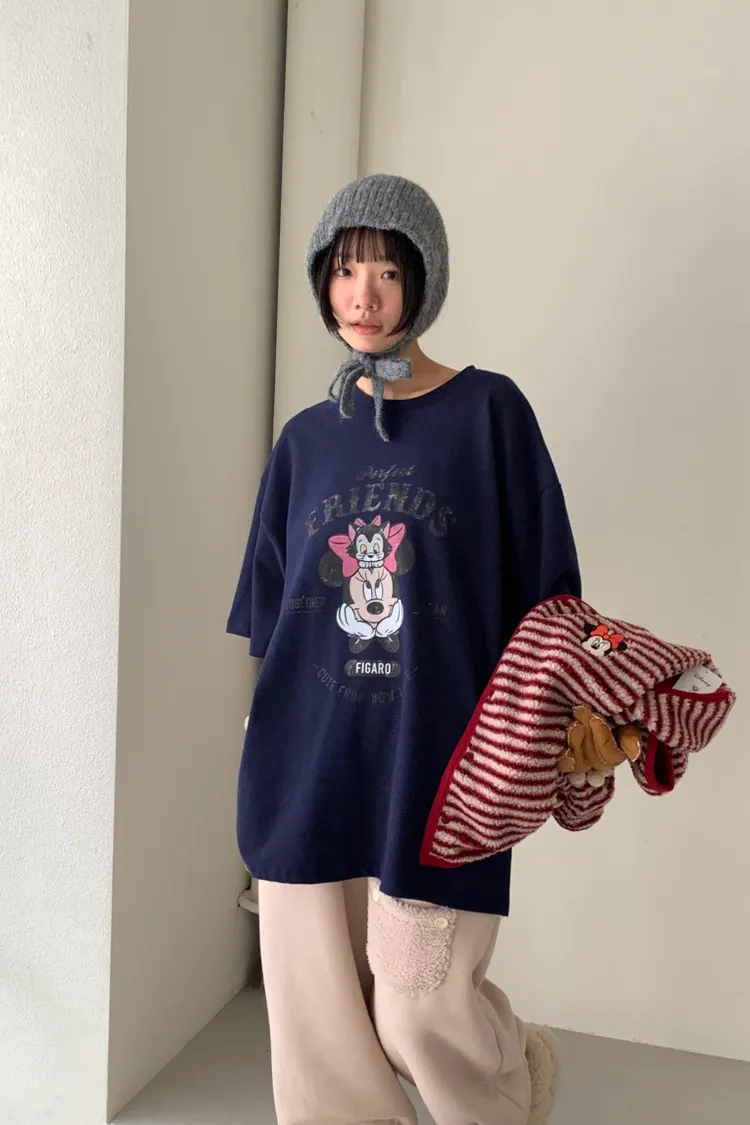 DCT17正版米妮磨毛落肩棉T上衣