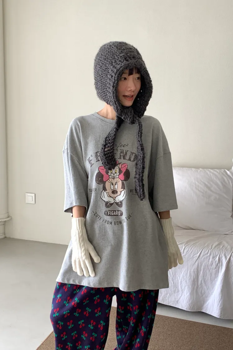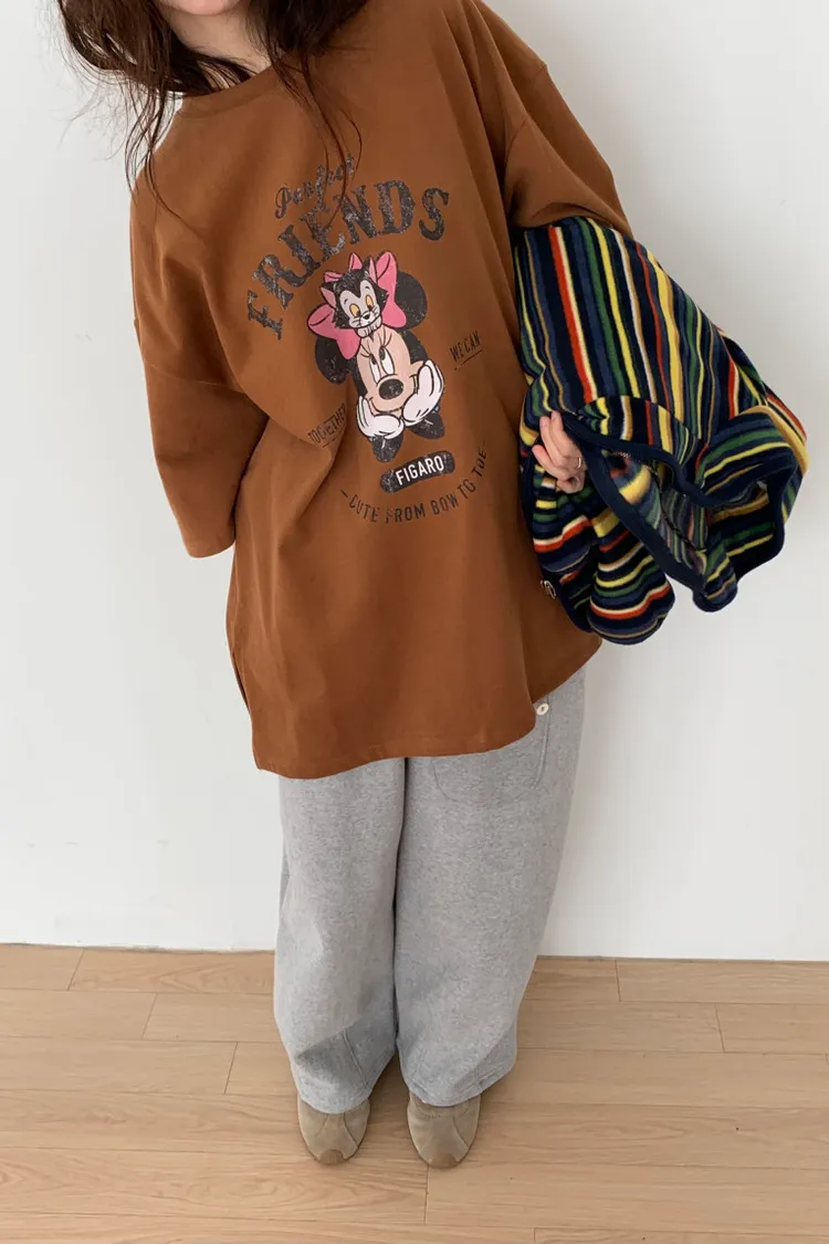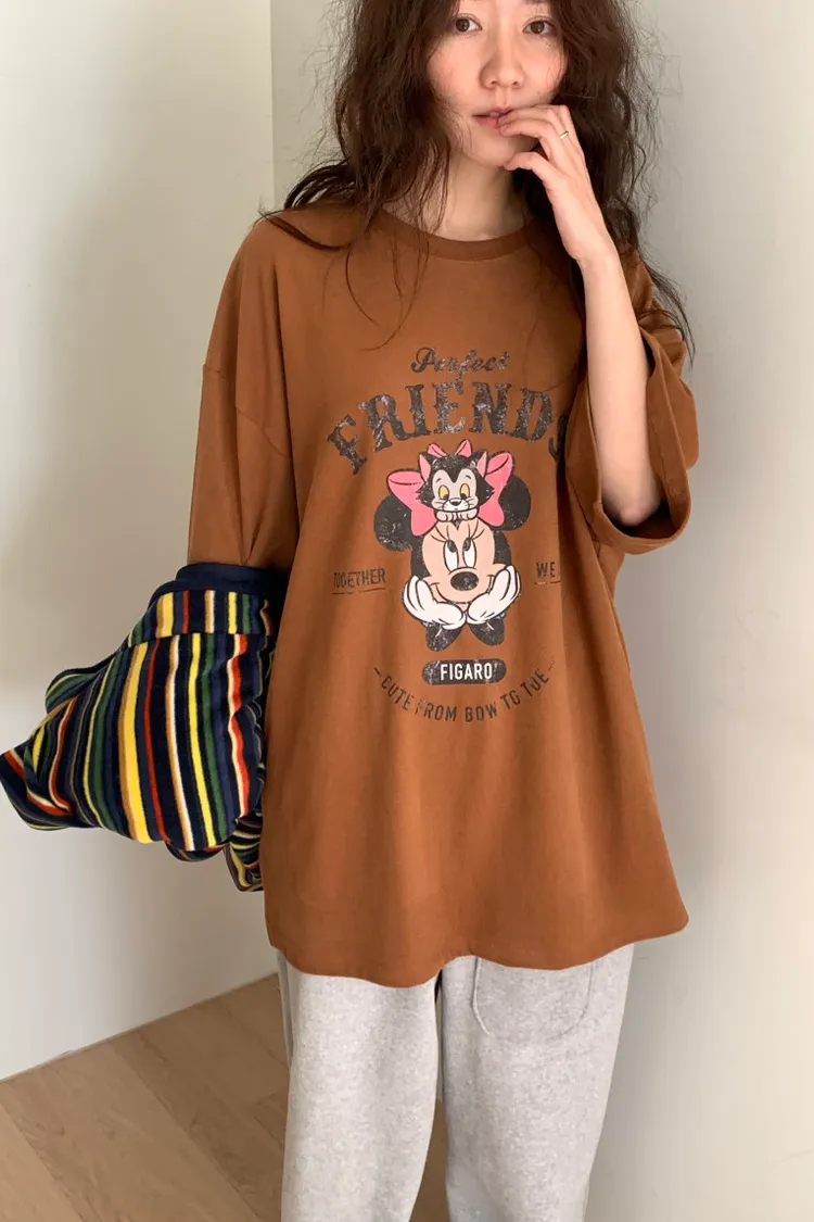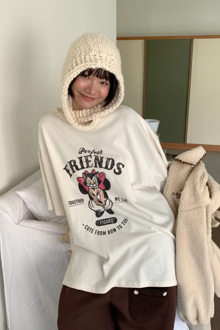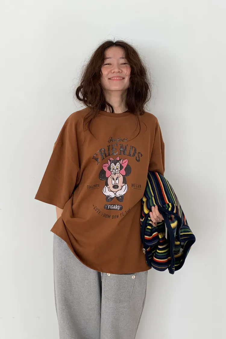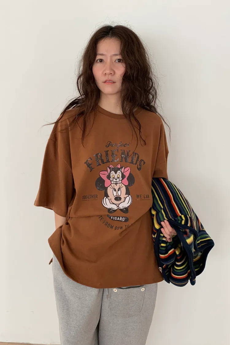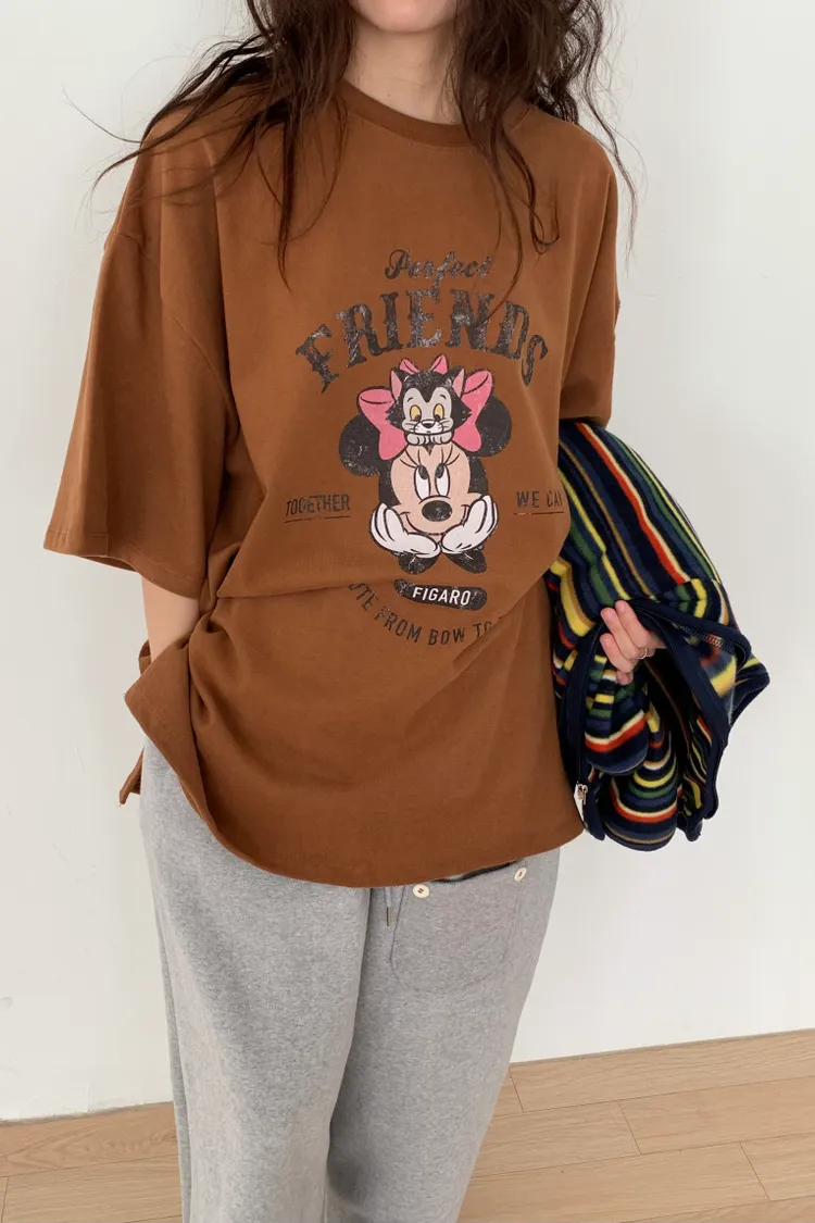 DCT17正版米妮磨毛落肩棉T上衣