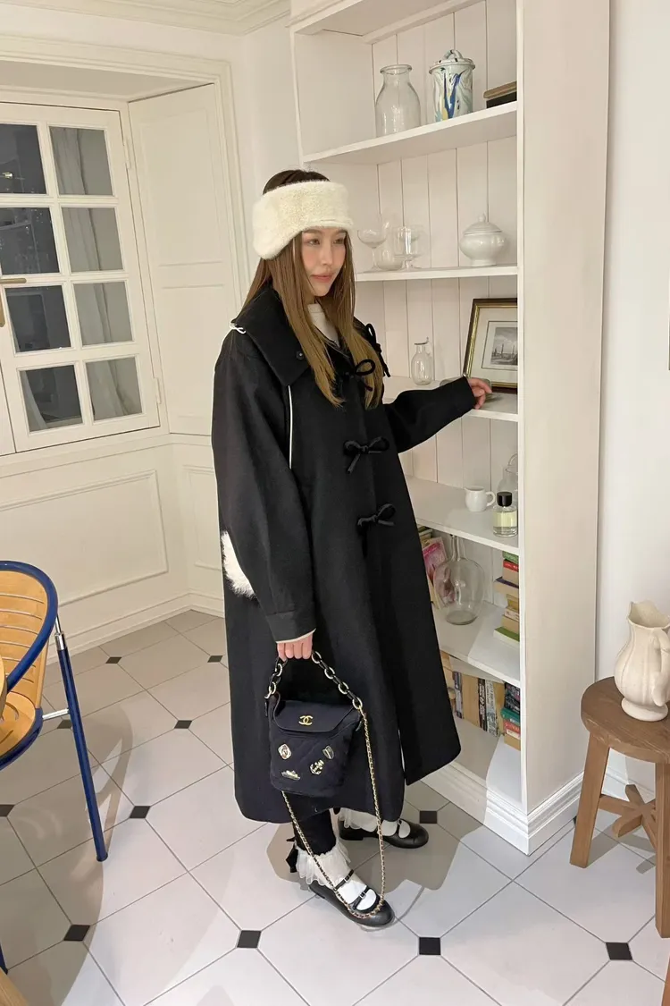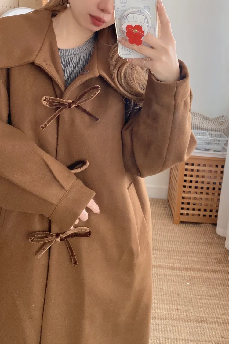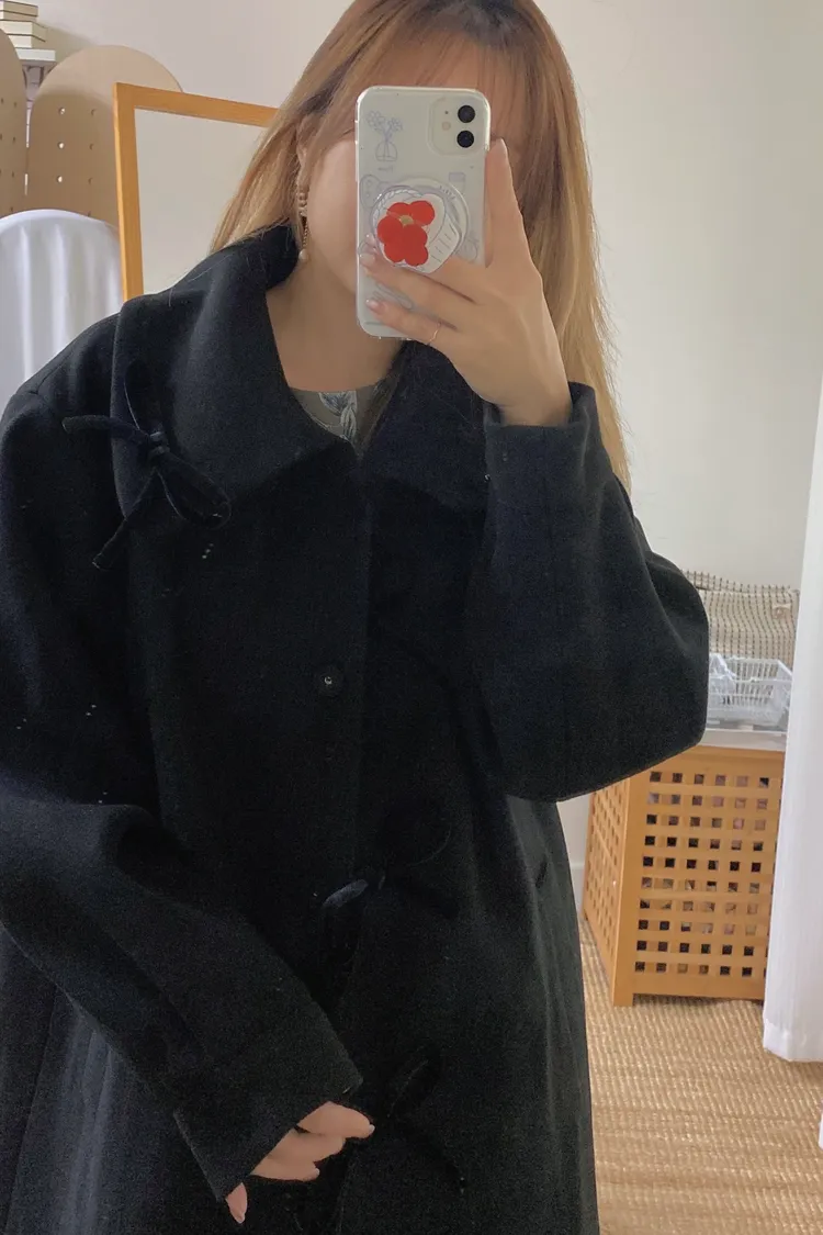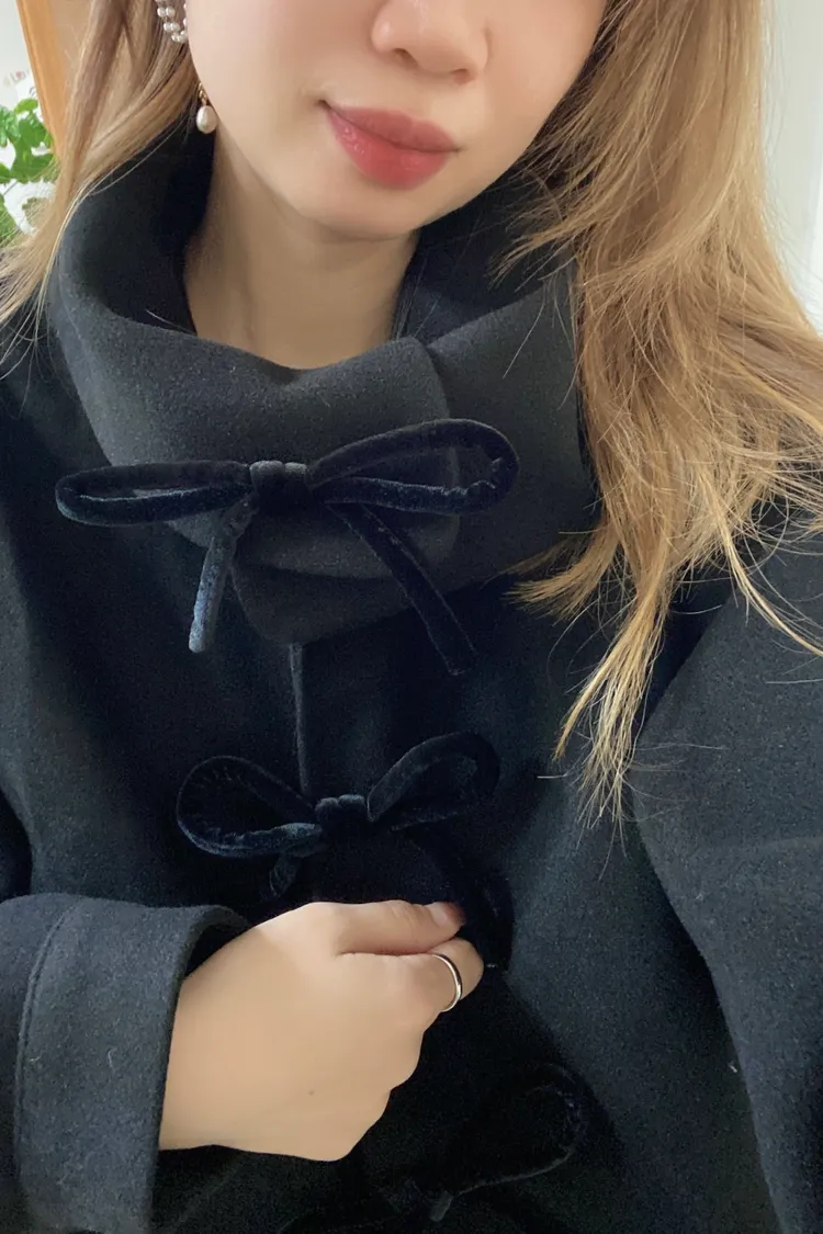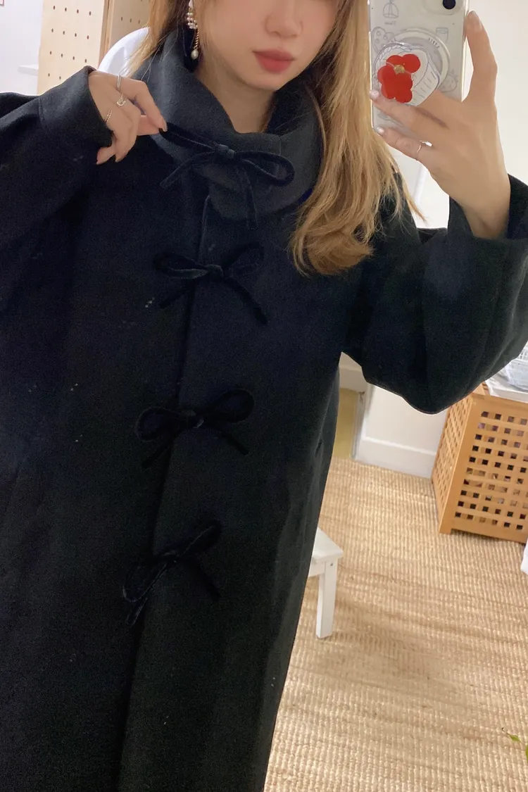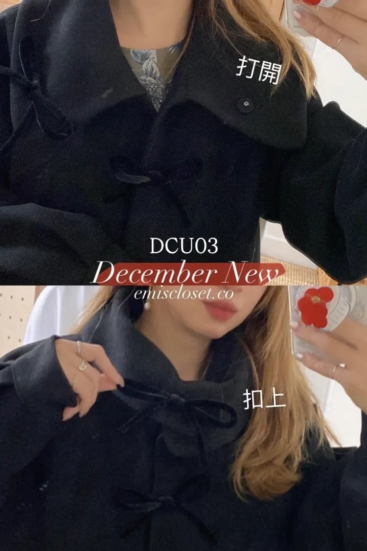 充滿了小巧思,每一個細節都在說「貼心又時髦」 羊毛10%、內裡有鋪棉,穿起來既保暖又輕盈 寬鬆版型,S-XL妞都可以穿 按壓釦設計,外面都是蝴蝶繩結造型,每個角度都像是小小亮點,甜美又帶點俏皮感 領口有兩種穿法,一種是正常小翻領 另一種是把翻領上的扣子再扣上就會有更防風的小立領LOOK 有口袋