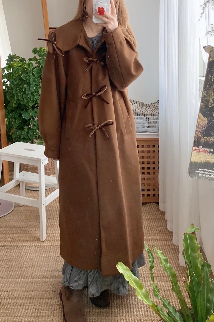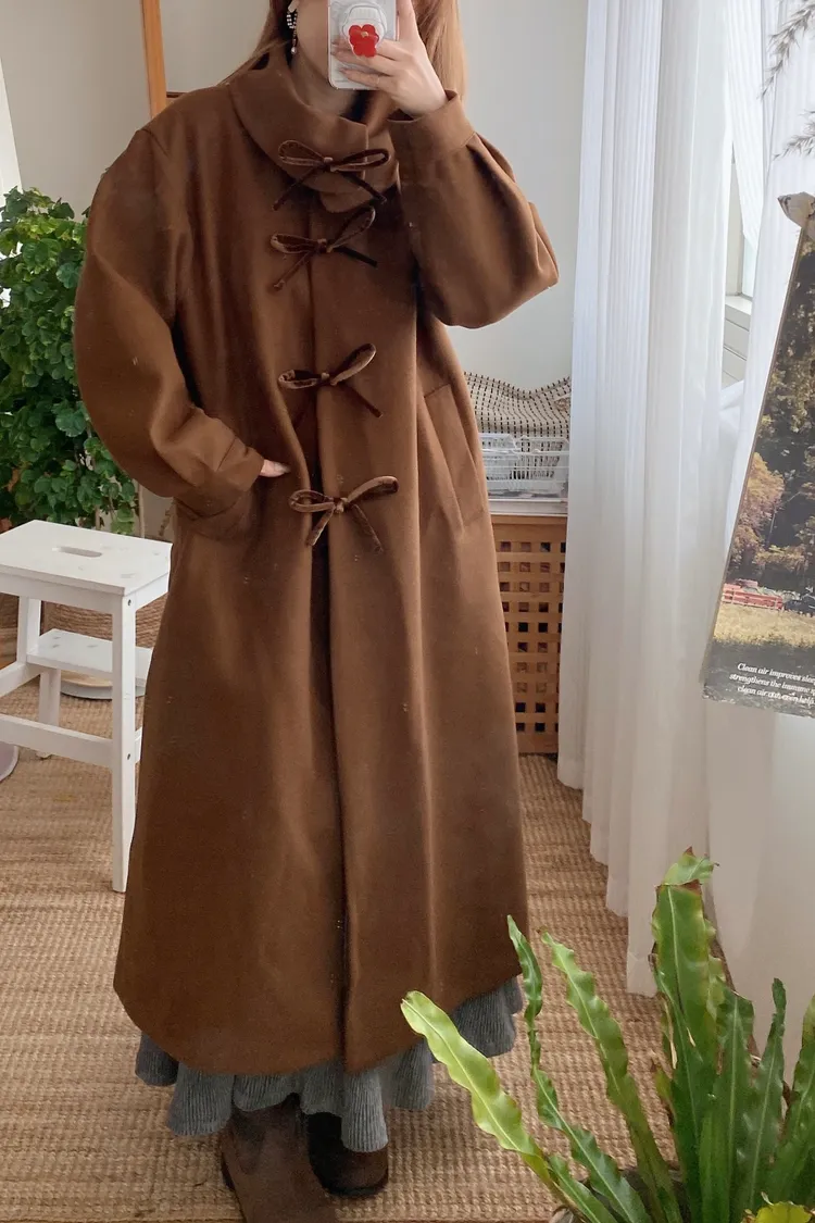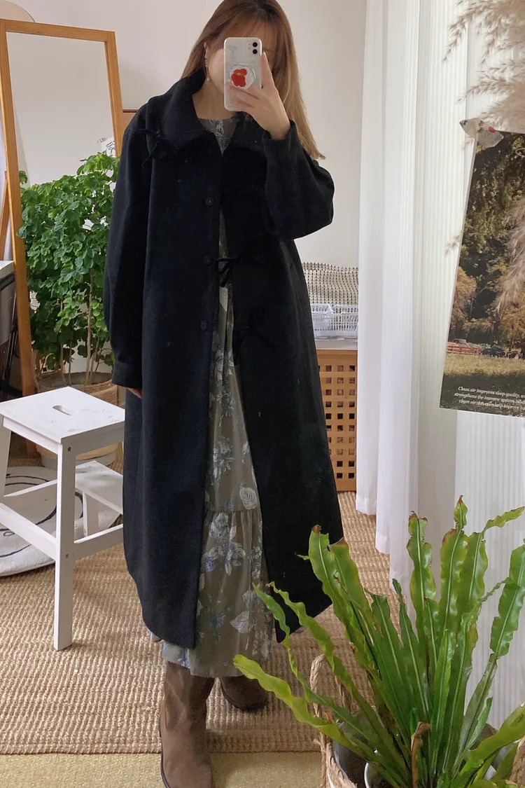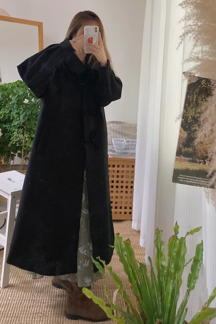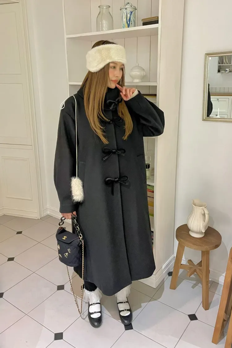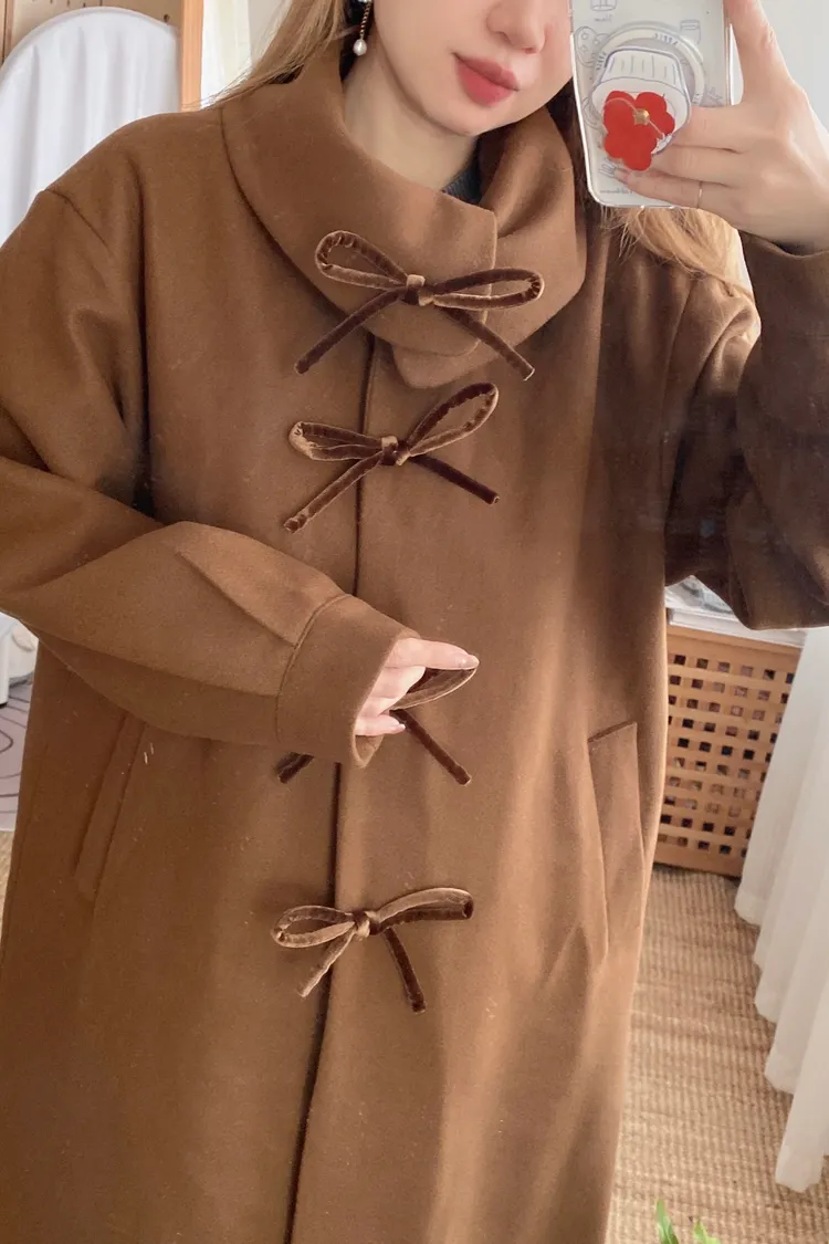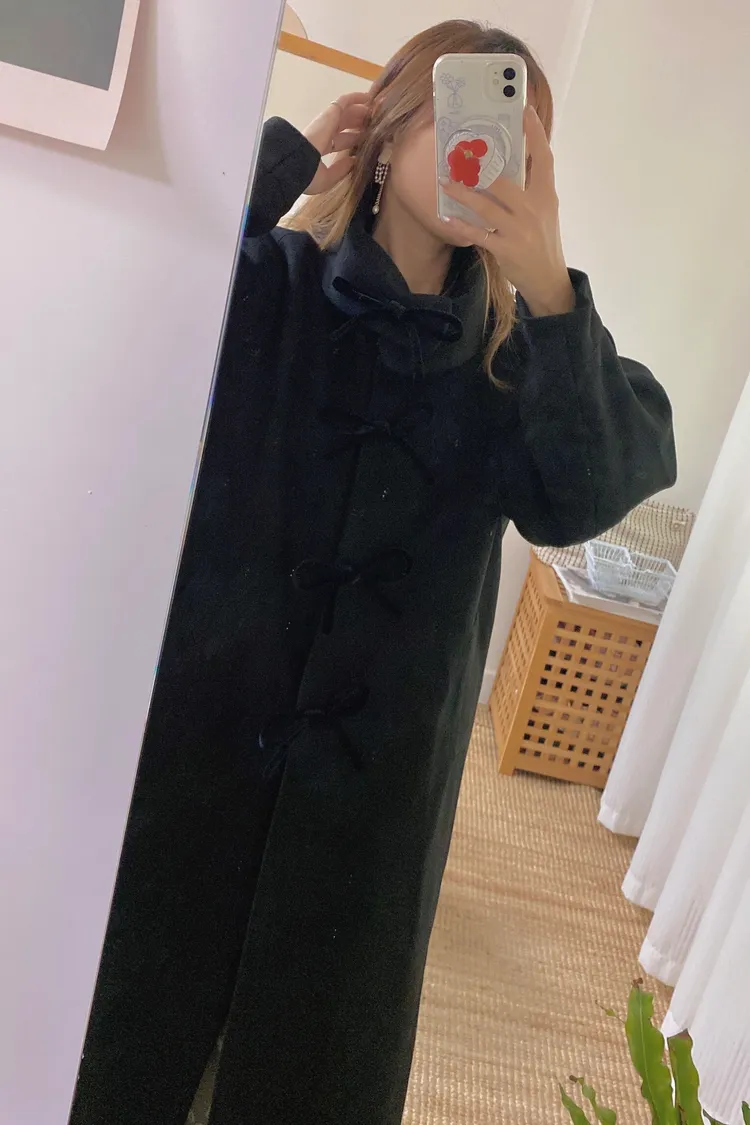 充滿了小巧思,每一個細節都在說「貼心又時髦」 羊毛10%、內裡有鋪棉,穿起來既保暖又輕盈 寬鬆版型,S-XL妞都可以穿 按壓釦設計,外面都是蝴蝶繩結造型,每個角度都像是小小亮點,甜美又帶點俏皮感 領口有兩種穿法,一種是正常小翻領 另一種是把翻領上的扣子再扣上就會有更防風的小立領LOOK 有口袋