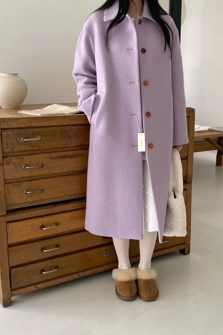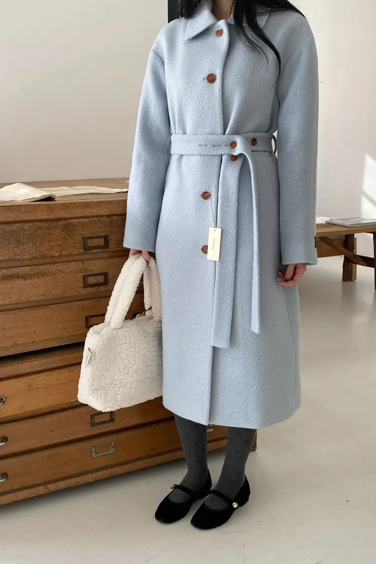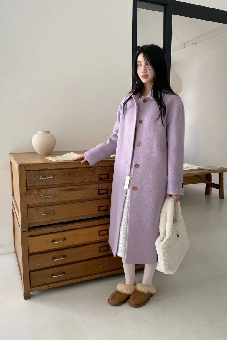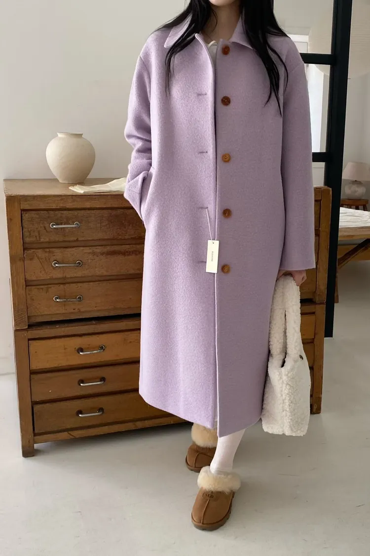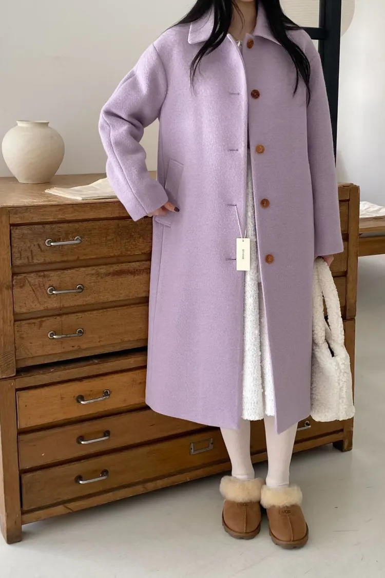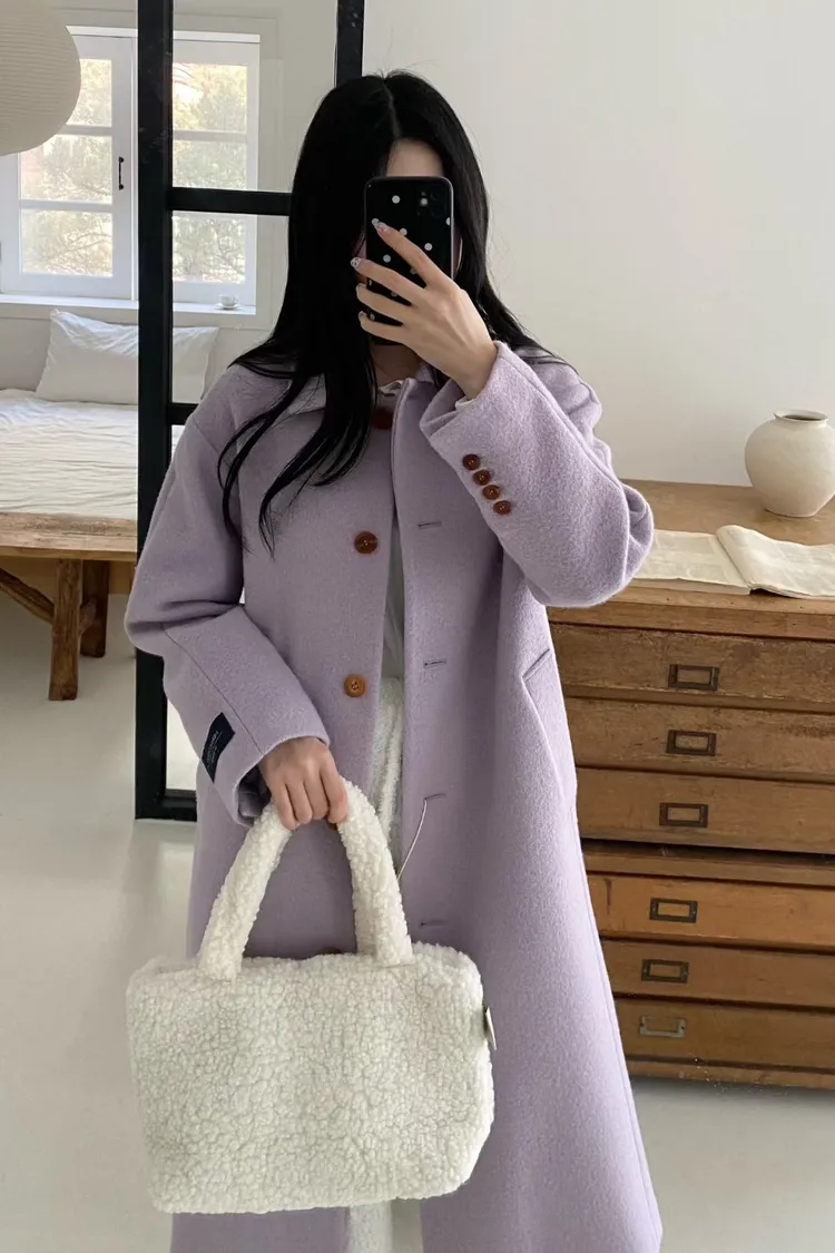 美麗諾羊毛100%、簡約單排扣設計 高級面料手感非常柔軟、輕盈保暖不厚重 腰帶是扣子形式,可以依照需求調節並固定、想要直接打結也OK 落肩小寬鬆版型,穿起來慵懶又有高級感,S-L妞都可以穿(65KG以內OK) 有口袋 韓國熱銷色是藍、香芋紫