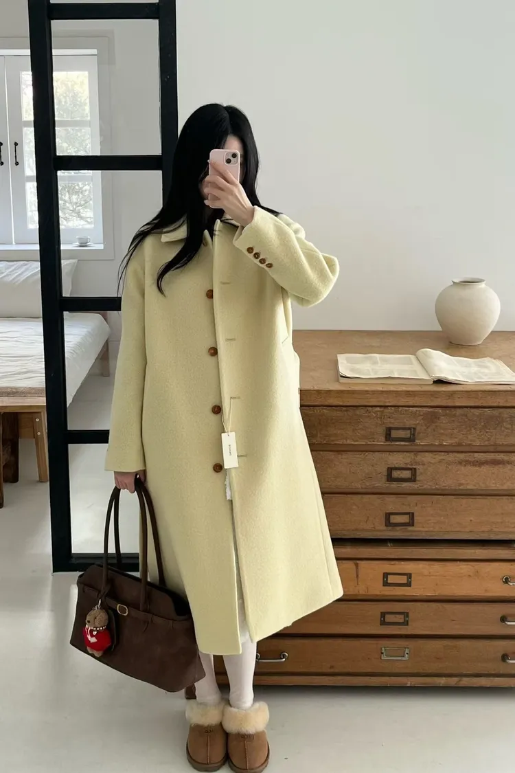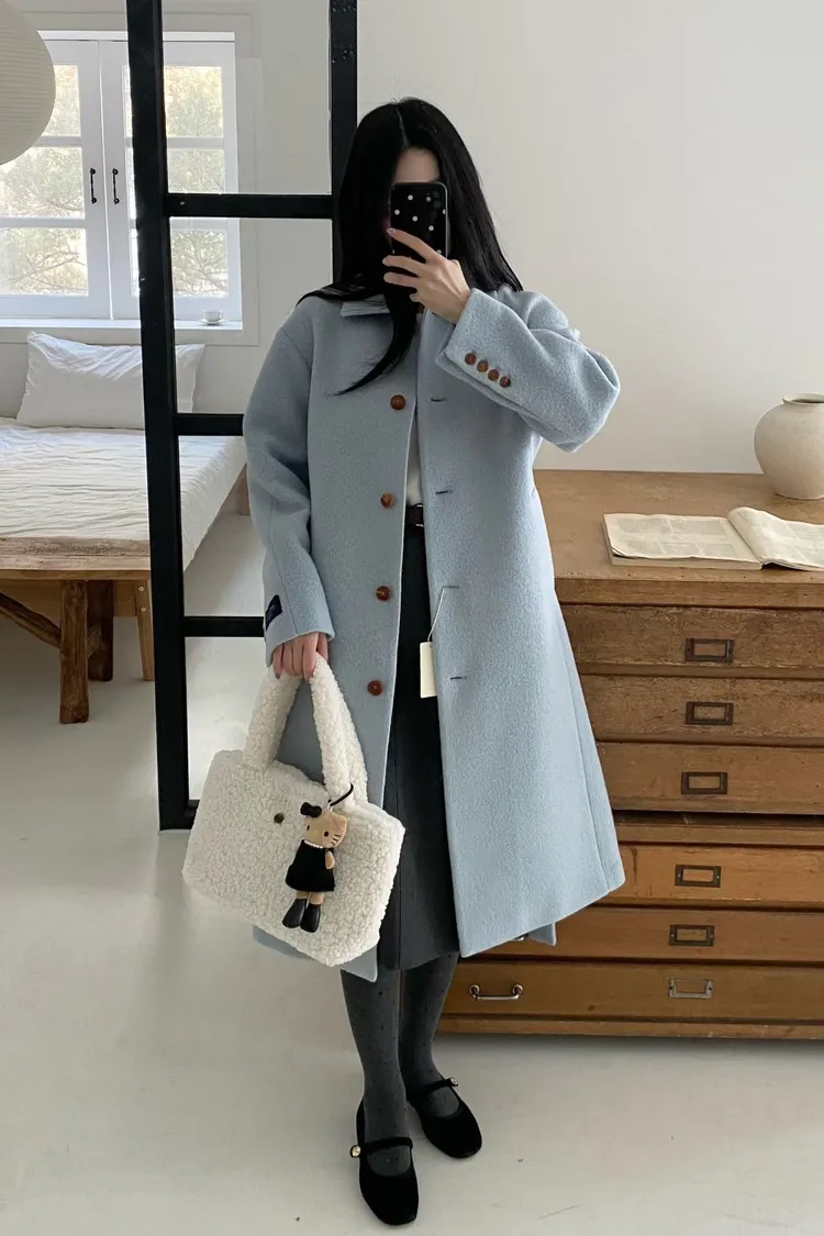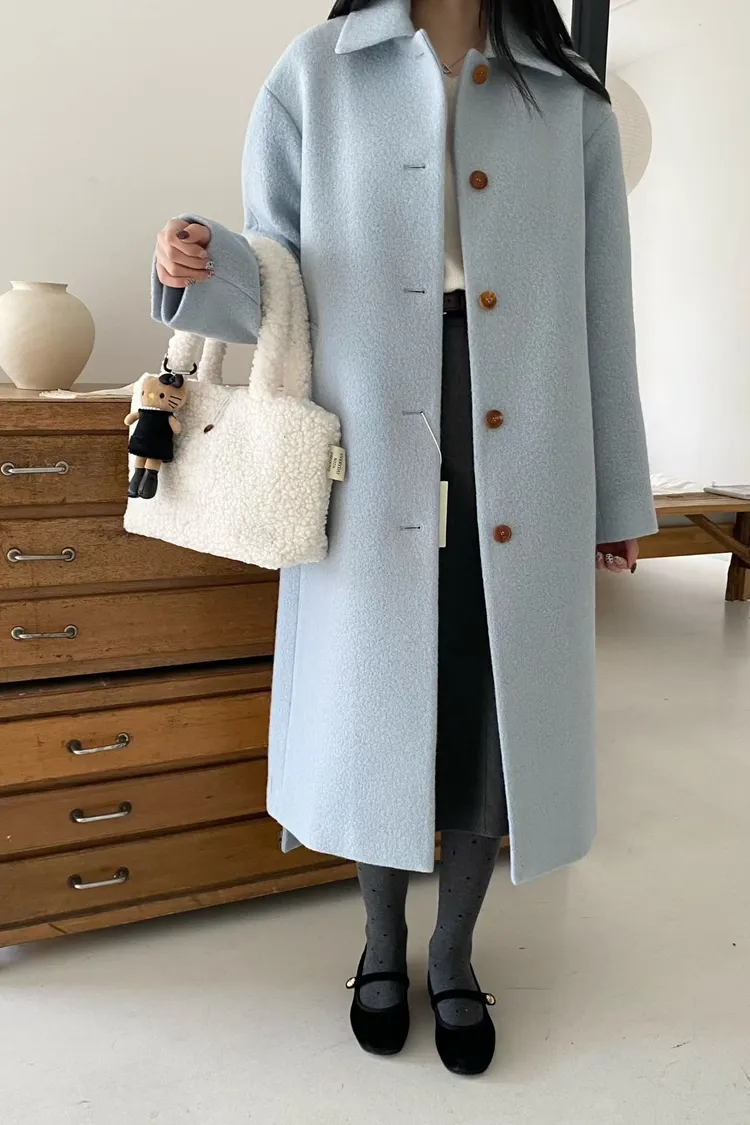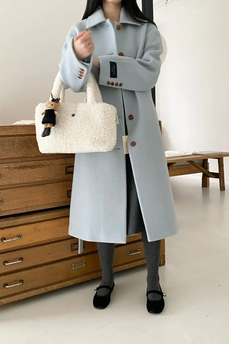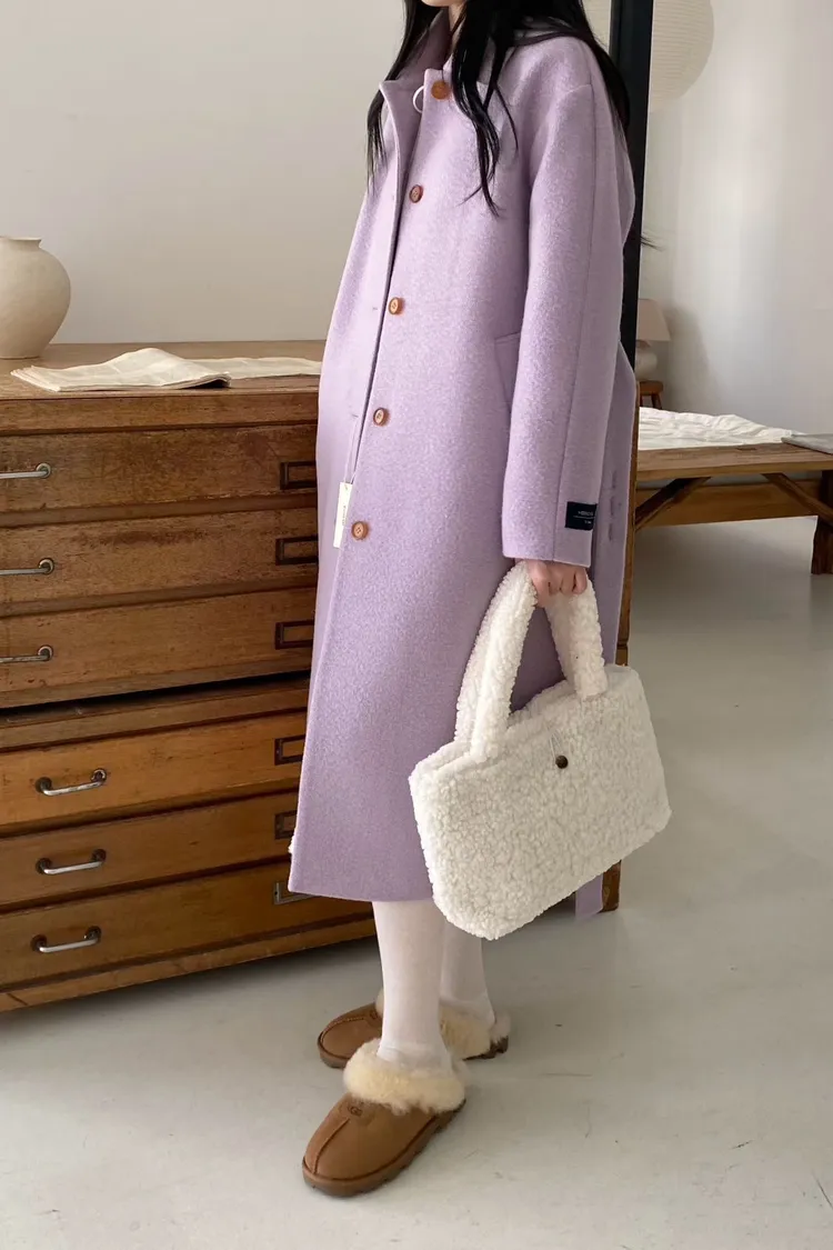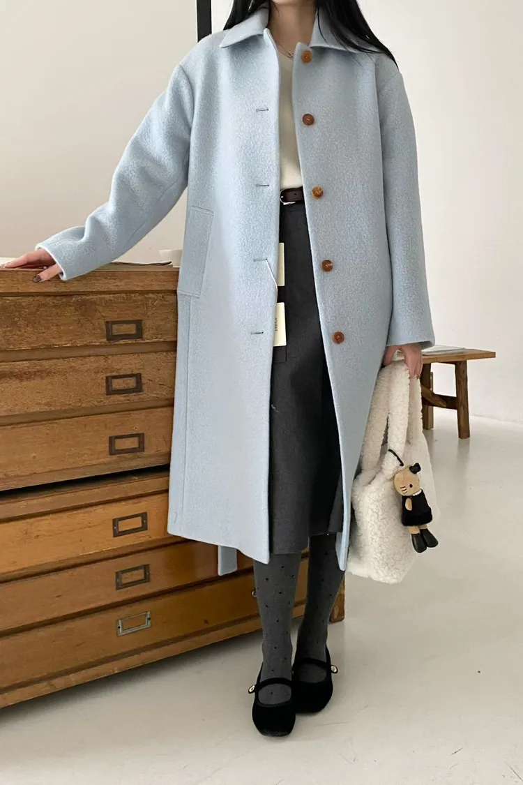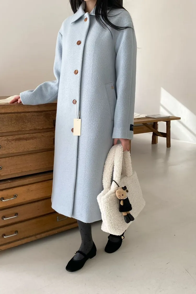 美麗諾羊毛100%、簡約單排扣設計 高級面料手感非常柔軟、輕盈保暖不厚重 腰帶是扣子形式,可以依照需求調節並固定、想要直接打結也OK 落肩小寬鬆版型,穿起來慵懶又有高級感,S-L妞都可以穿(65KG以內OK) 有口袋 韓國熱銷色是藍、香芋紫