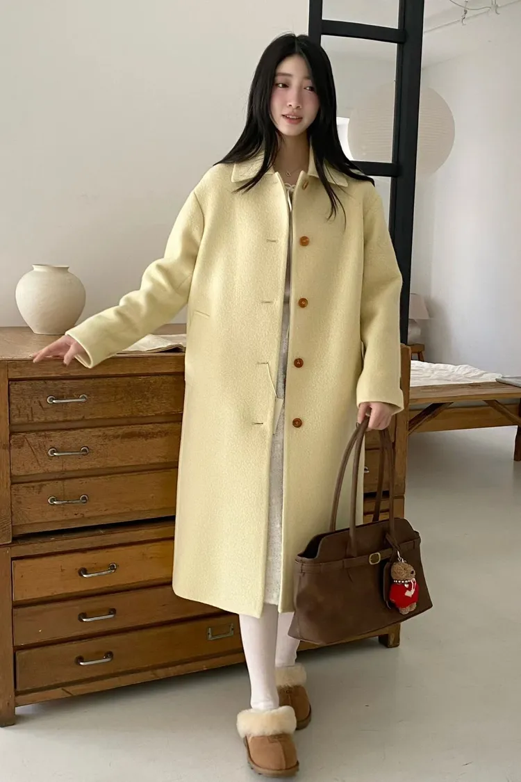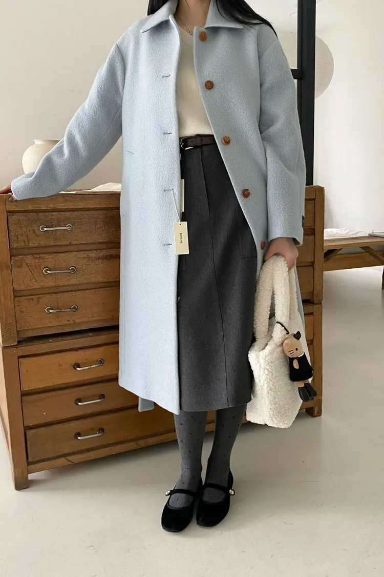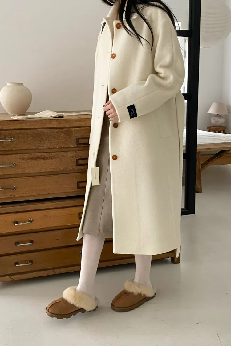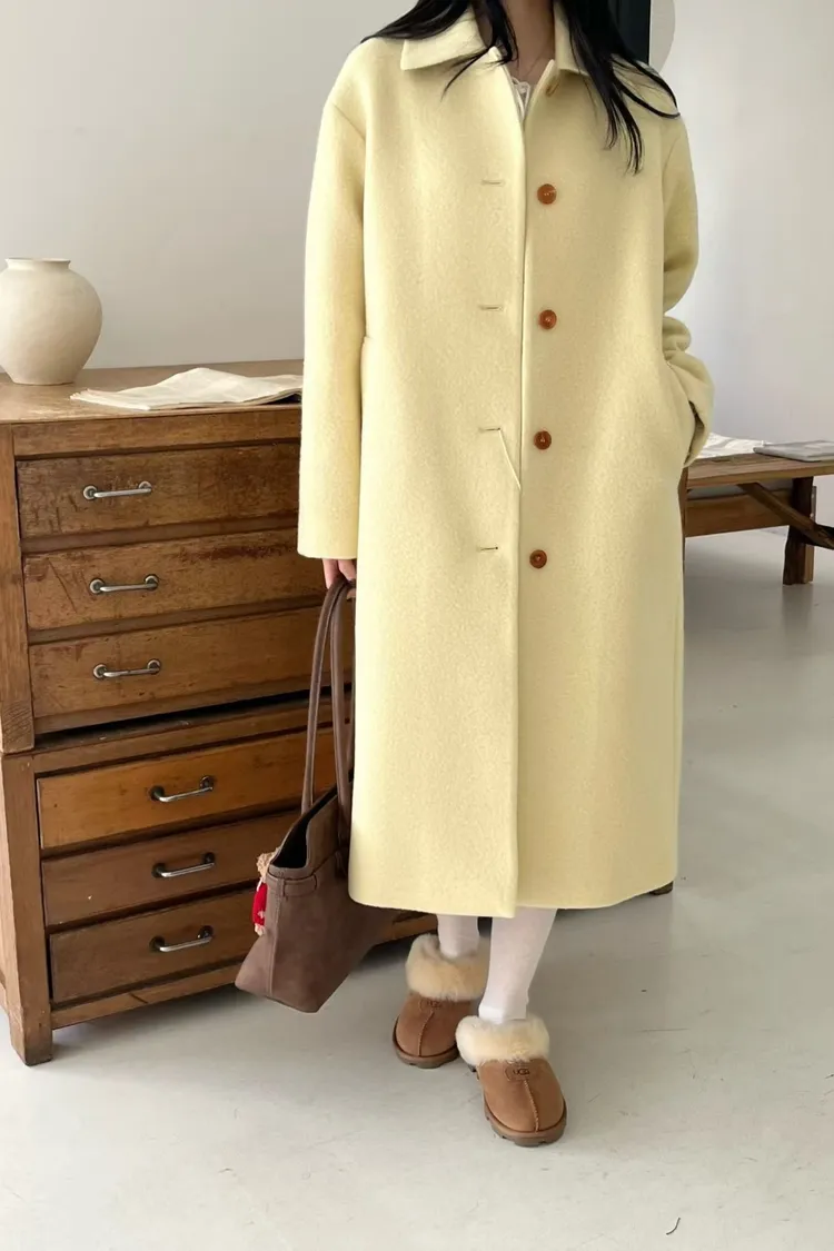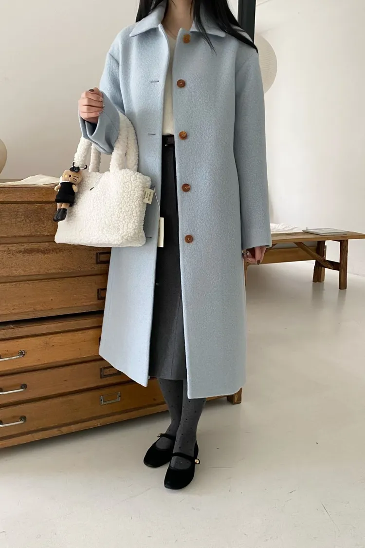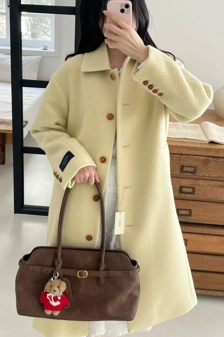 美麗諾羊毛100%、簡約單排扣設計 高級面料手感非常柔軟、輕盈保暖不厚重 腰帶是扣子形式,可以依照需求調節並固定、想要直接打結也OK 落肩小寬鬆版型,穿起來慵懶又有高級感,S-L妞都可以穿(65KG以內OK) 有口袋 韓國熱銷色是藍、香芋紫