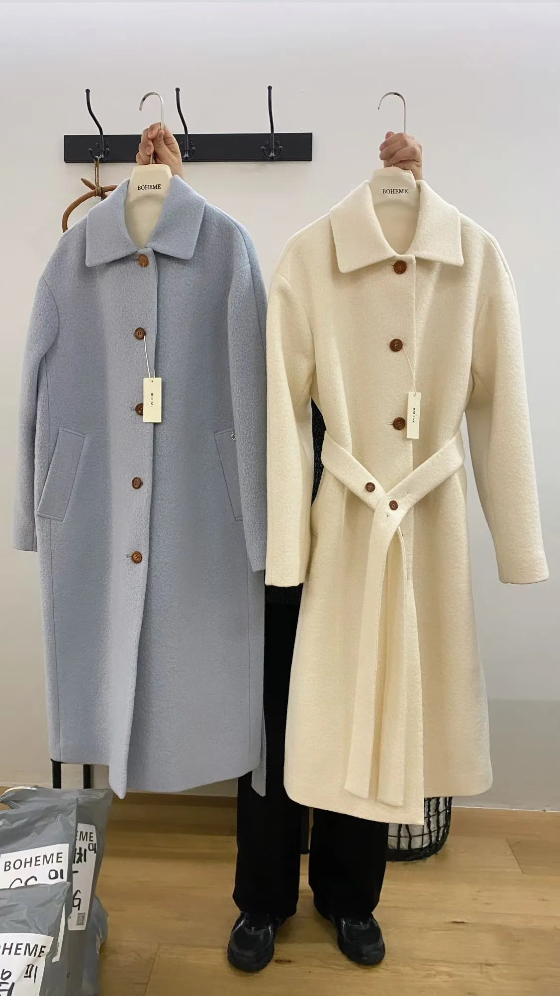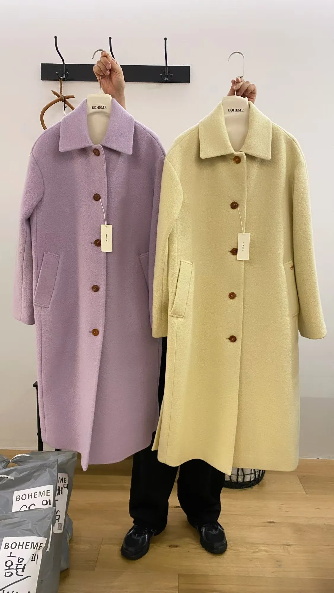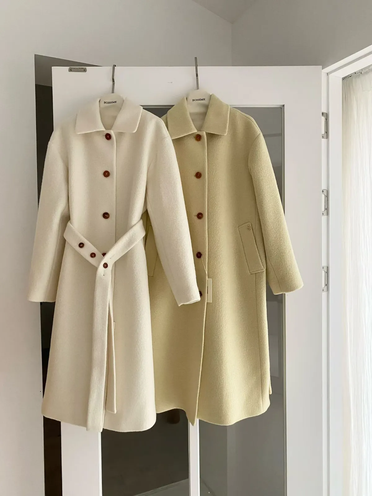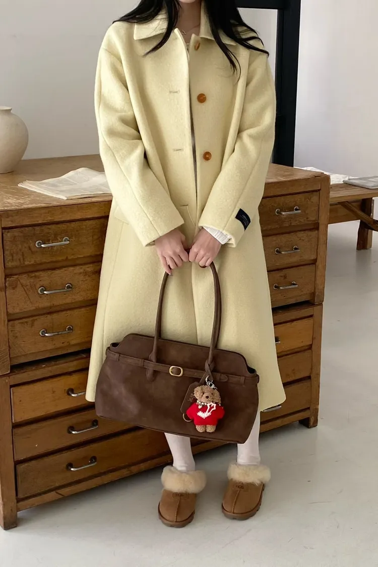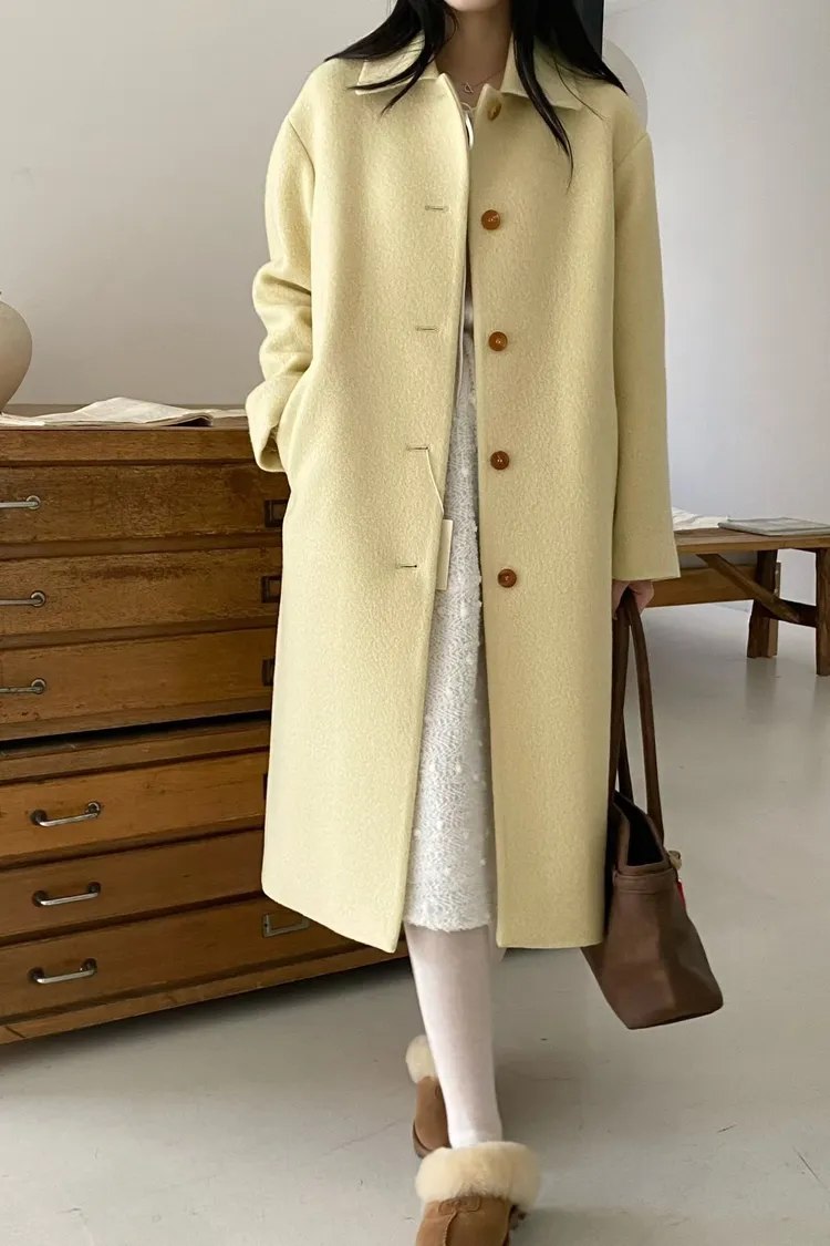 美麗諾羊毛100%、簡約單排扣設計 高級面料手感非常柔軟、輕盈保暖不厚重 腰帶是扣子形式,可以依照需求調節並固定、想要直接打結也OK 落肩小寬鬆版型,穿起來慵懶又有高級感,S-L妞都可以穿(65KG以內OK) 有口袋 韓國熱銷色是藍、香芋紫