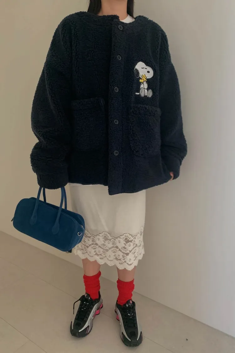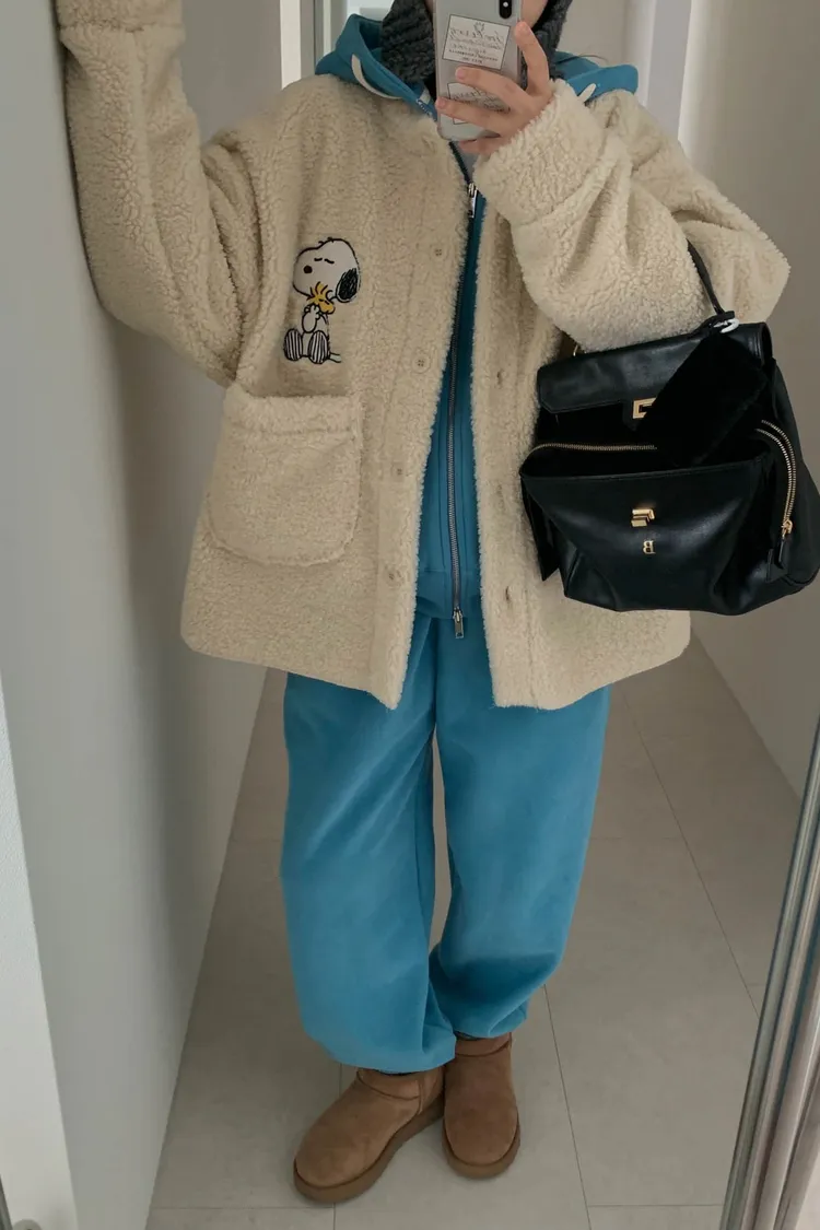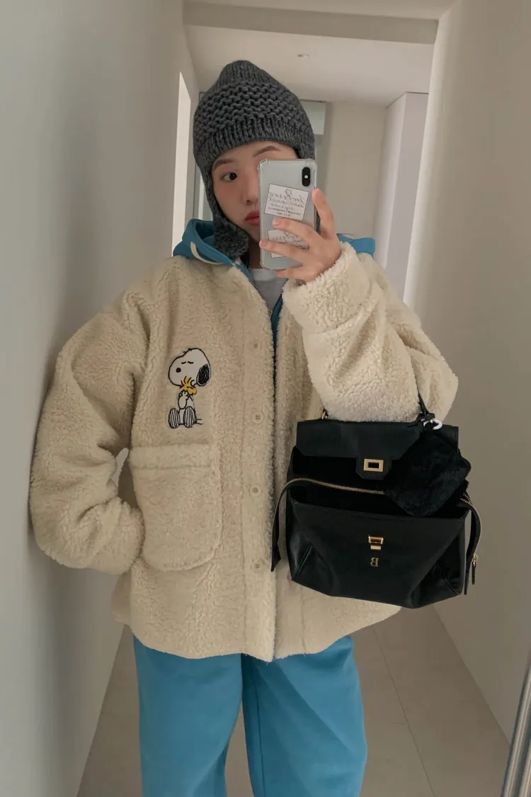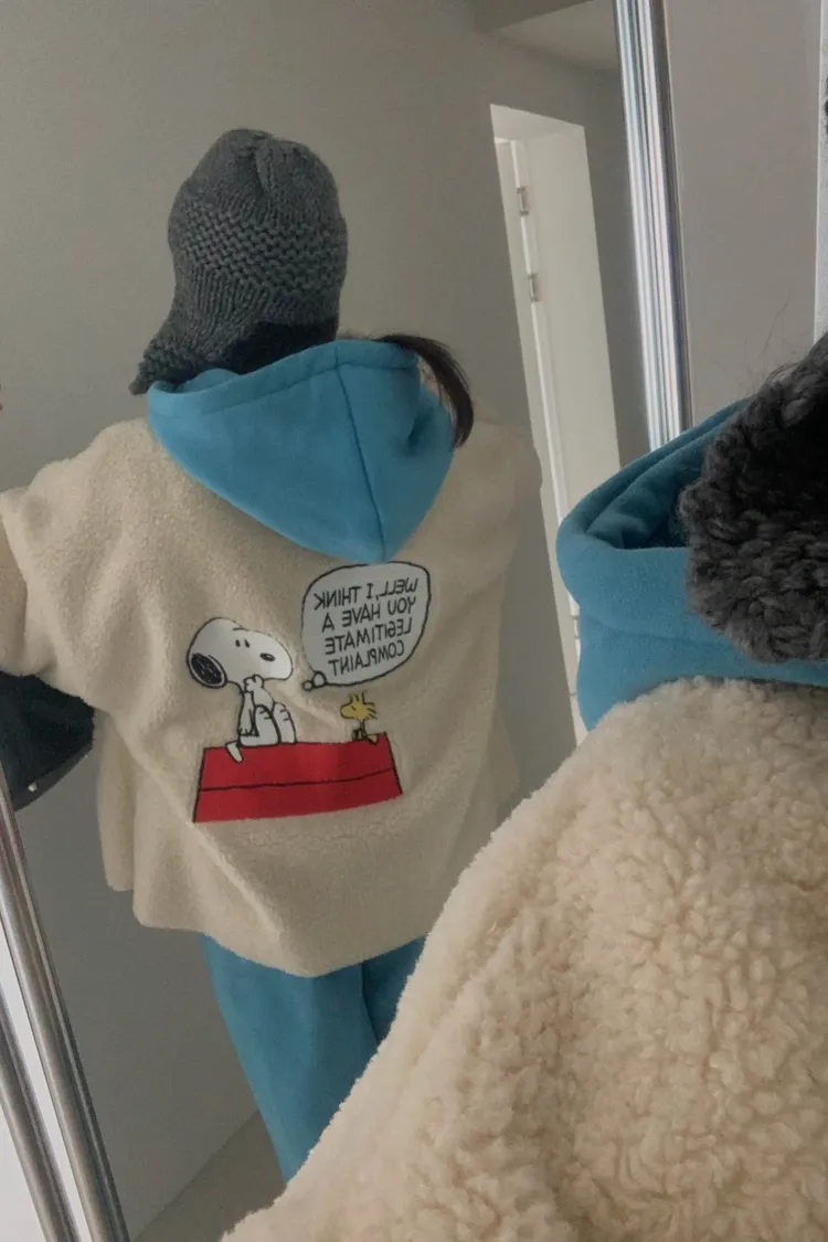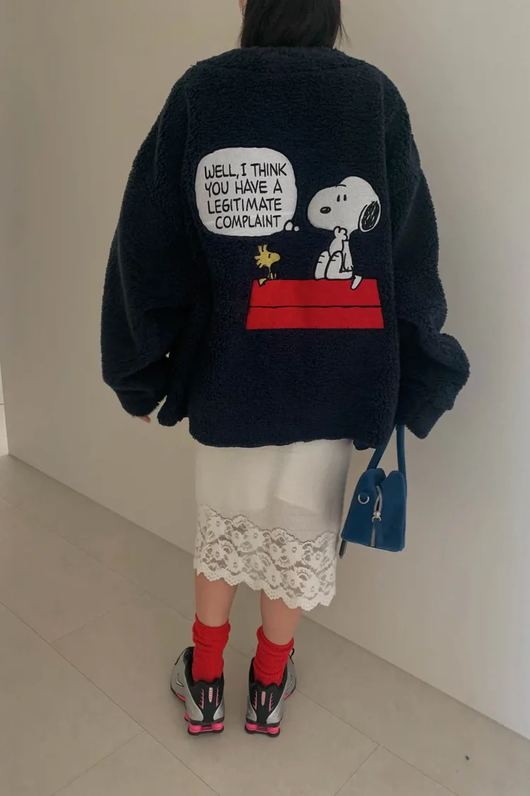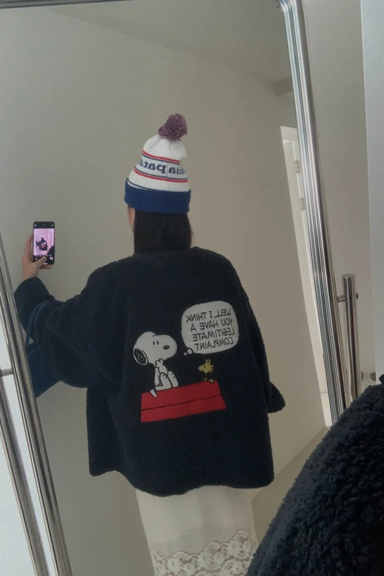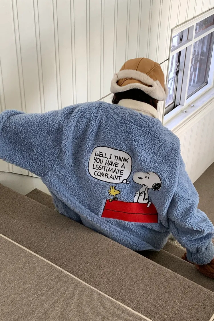 史奴比正版授權、胸口和背面都有史奴比刺繡,萌趣滿分