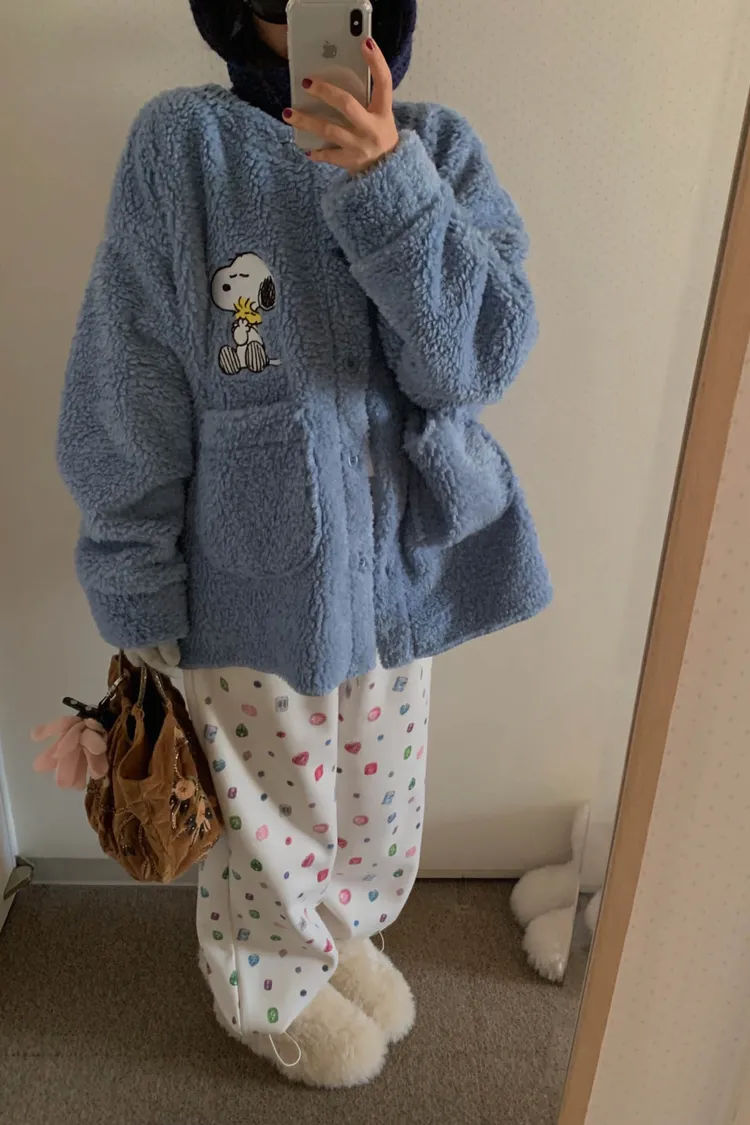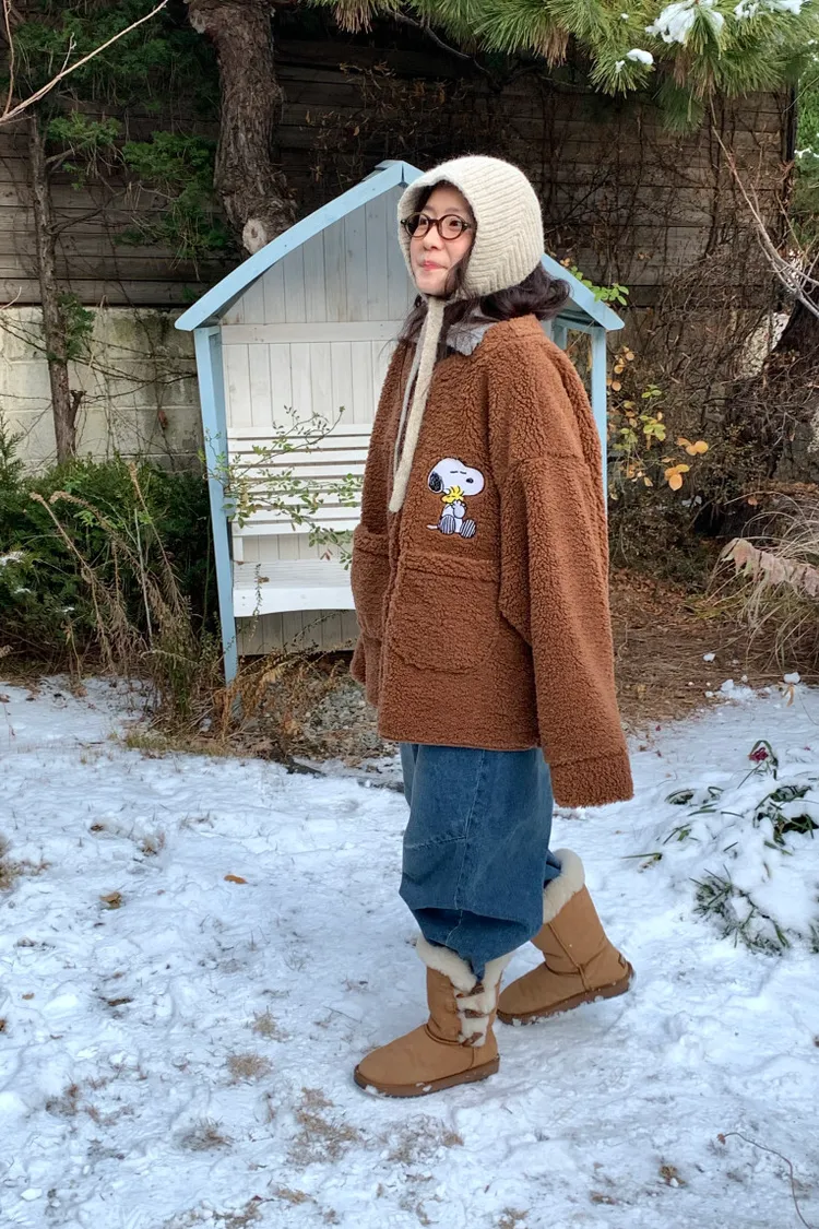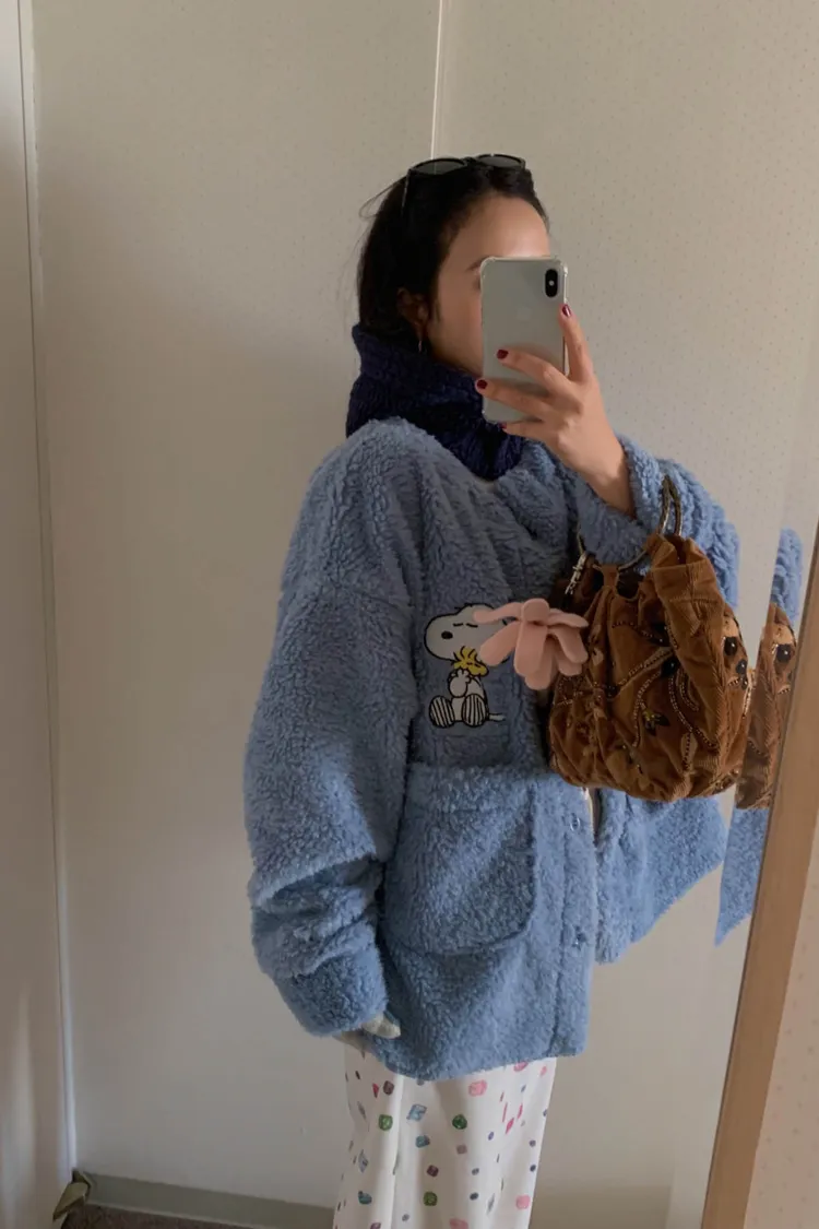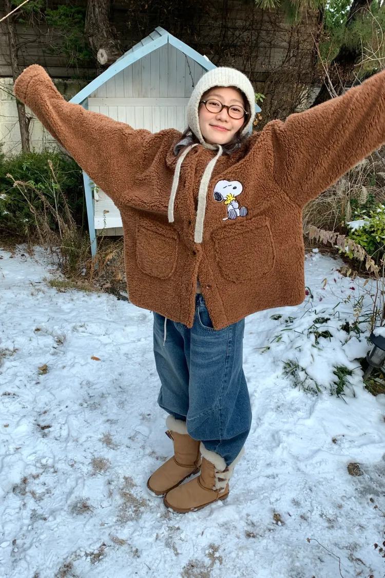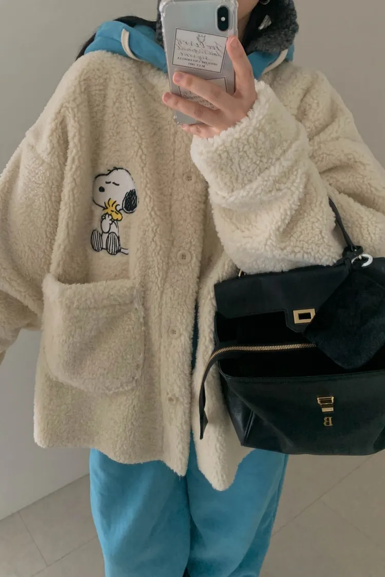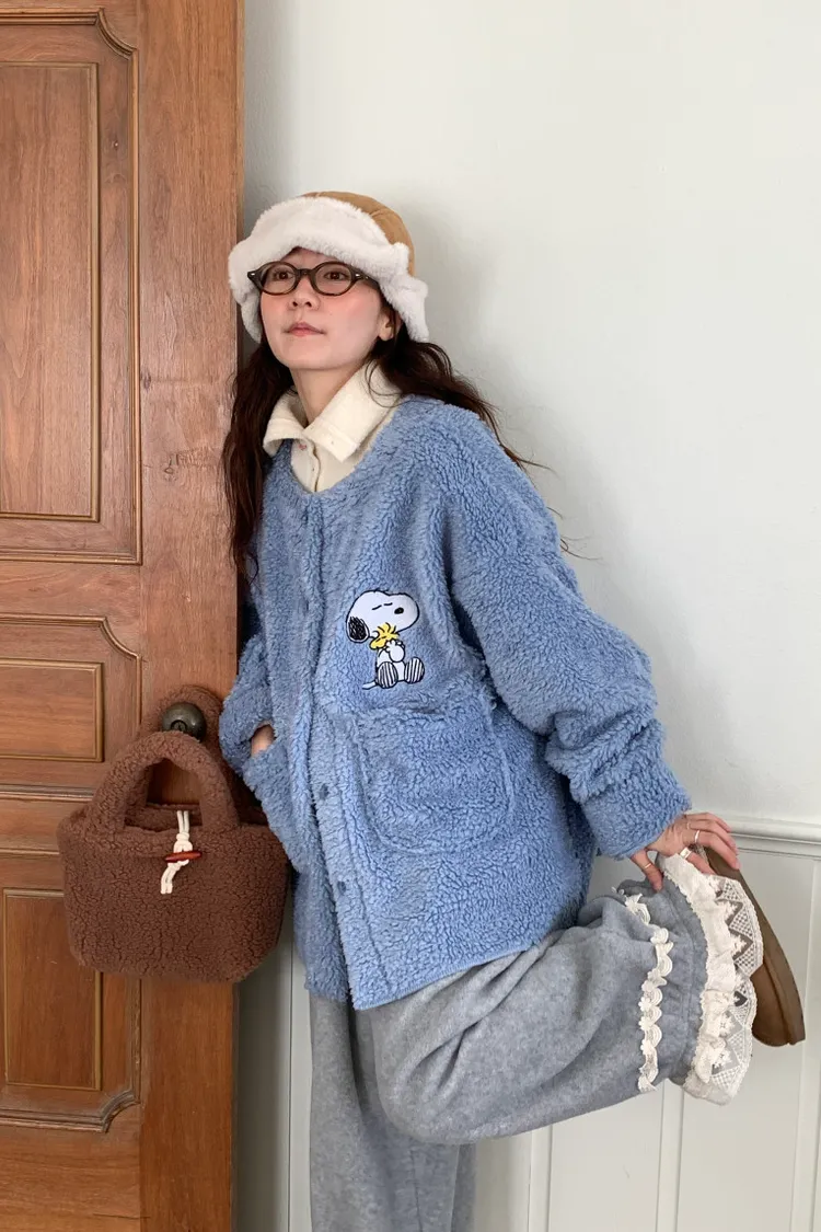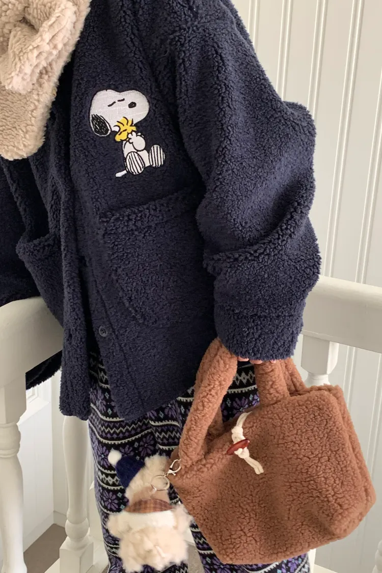 史奴比正版授權、胸口和背面都有史奴比刺繡,萌趣滿分