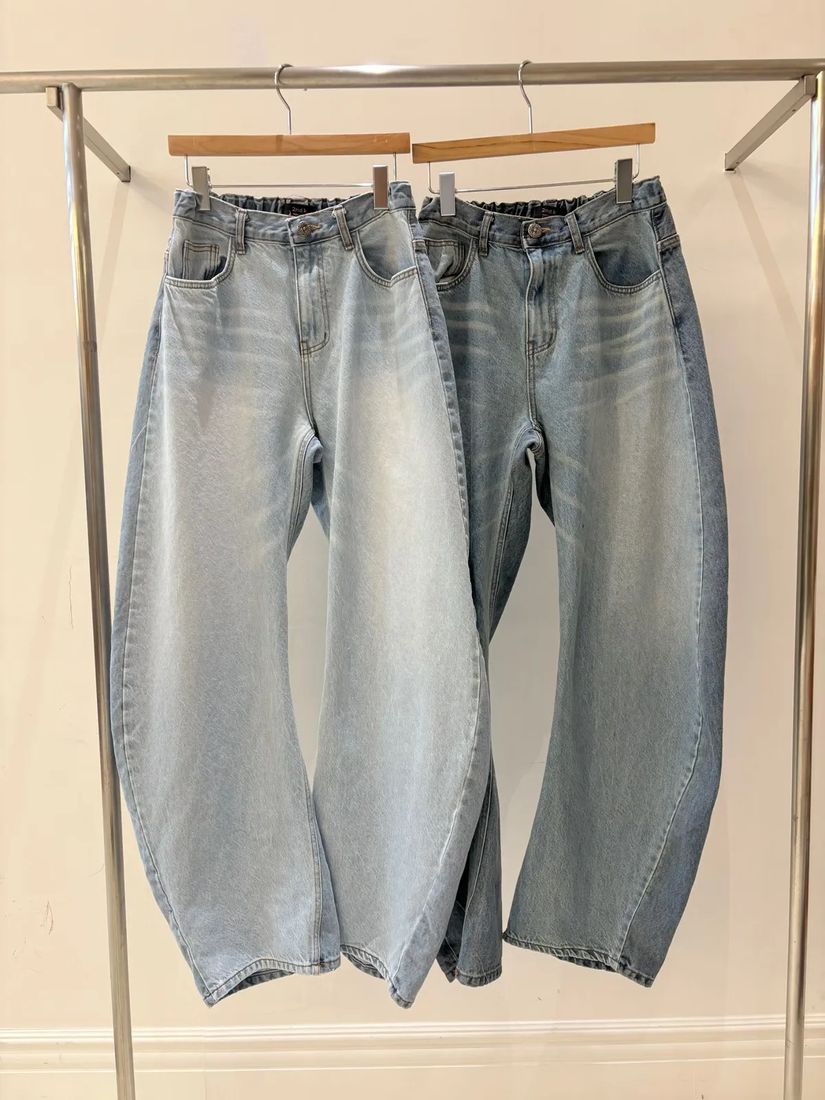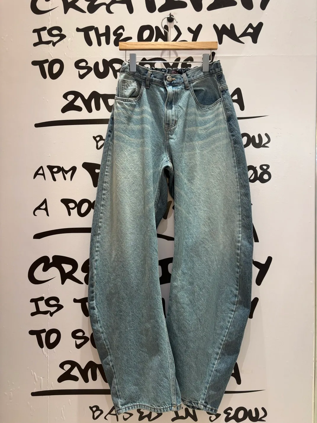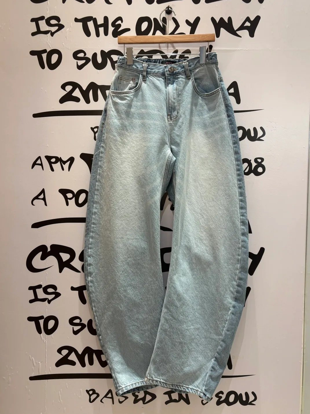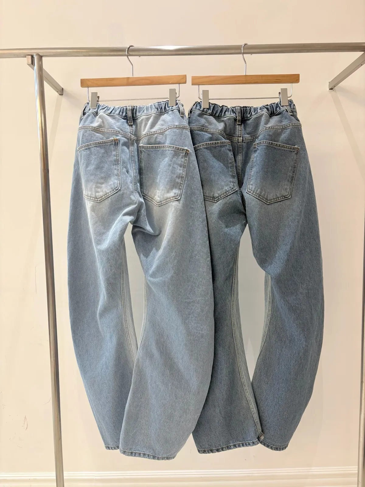 前淺後深拼接、水洗刷色丹寧牛仔面料,遠看就有層次感,近看更精緻 立體繭型彎刀褲型,不貼腿卻顯得整體更輕盈,後腰彈性鬆緊 兩側是特殊車縫線前移設計,模糊了真實腿部的輪廓,只留下俐落的弧線感 把在意的兩側大腿肉肉給藏起來! 正面看過去,腿寬瞬間縮窄,顯瘦的秘密~