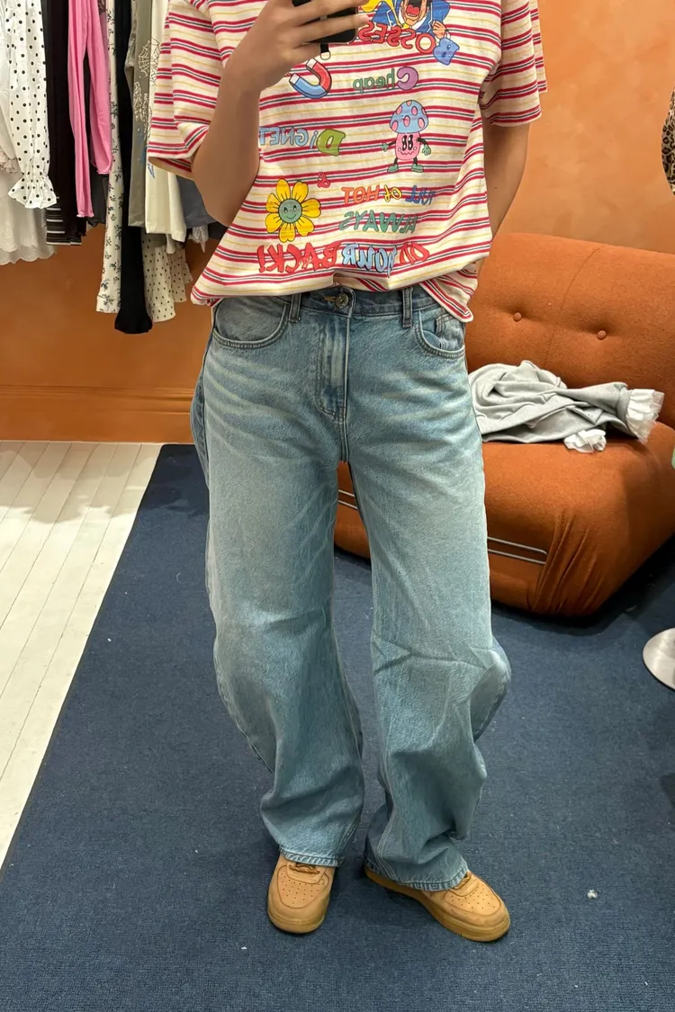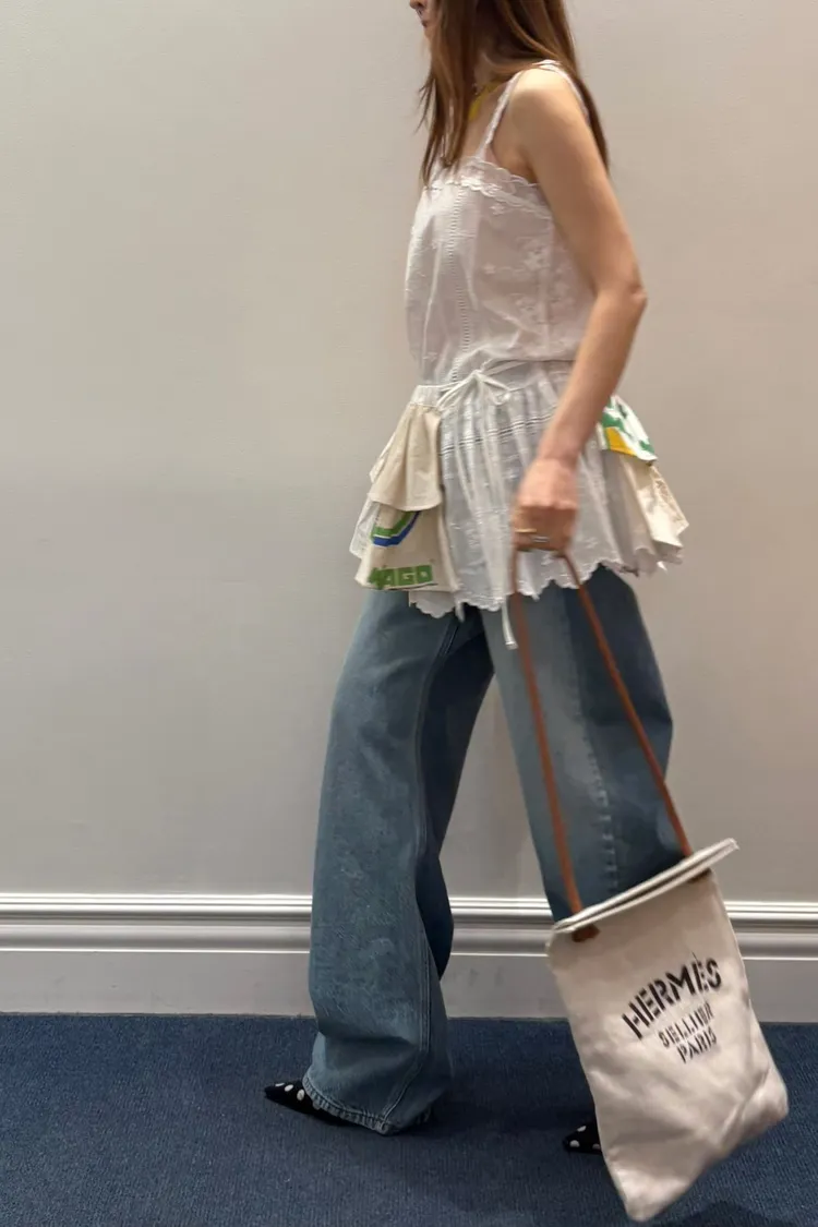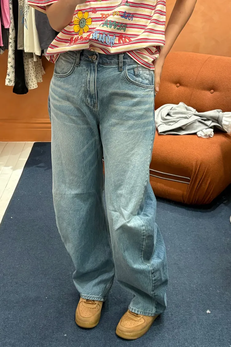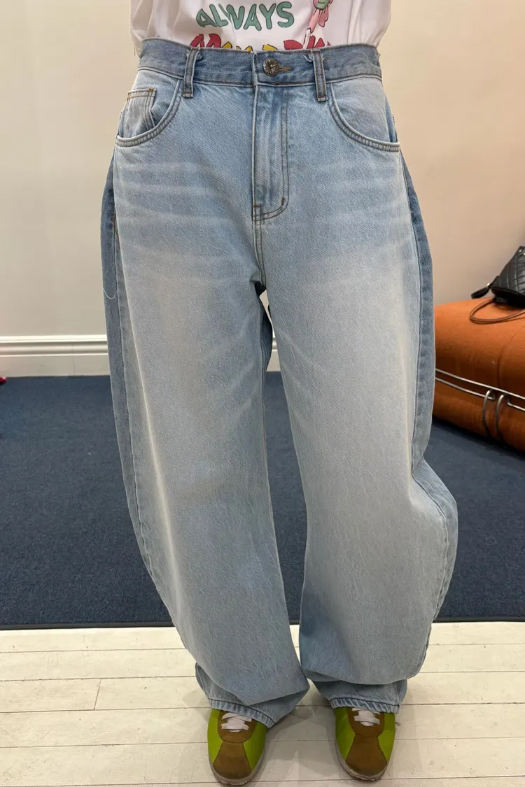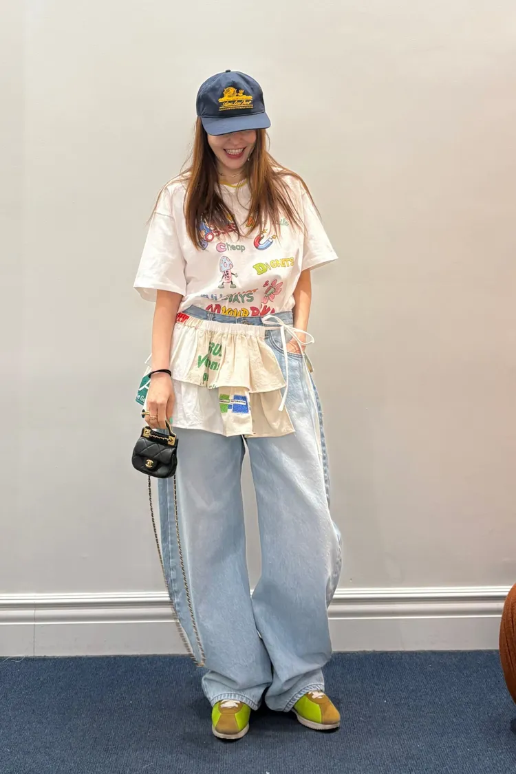 前淺後深拼接、水洗刷色丹寧牛仔面料,遠看就有層次感,近看更精緻 立體繭型彎刀褲型,不貼腿卻顯得整體更輕盈,後腰彈性鬆緊 兩側是特殊車縫線前移設計,模糊了真實腿部的輪廓,只留下俐落的弧線感 把在意的兩側大腿肉肉給藏起來! 正面看過去,腿寬瞬間縮窄,顯瘦的秘密~