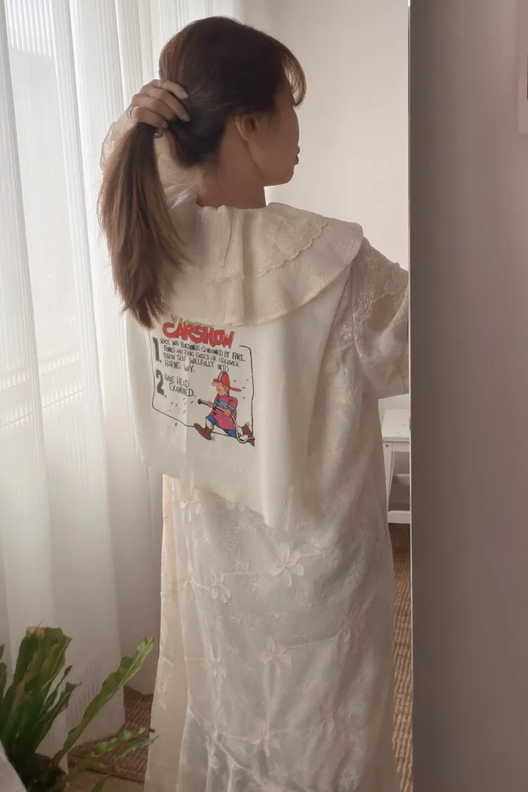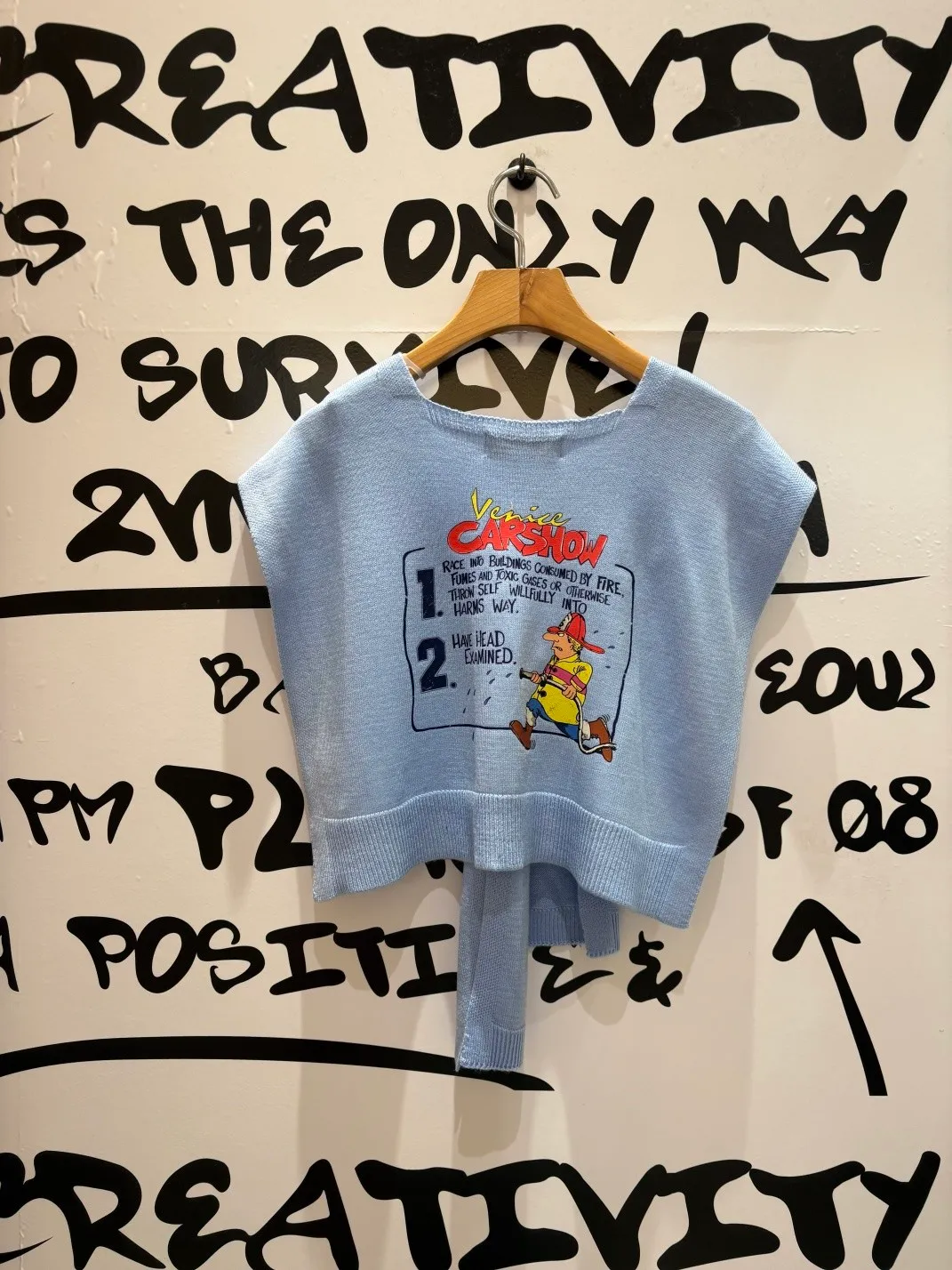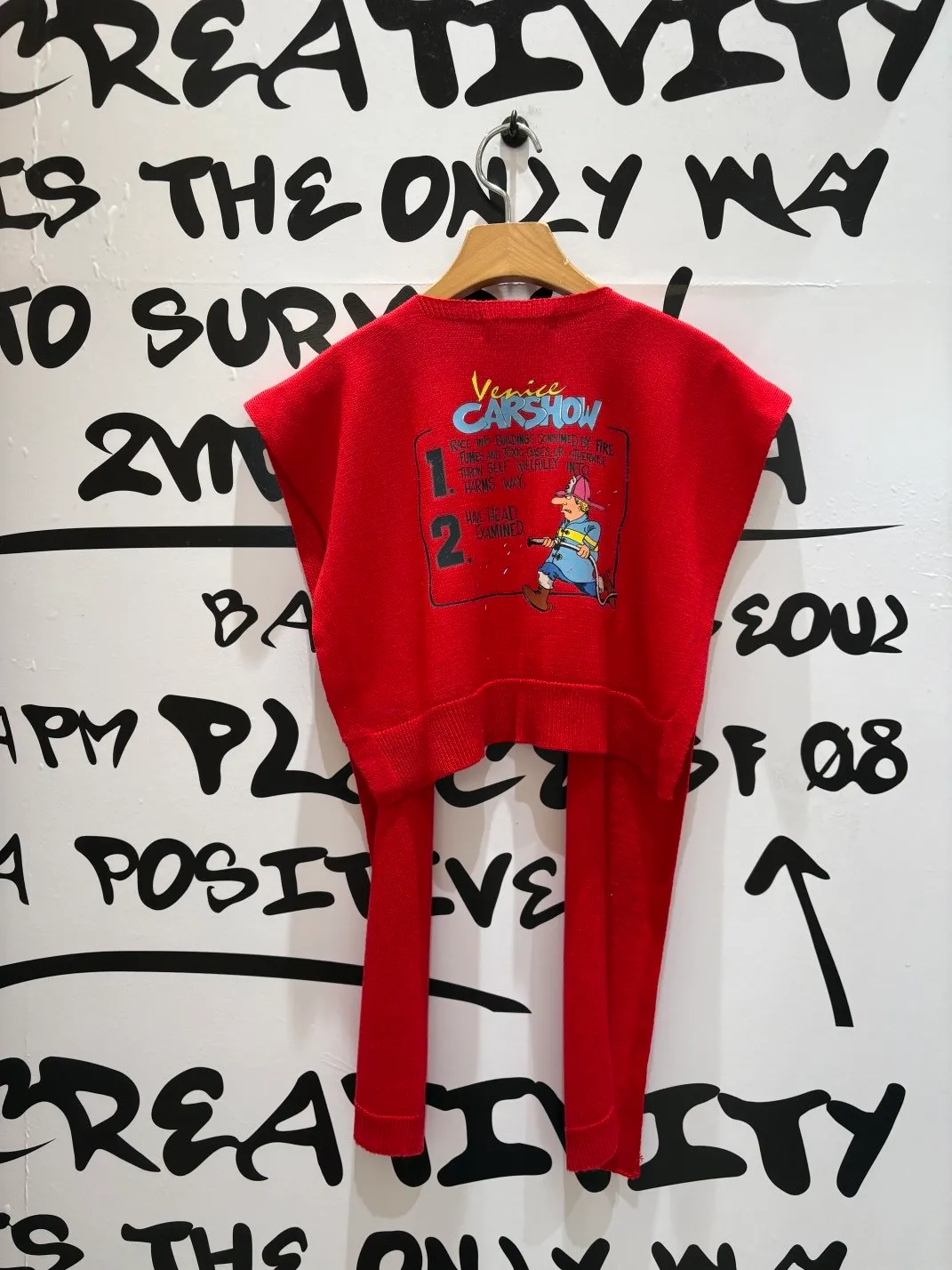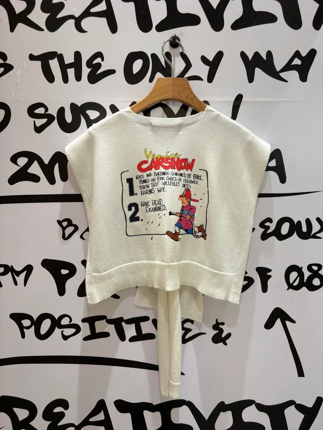 基本上已經成為背殺家很經典的小配件 艾蜜自己也收藏了很多條 當造型披肩同時也有點保暖效果,也能增添層次 綁腰上取代制式腰帶~更隨性好看 薄薄針織面料,印有可愛幽默的圖案 復古漫畫風消防隊員圖案搭配字母標語 為整體造型注入俏皮趣味感 讓日常穿搭瞬間多了亮點 層次穿搭必入單品! 韓國熱銷色是藍、灰、黃、紅