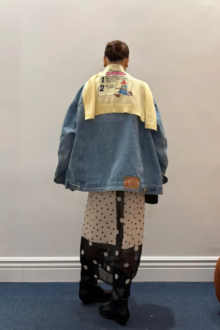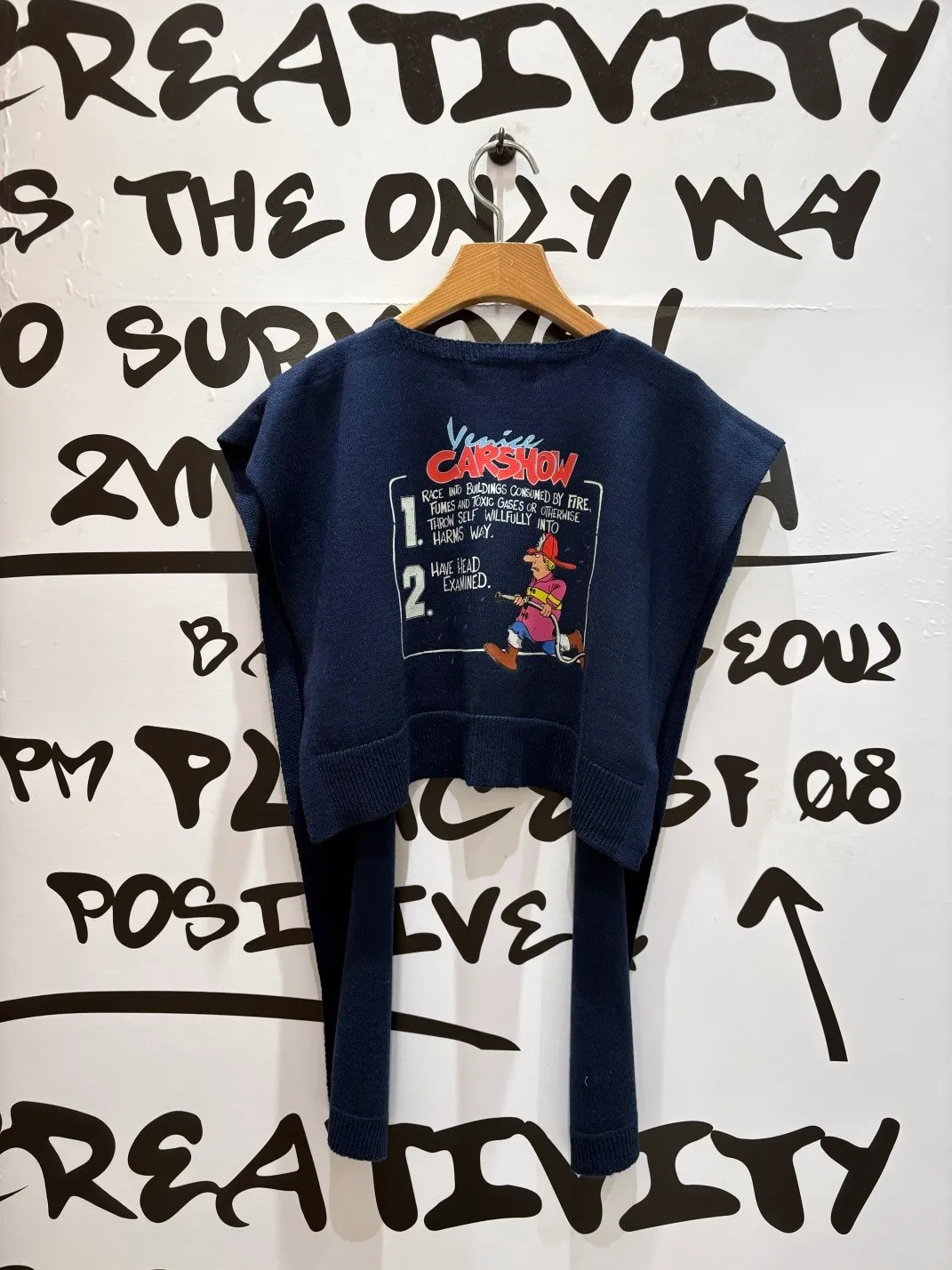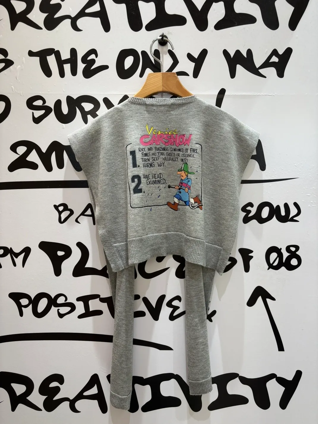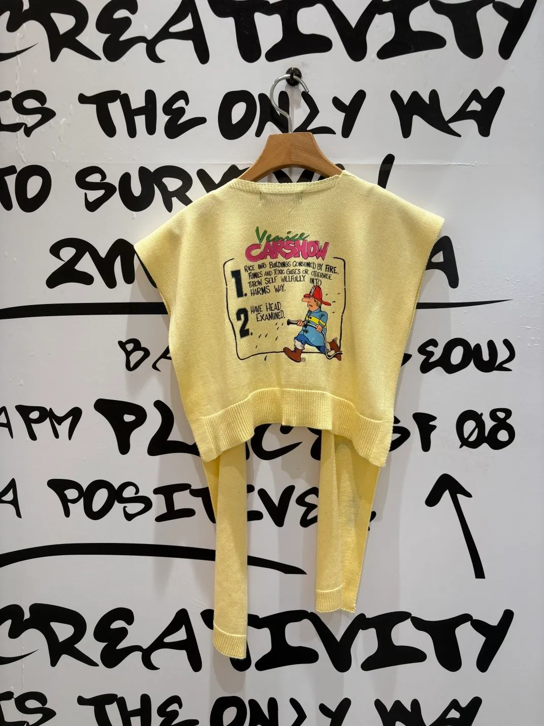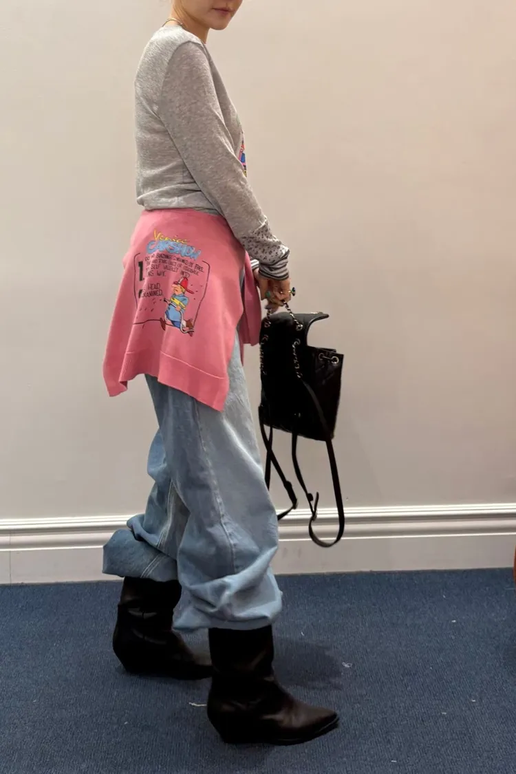 基本上已經成為背殺家很經典的小配件 艾蜜自己也收藏了很多條 當造型披肩同時也有點保暖效果,也能增添層次 綁腰上取代制式腰帶~更隨性好看 薄薄針織面料,印有可愛幽默的圖案 復古漫畫風消防隊員圖案搭配字母標語 為整體造型注入俏皮趣味感 讓日常穿搭瞬間多了亮點 層次穿搭必入單品! 韓國熱銷色是藍、灰、黃、紅
