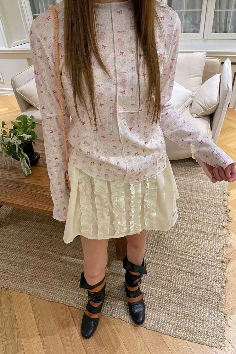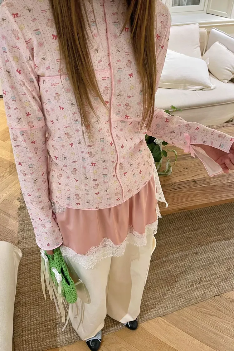 袖口有開衩蝴蝶結緞帶,當打底露出袖口超精緻~