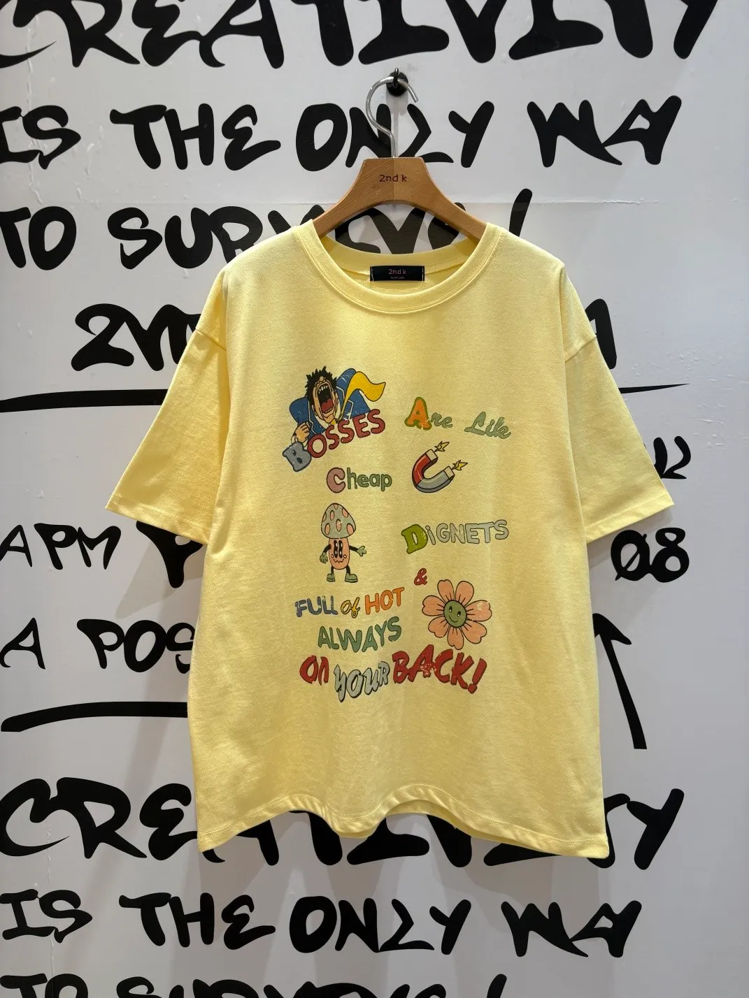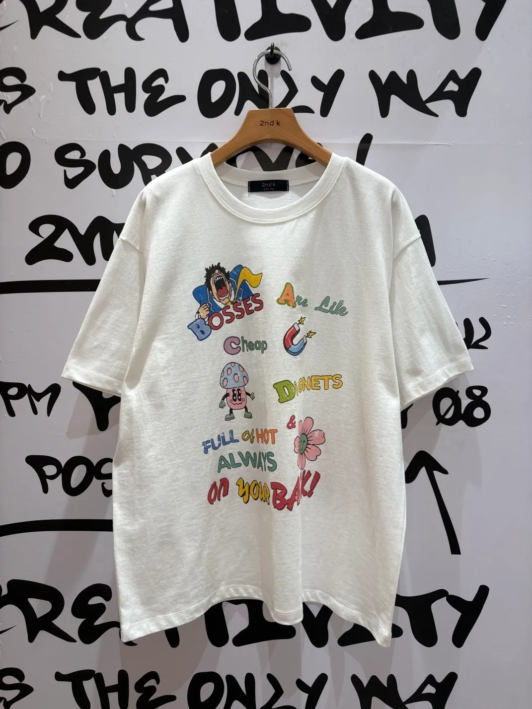完全是減齡高手單品♡ 棉料材質柔軟親膚、寬鬆版型穿起來自在又有慵懶感,S-L妞都可以穿 復古褪色感字母搭配童趣印花,像把小時候的塗鴉偷偷穿在身上 活潑卻不會太幼稚,剛剛好的可愛俏皮 相同版型,FET07是條紋印花款,可一併參考