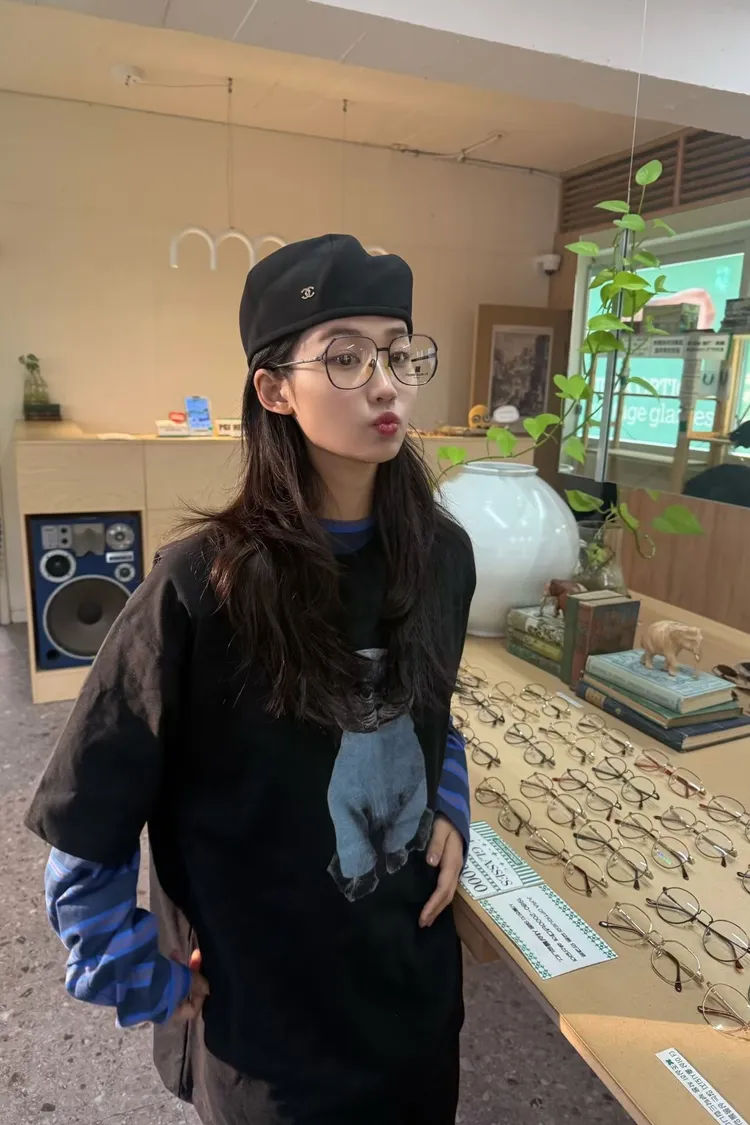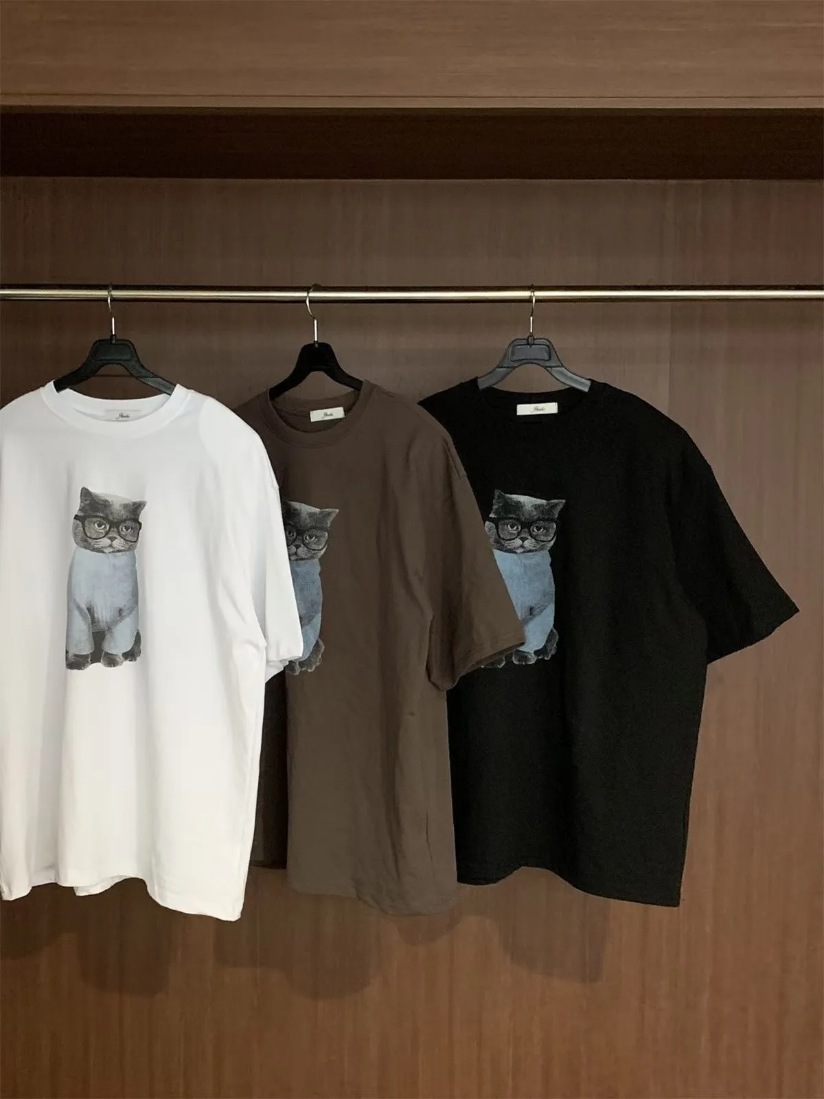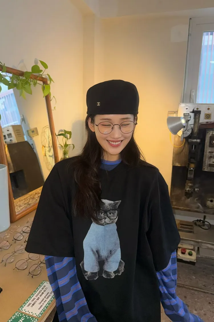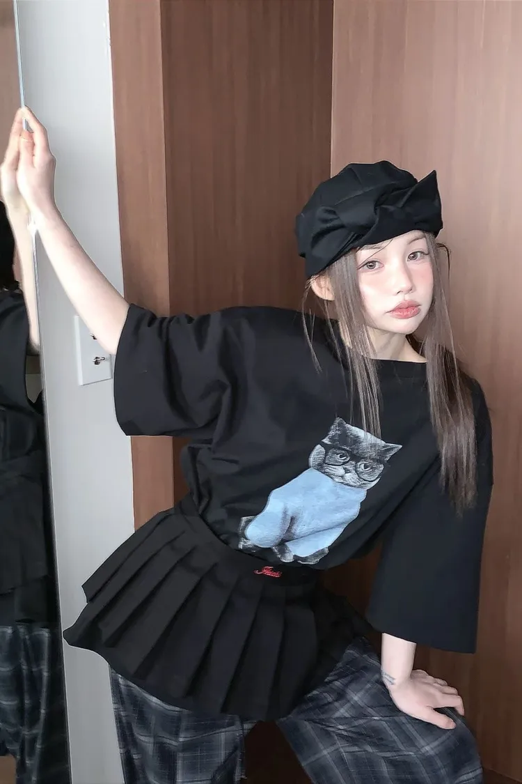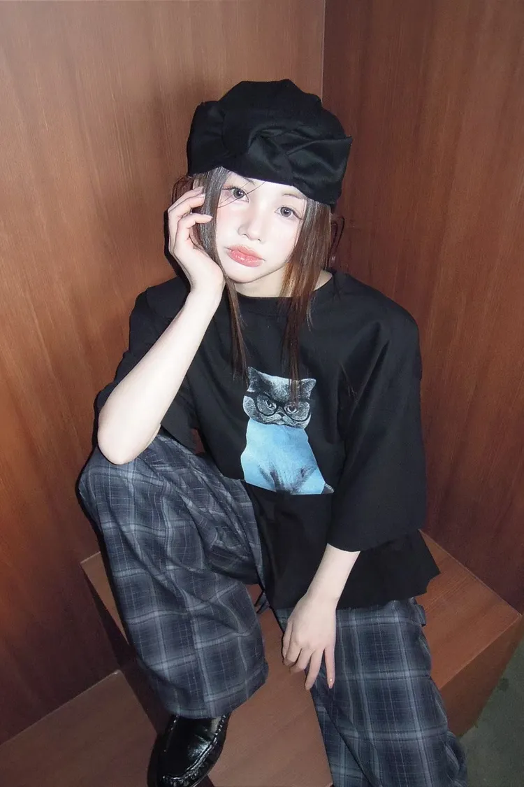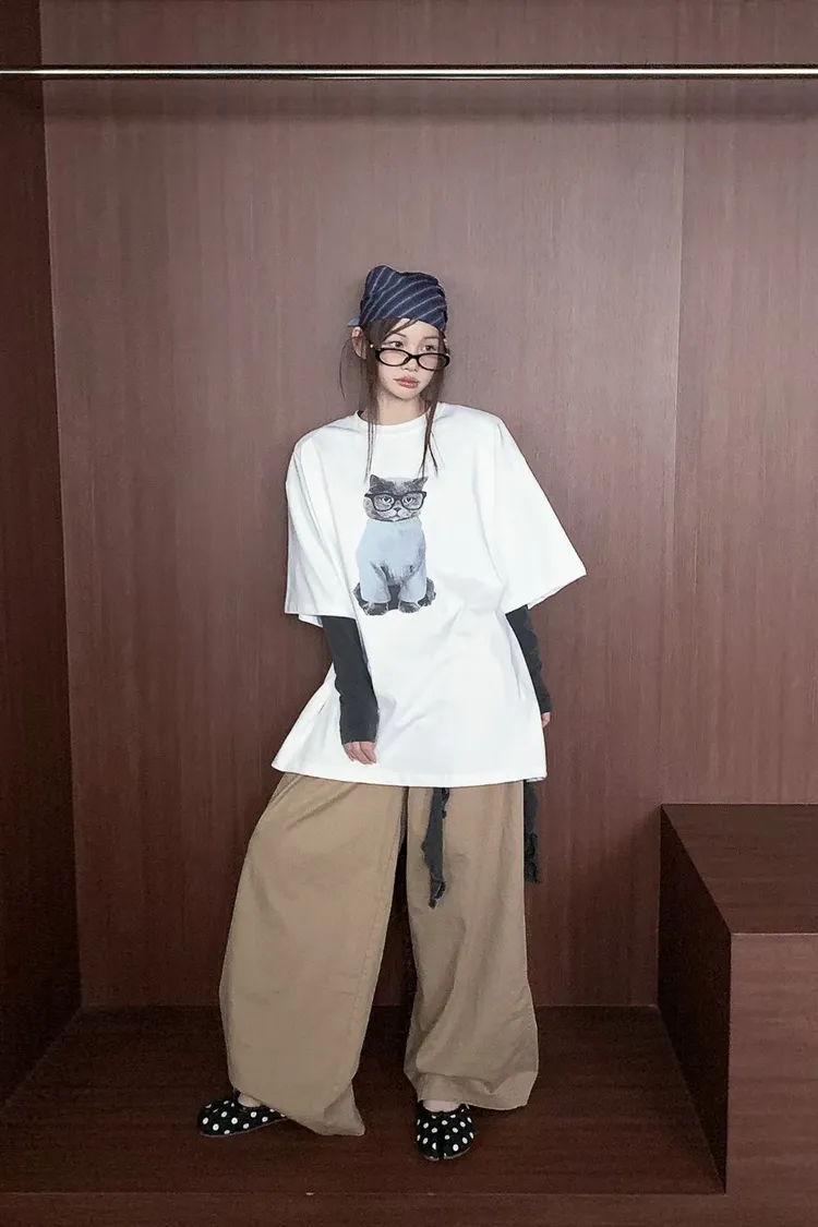 上身印有戴眼鏡的小貓咪,活潑俏皮又帶趣味感,輕鬆打造可愛俏皮日常造型