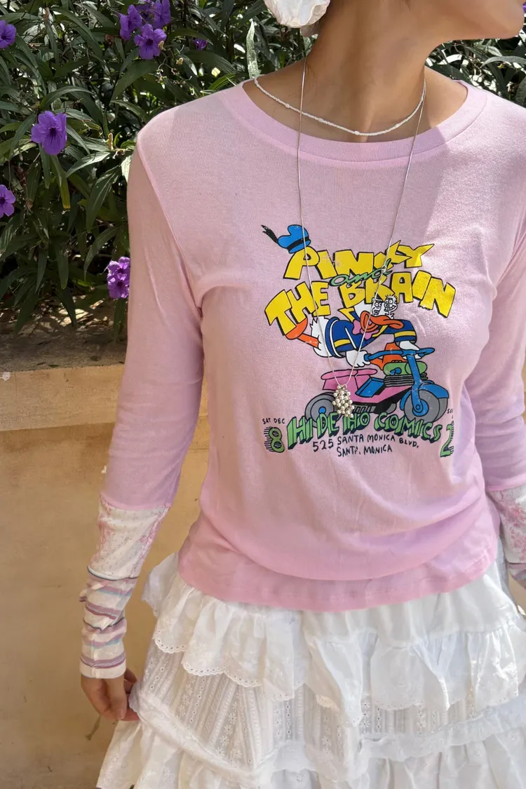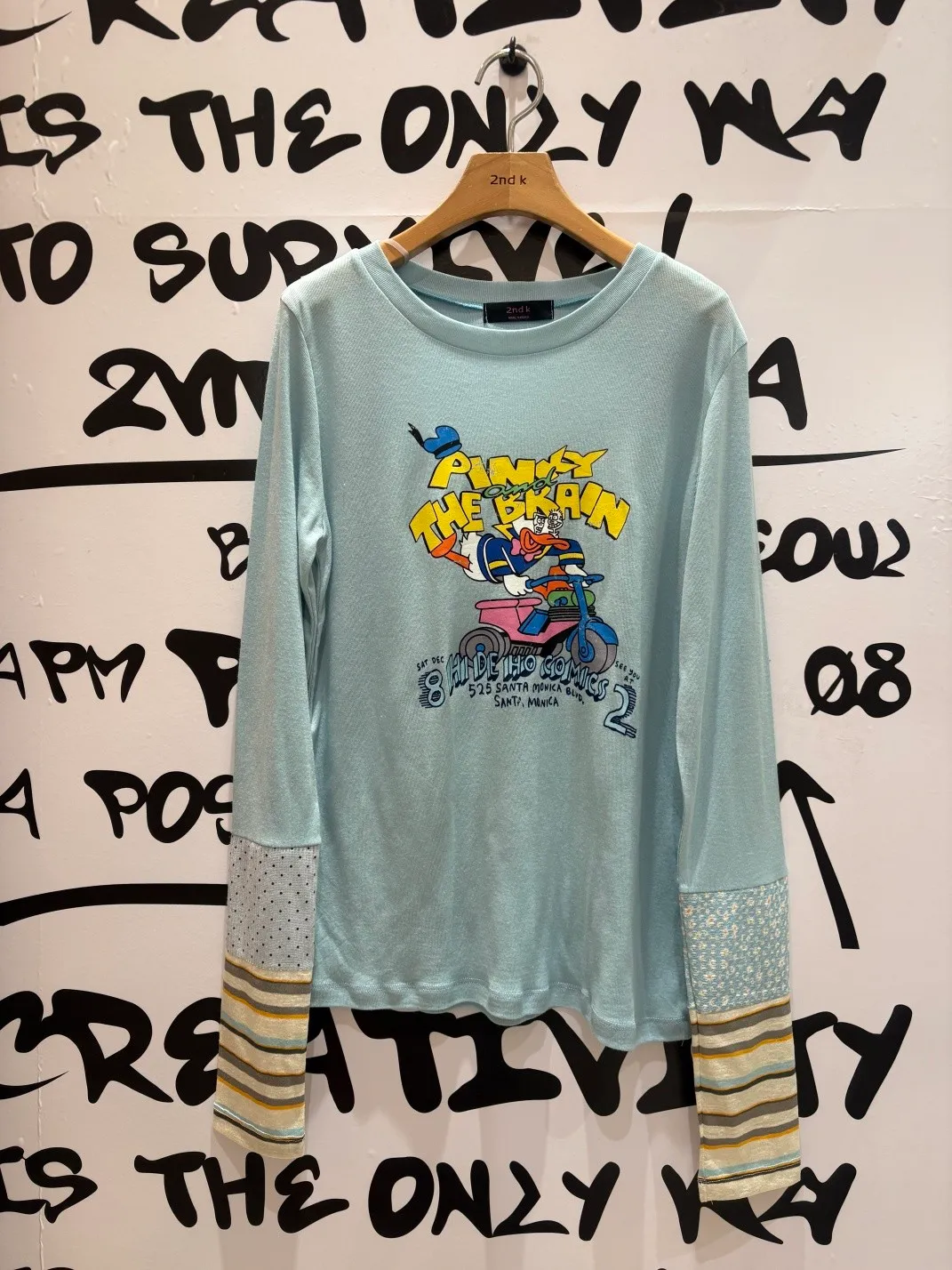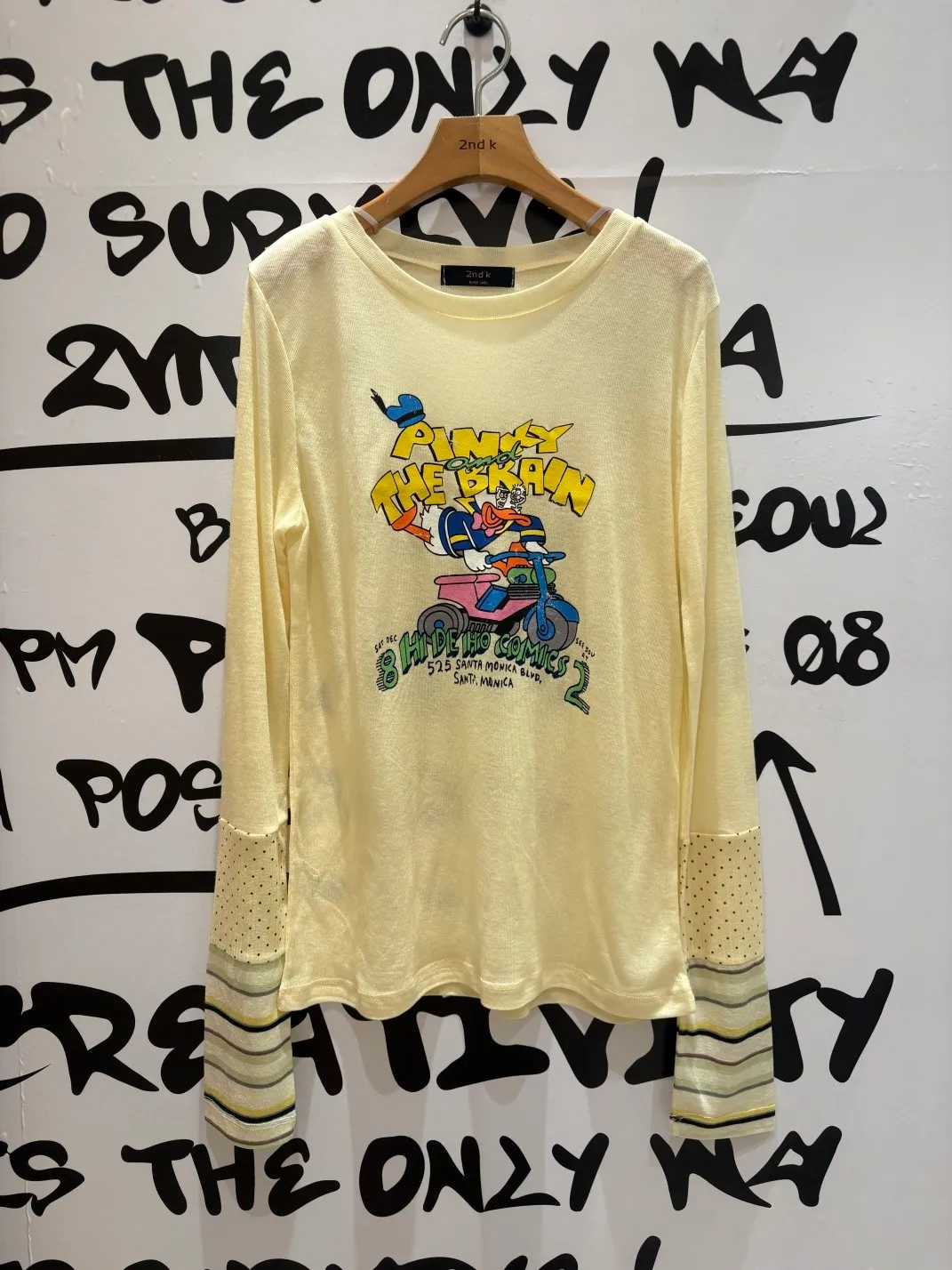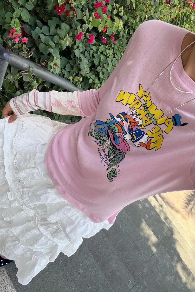 非常薄且高彈力的天絲面料,S-XL妞都可以穿 袖口有不對稱配色設計小巧俏皮 雖然穿著感比較貼身,棉花糖妞也不要害怕~ 把它當作打底來穿,搭配上背心洋、吊帶洋、連身褲穿 層次穿搭露出手袖小細節,就不會有好合身不自在的FU! 印有可愛唐老鴨趣味圖案,讓日常穿搭多了活潑幽默的小亮點 簡單搭就能散發童趣俏皮感