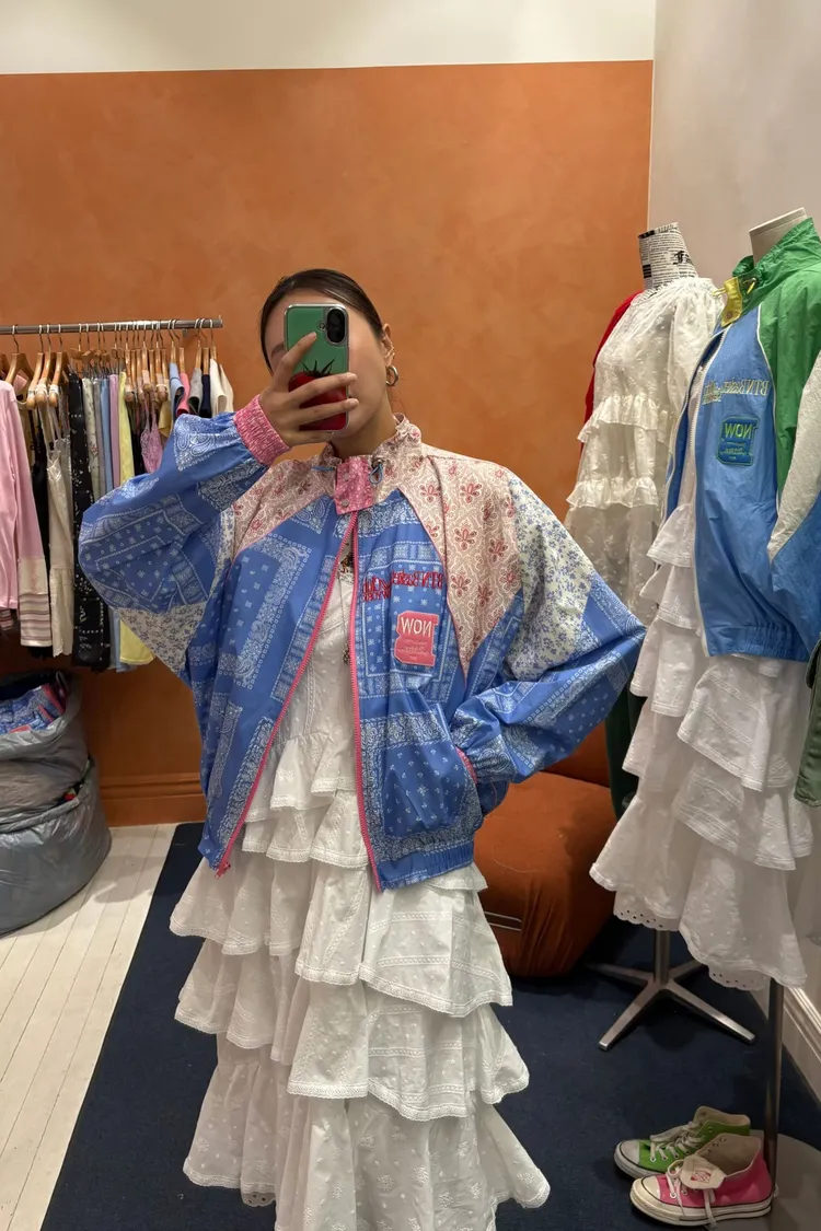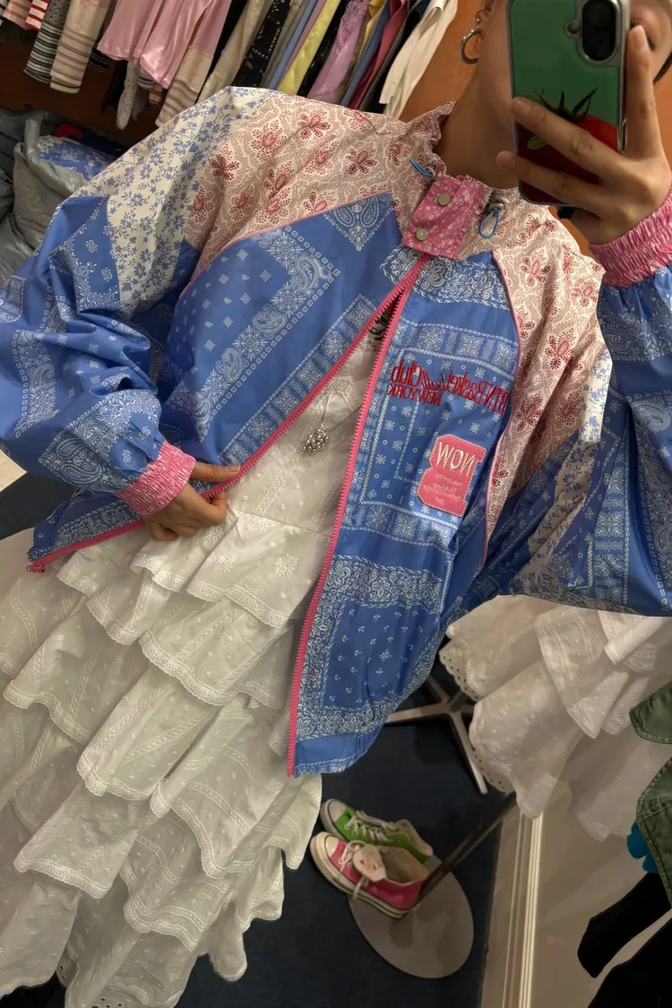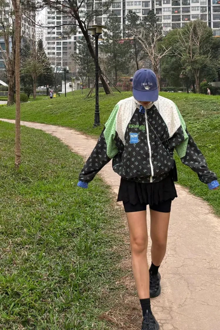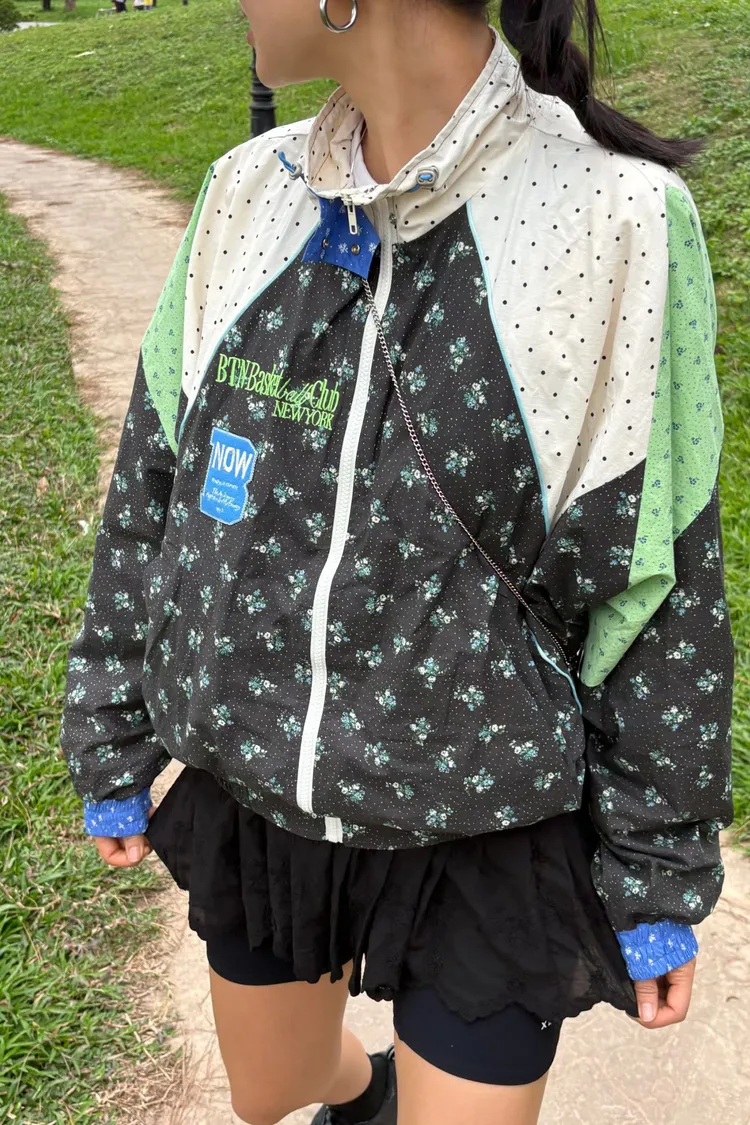 棉料混紡,落肩寬鬆版型,S-XL妞都可以穿 滾邊、拉鍊以及領口處都做了精緻的對比配色 撞色與花樣拼接設計,讓簡單輪廓充滿層次感與趣味細節 內襯採用輕薄的單面平紋布,讓夾克穿起來會有一定的立體澎鬆感 不會因布料太薄而顯得廉價或過於貼身! 胸前字幕刺繡布章增添俏皮亮點,有口袋 相同版型,FEU06是撞色拼接版,可一併參考 韓國熱銷色是黑