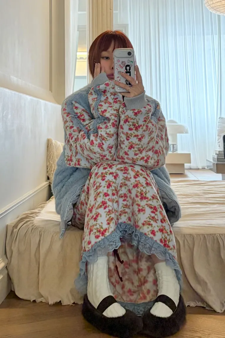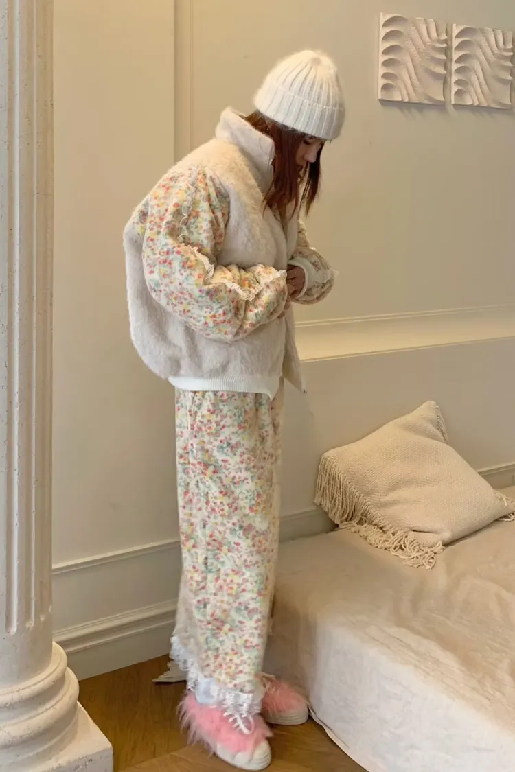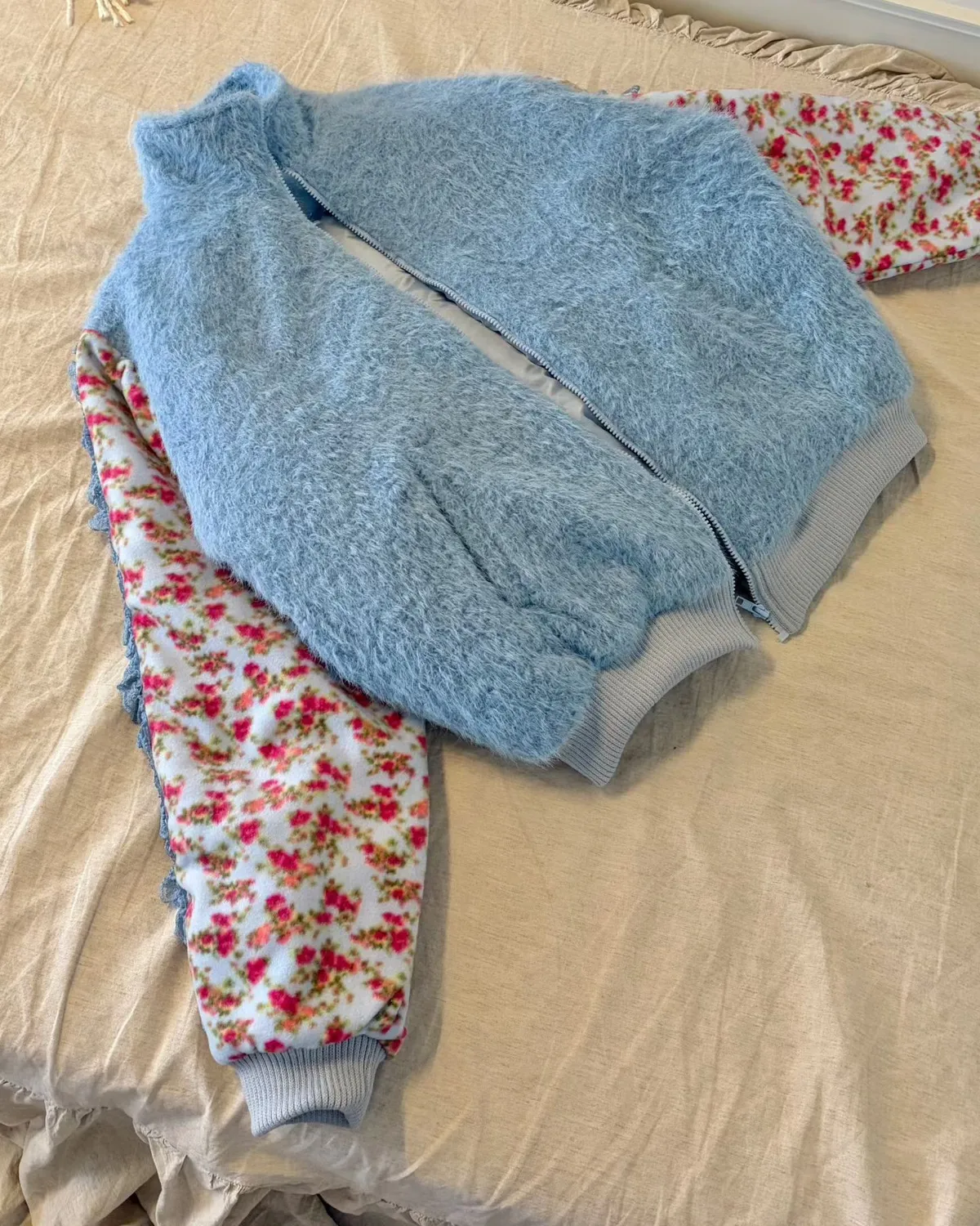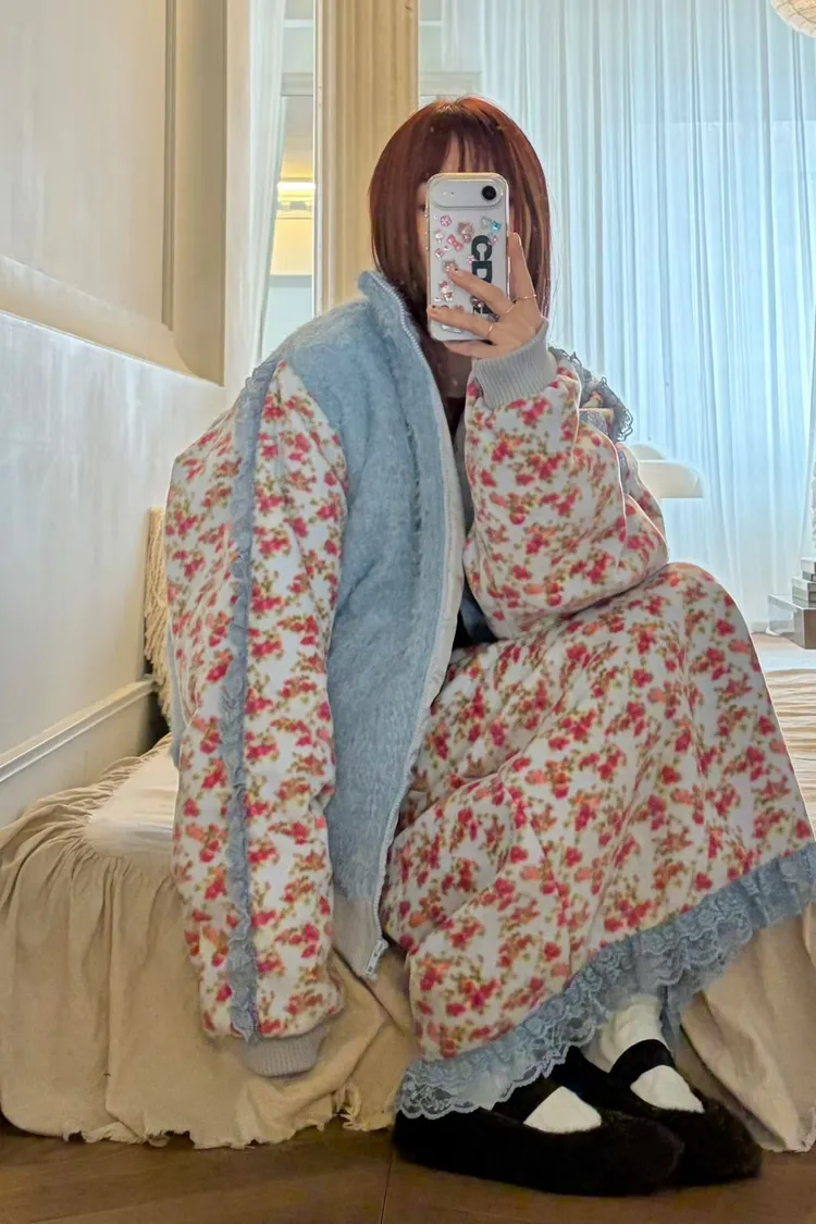 碎花部分的面料是搖粒絨