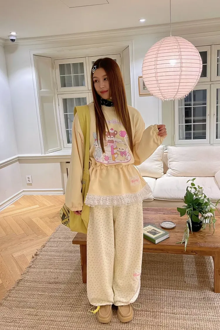 長褲腰部整圈彈性鬆緊、褲腳有抽繩收縮不拖地,有口袋