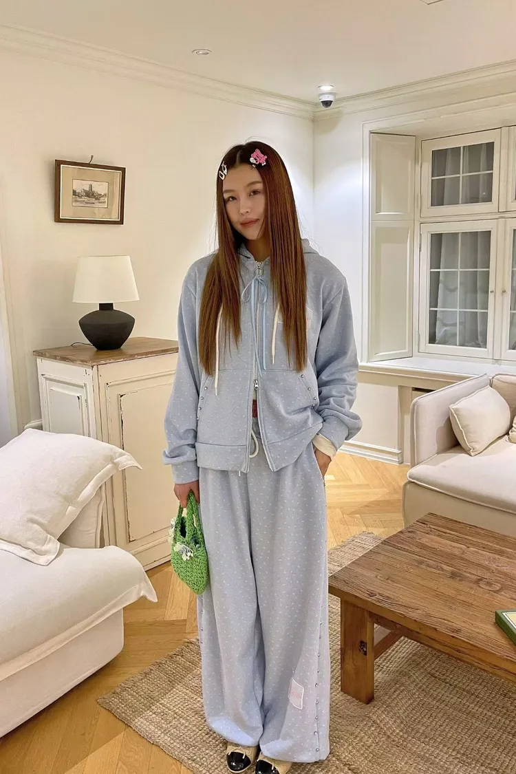 外套口袋和長褲側邊都有鉚釘和水鑽的點綴,低調閃亮,細看超加分