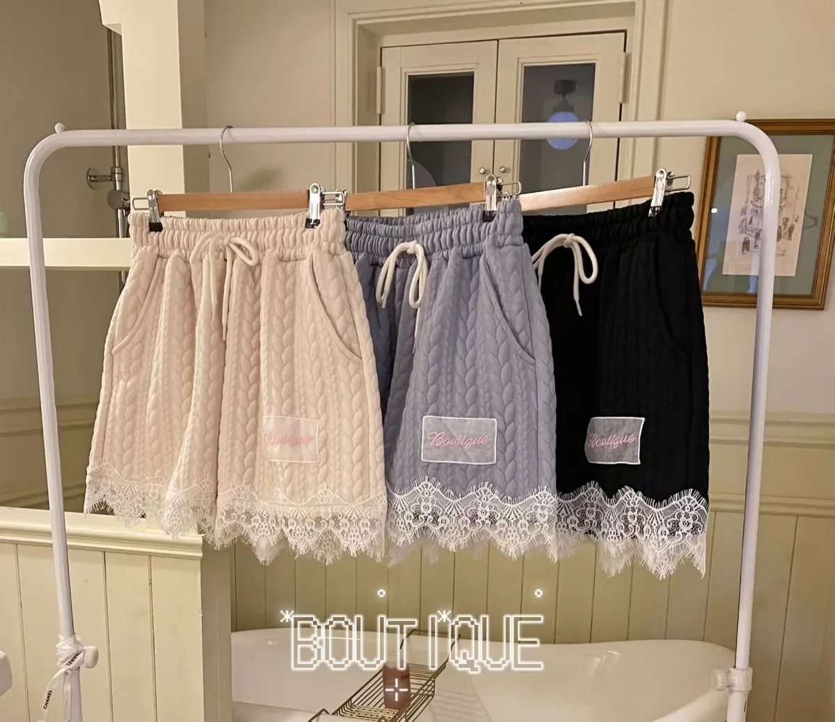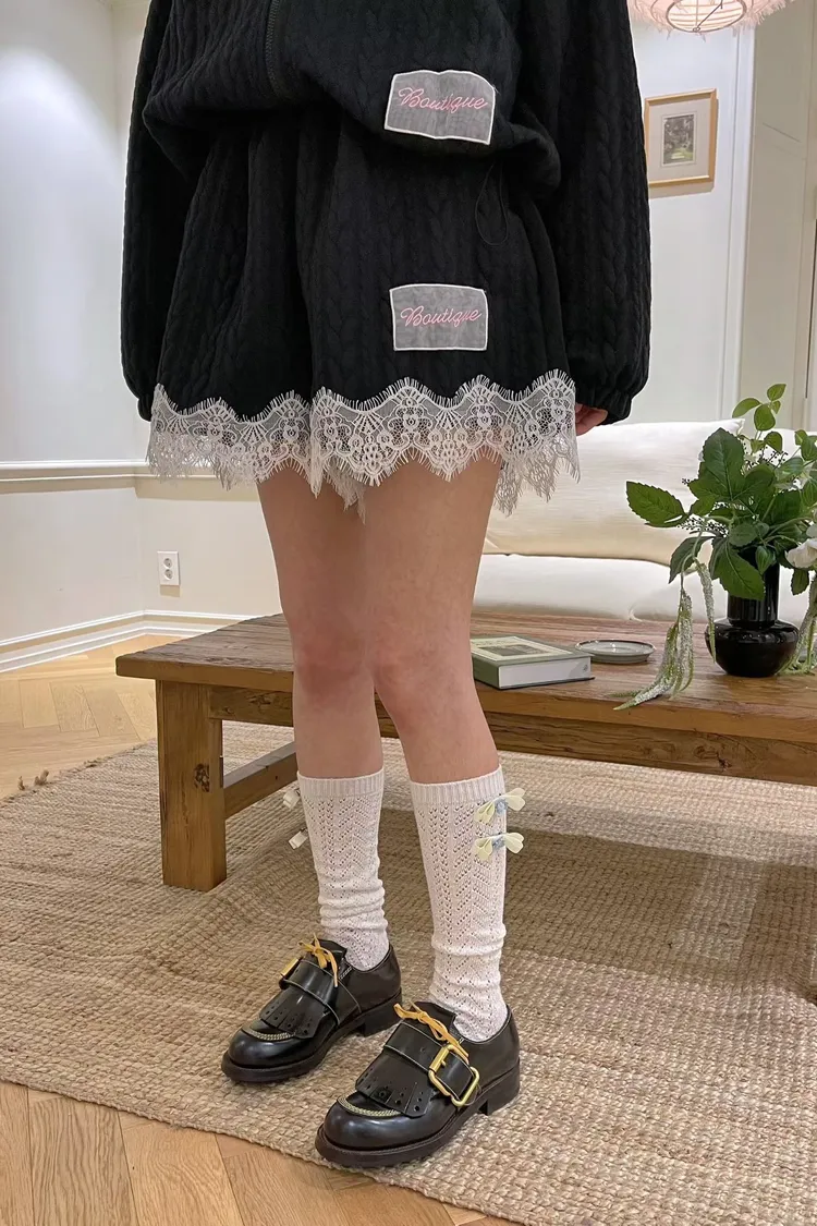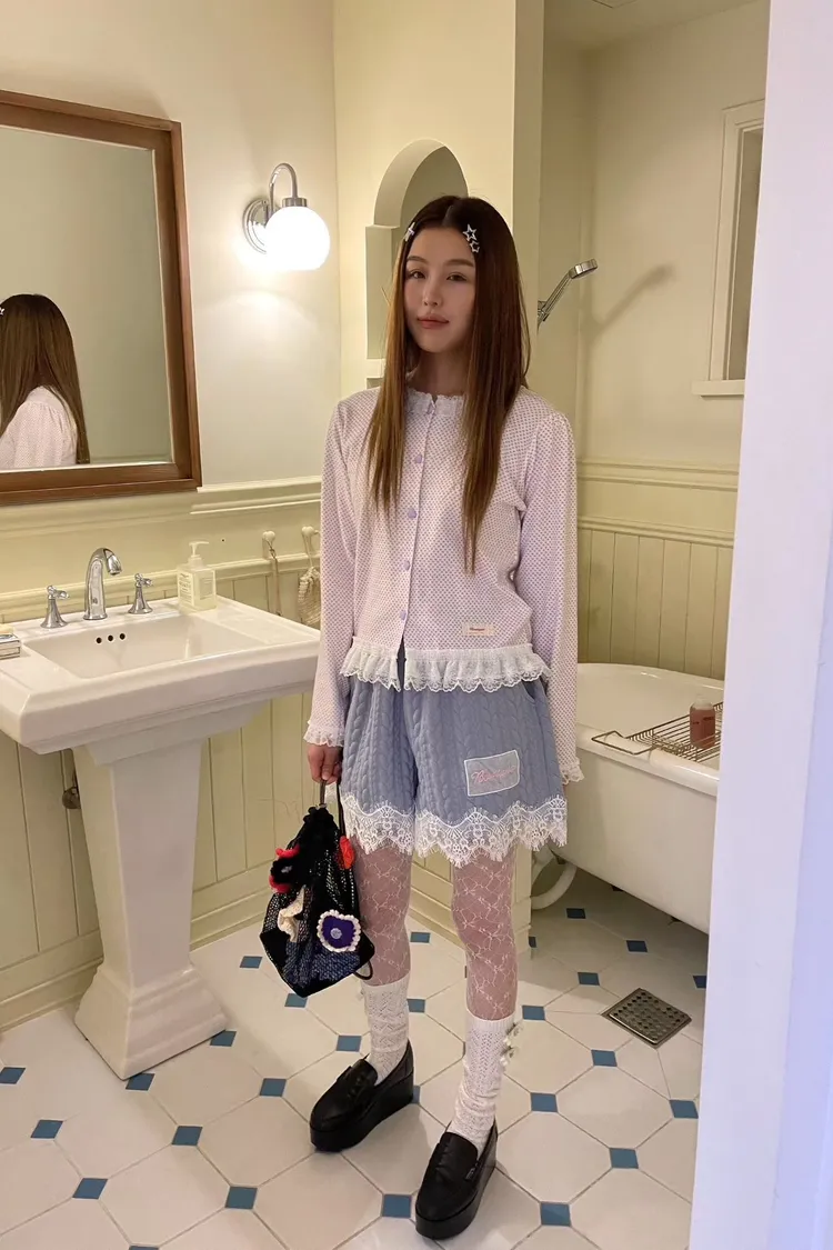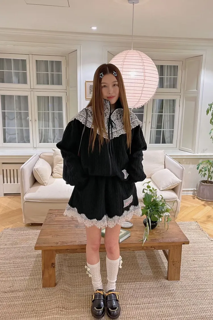 精緻又不失可愛的氛圍 立體織紋棉料材質摸起來有質感,寬鬆版型,S-XL妞都可以穿 外套立領設計,大片蕾絲拼接,衣襬有收繩可收腰,隨意調整就能穿出好比例 緞帶蝴蝶結拉鍊頭細節真的讓人心動,有口袋 短褲腰部整圈彈性鬆緊,褲腳也都有蕾絲拼接,有口袋 成套穿甜美又有存在感,單穿混搭也一樣超加分