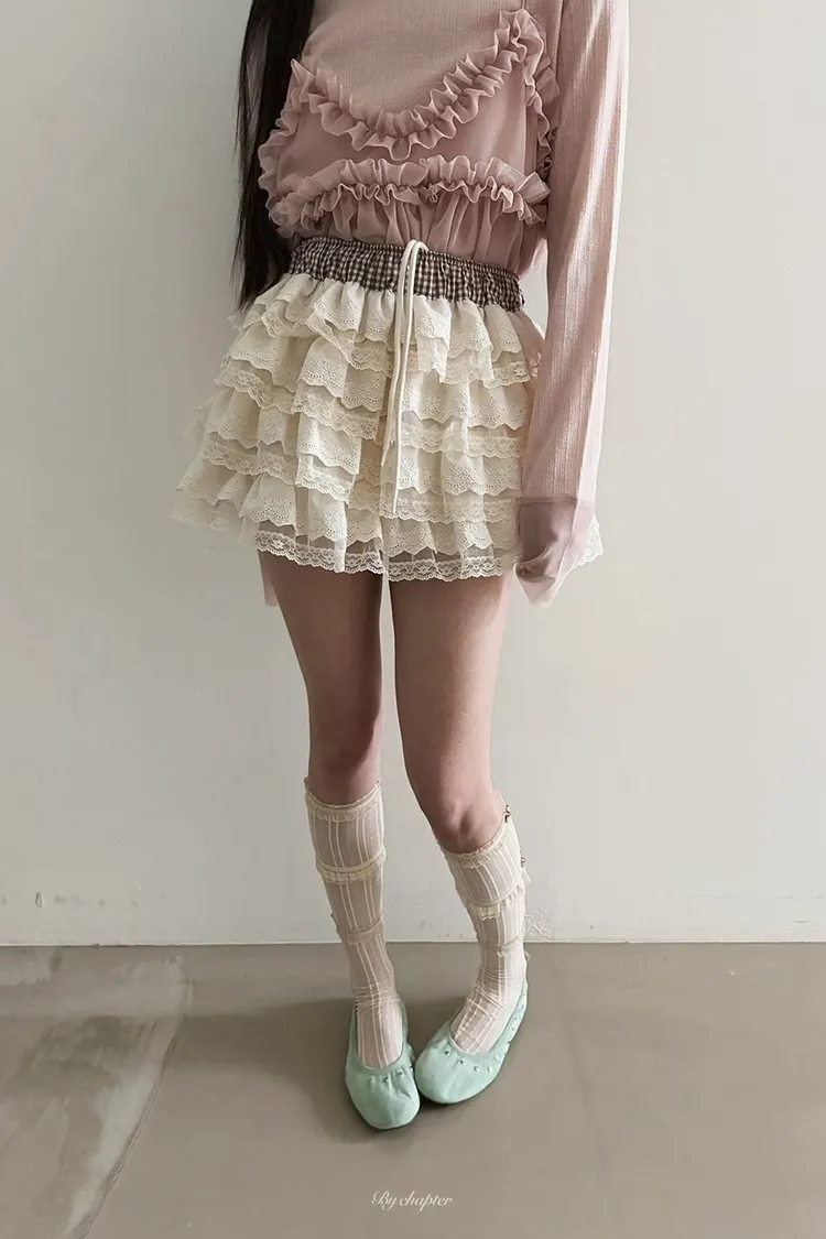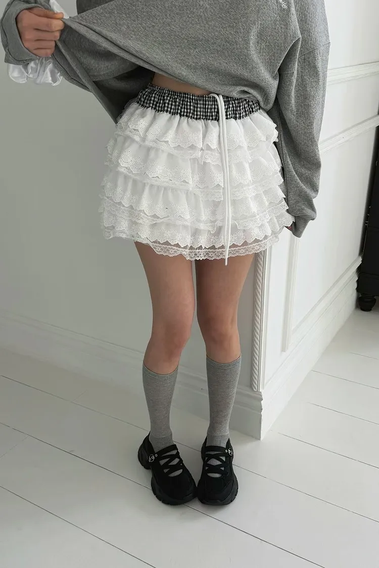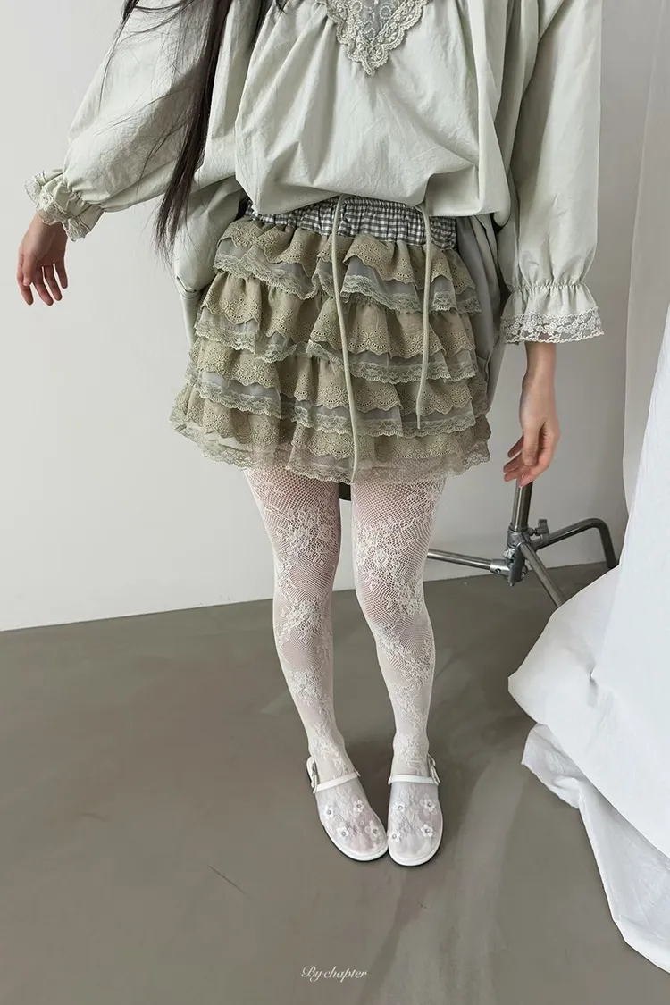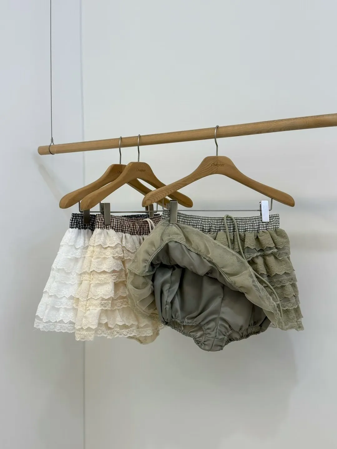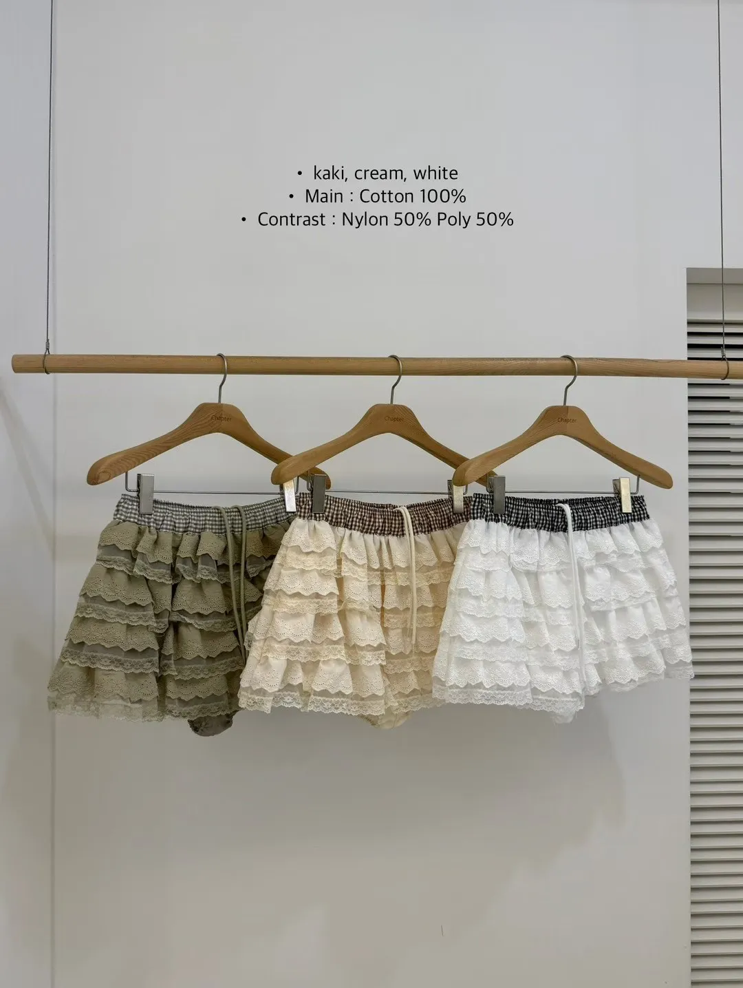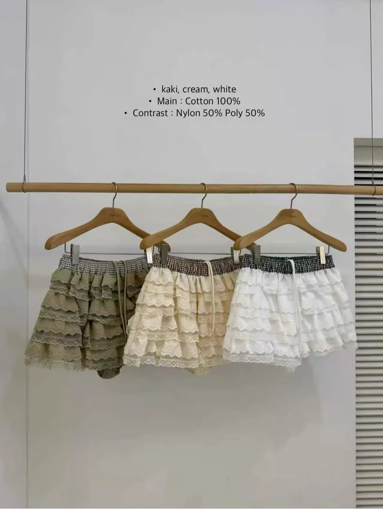 甜美又帶小仙氣~ 燒花布蕾絲,蛋糕層次拼接光澤感網紗蕾絲整體層次豐富又浪漫 腰頭是格紋棉料,S-L妞都可以穿,舒適又貼合 內裡是褲腳收縮南瓜褲~完全不會走光,穿起來安全又自在 像短褲又像小裙子,俏皮感滿分,是春夏出門必收的夢幻單品
