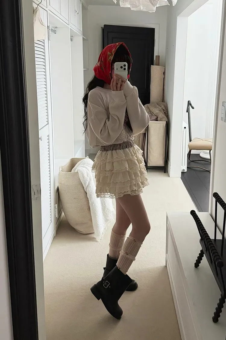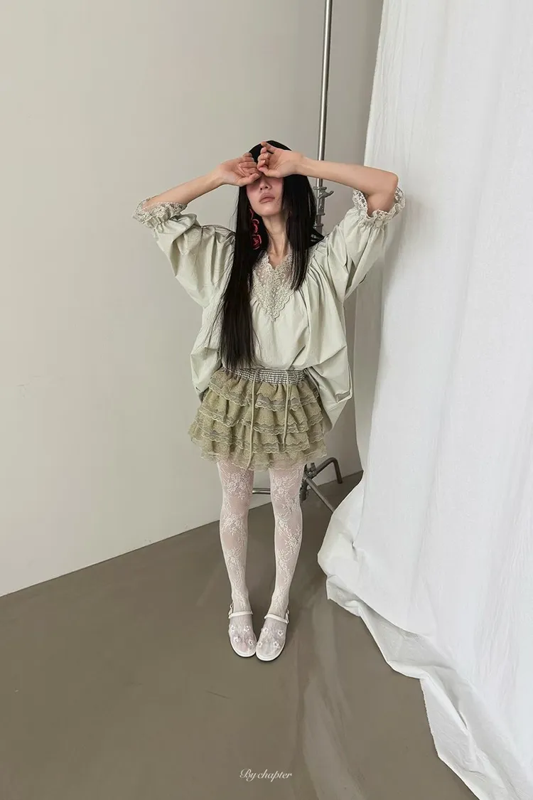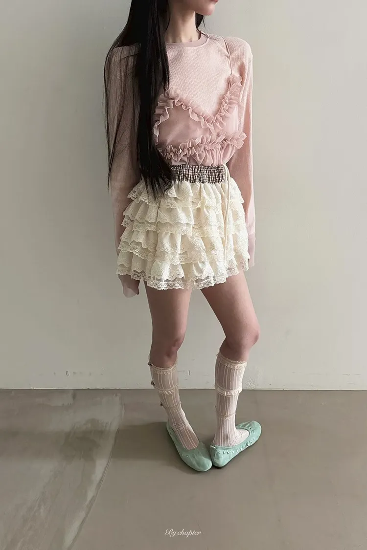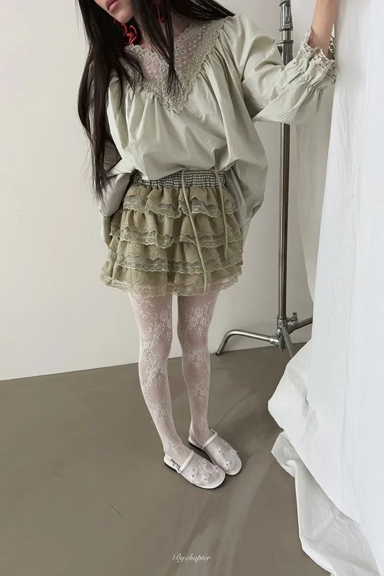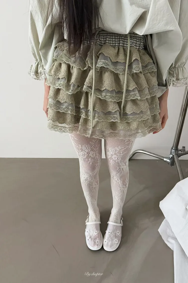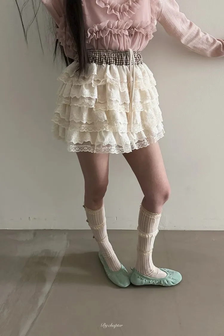 甜美又帶小仙氣~ 燒花布蕾絲,蛋糕層次拼接光澤感網紗蕾絲整體層次豐富又浪漫 腰頭是格紋棉料,S-L妞都可以穿,舒適又貼合 內裡是褲腳收縮南瓜褲~完全不會走光,穿起來安全又自在 像短褲又像小裙子,俏皮感滿分,是春夏出門必收的夢幻單品