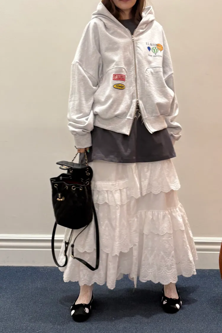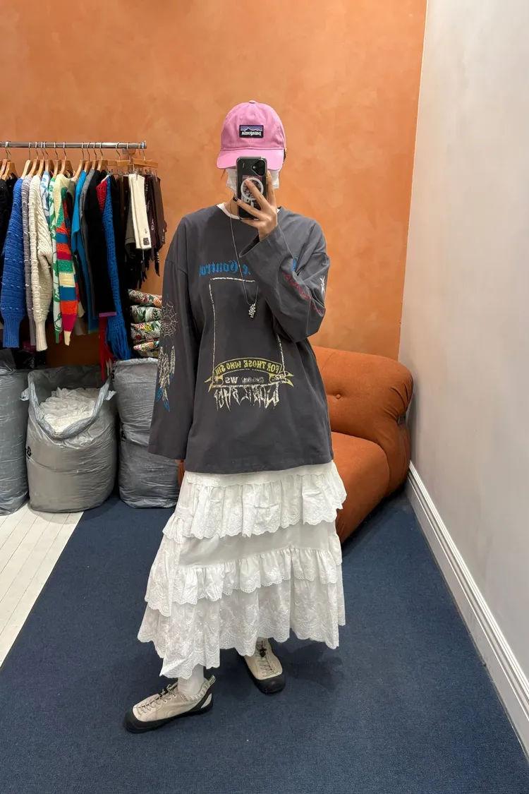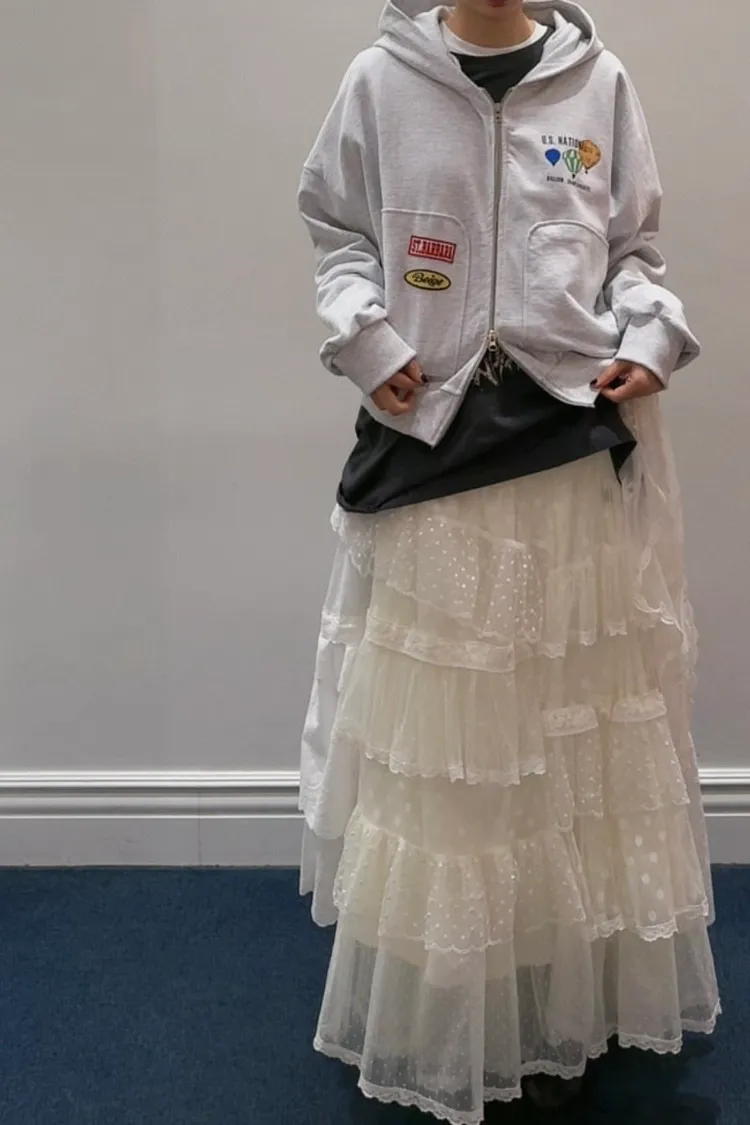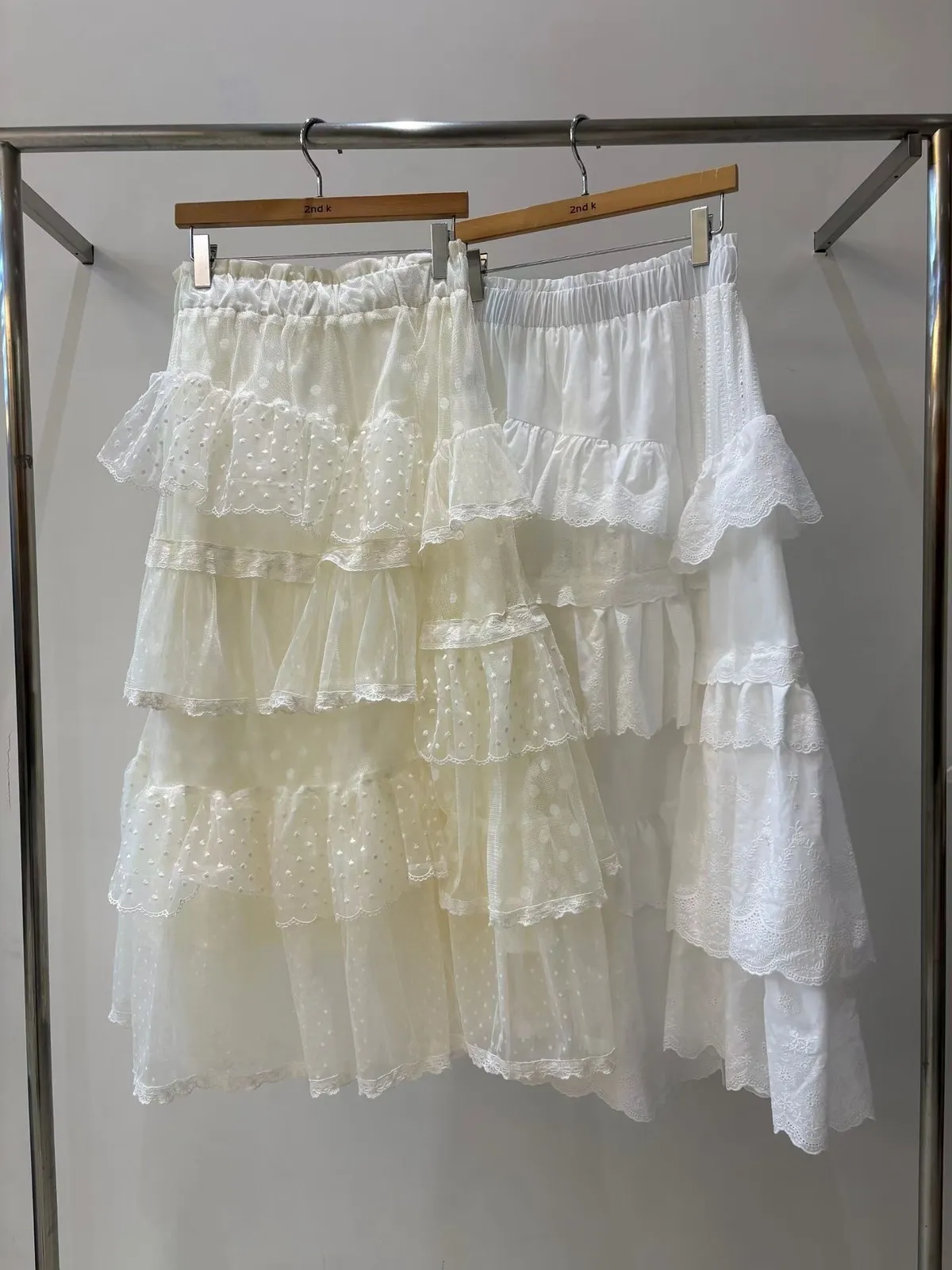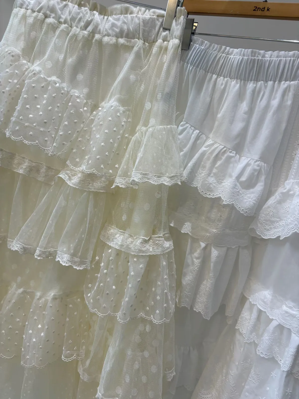 這款真的會讓人忍不住轉圈圈🤍 相同版型,兩個顏色是不同面料玩出兩種氣質 白色款是棉布蕾絲,帶點清新日系感米色是網紗蕾絲,自帶仙氣濾鏡 蕾絲都不是單一種,都是有不同花紋的蕾絲不規則層次拼接高級感直接拉滿 蛋糕裙擺自然澎開,走路會輕輕晃,甜而不膩 腰部整圈彈性鬆緊,S-L妞都可以穿 有內襯