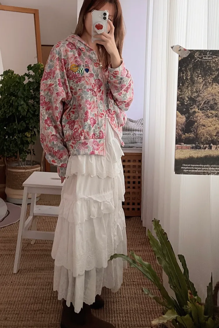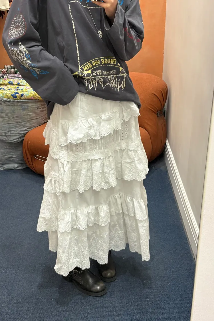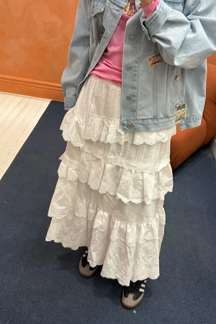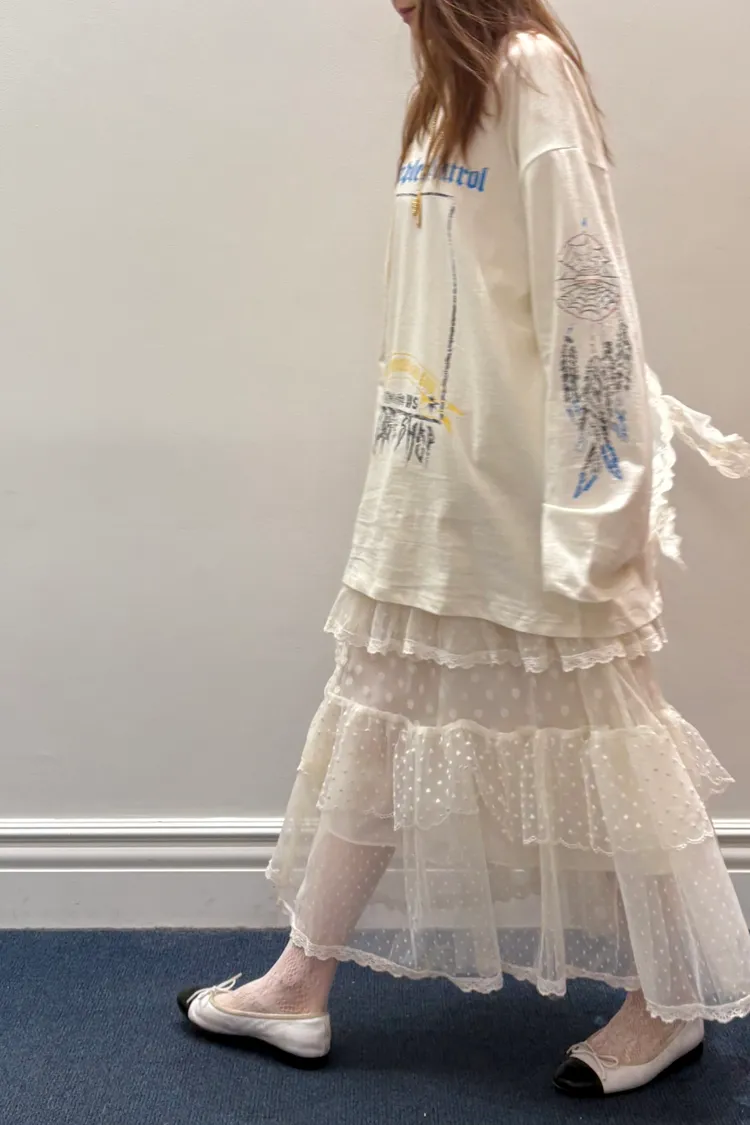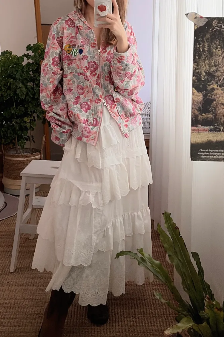 這款真的會讓人忍不住轉圈圈🤍 相同版型,兩個顏色是不同面料玩出兩種氣質 白色款是棉布蕾絲,帶點清新日系感米色是網紗蕾絲,自帶仙氣濾鏡 蕾絲都不是單一種,都是有不同花紋的蕾絲不規則層次拼接高級感直接拉滿 蛋糕裙擺自然澎開,走路會輕輕晃,甜而不膩 腰部整圈彈性鬆緊,S-L妞都可以穿 有內襯