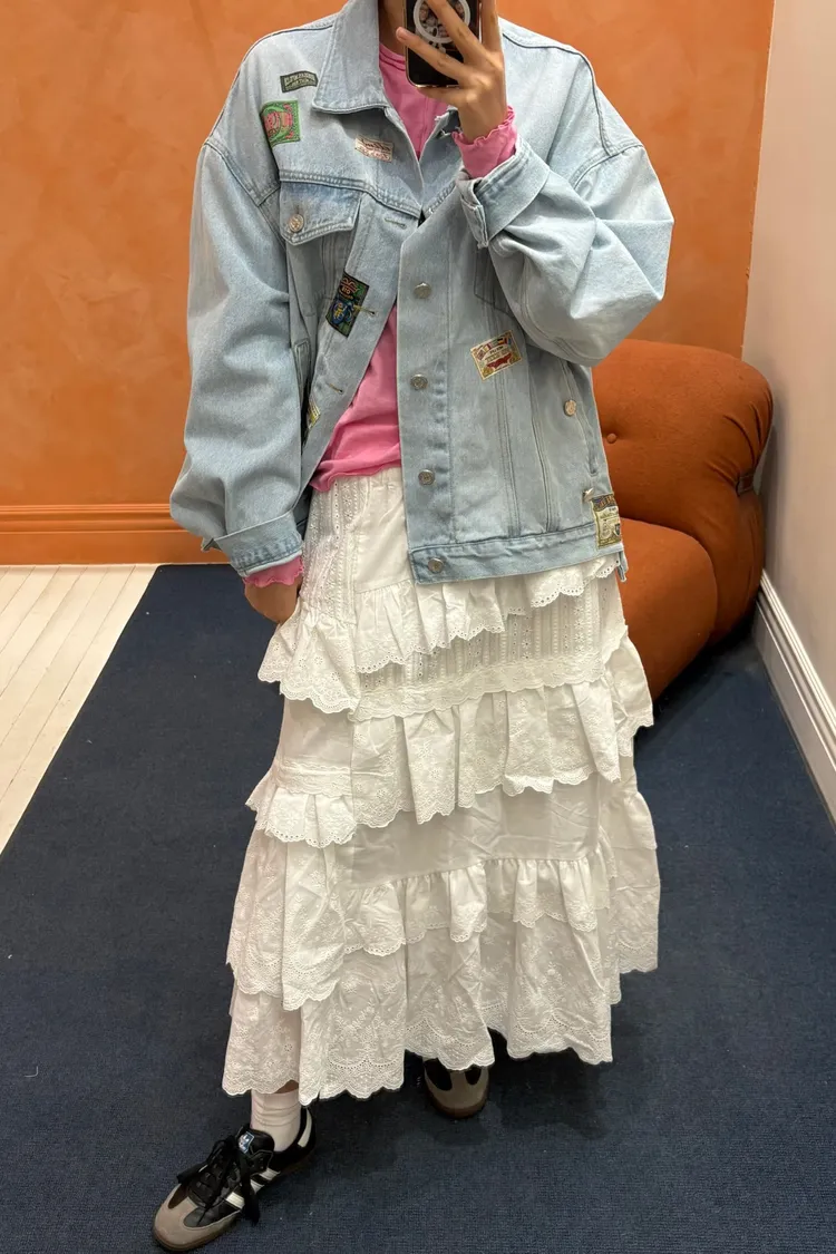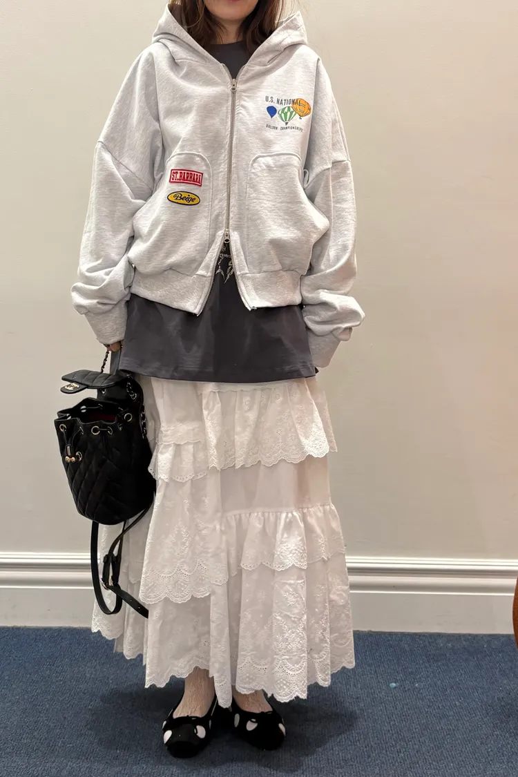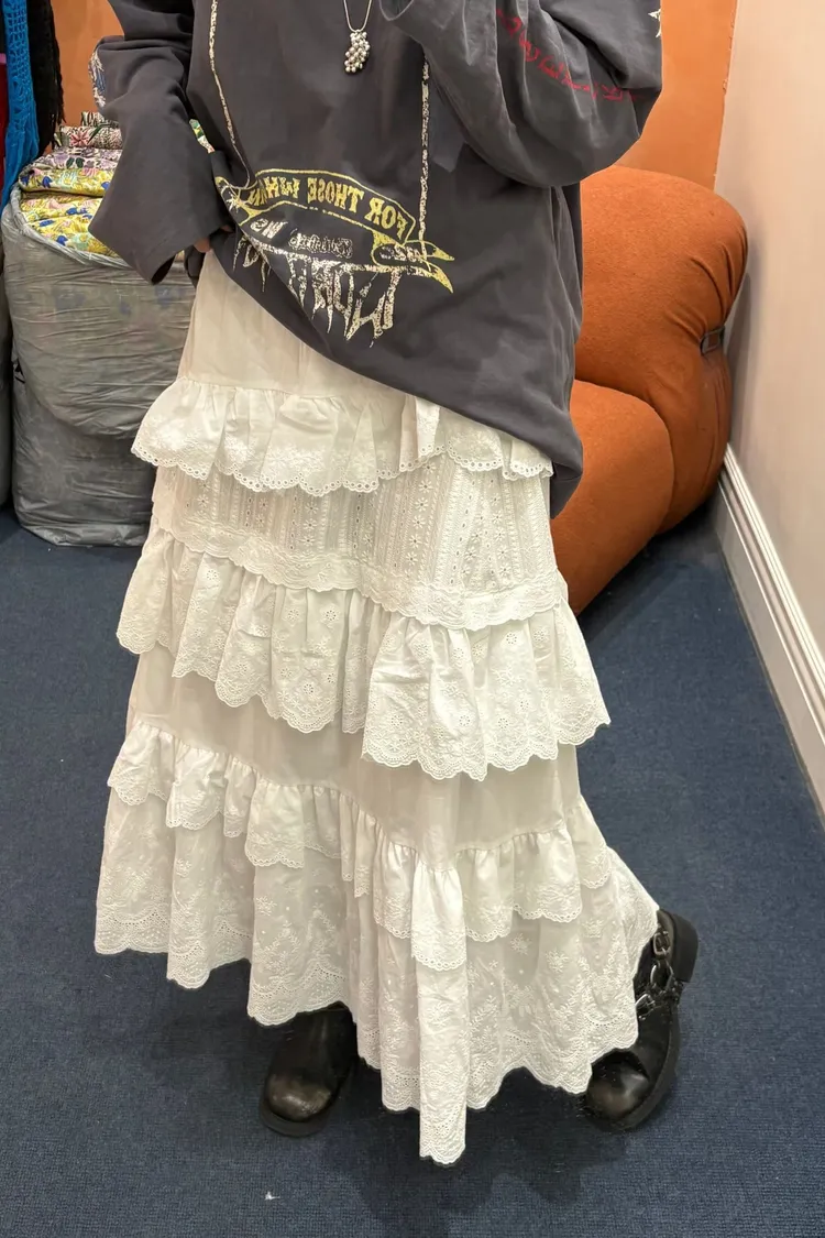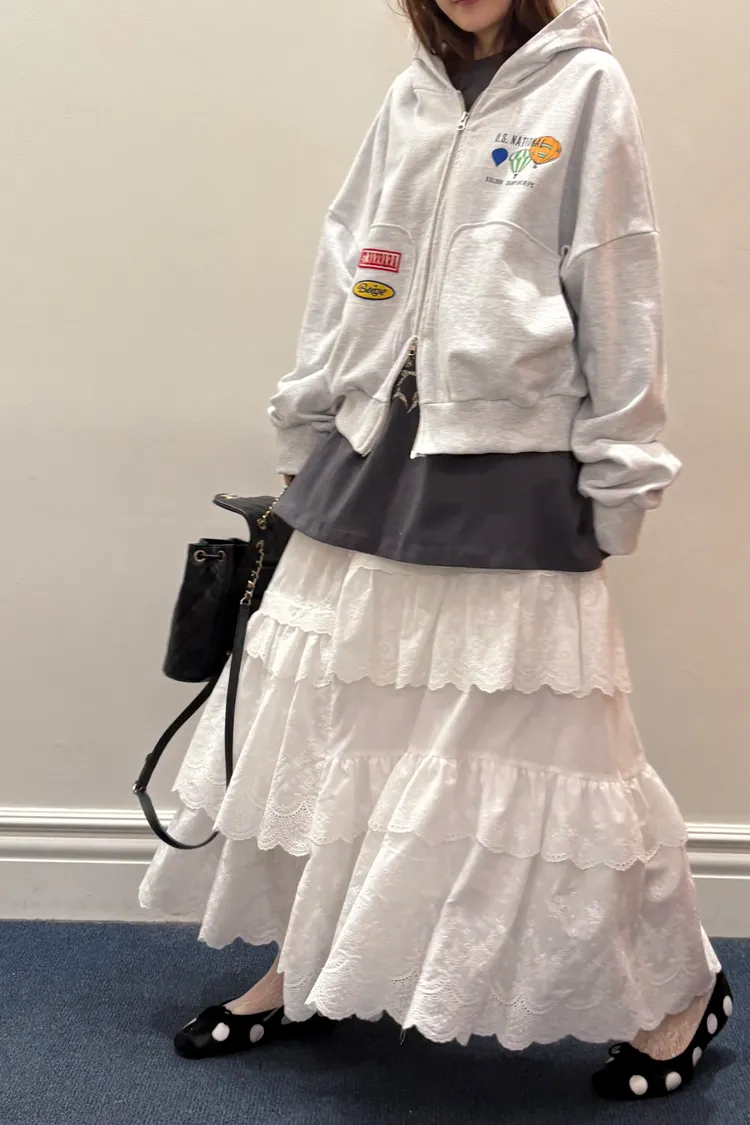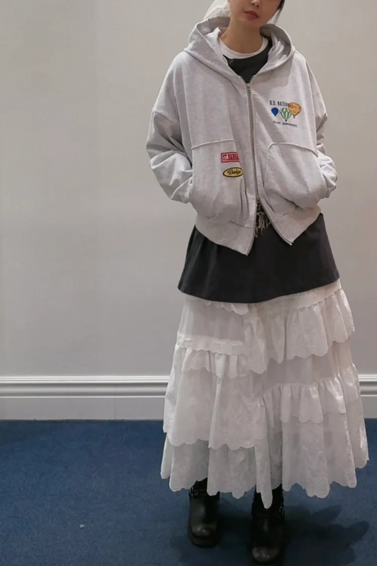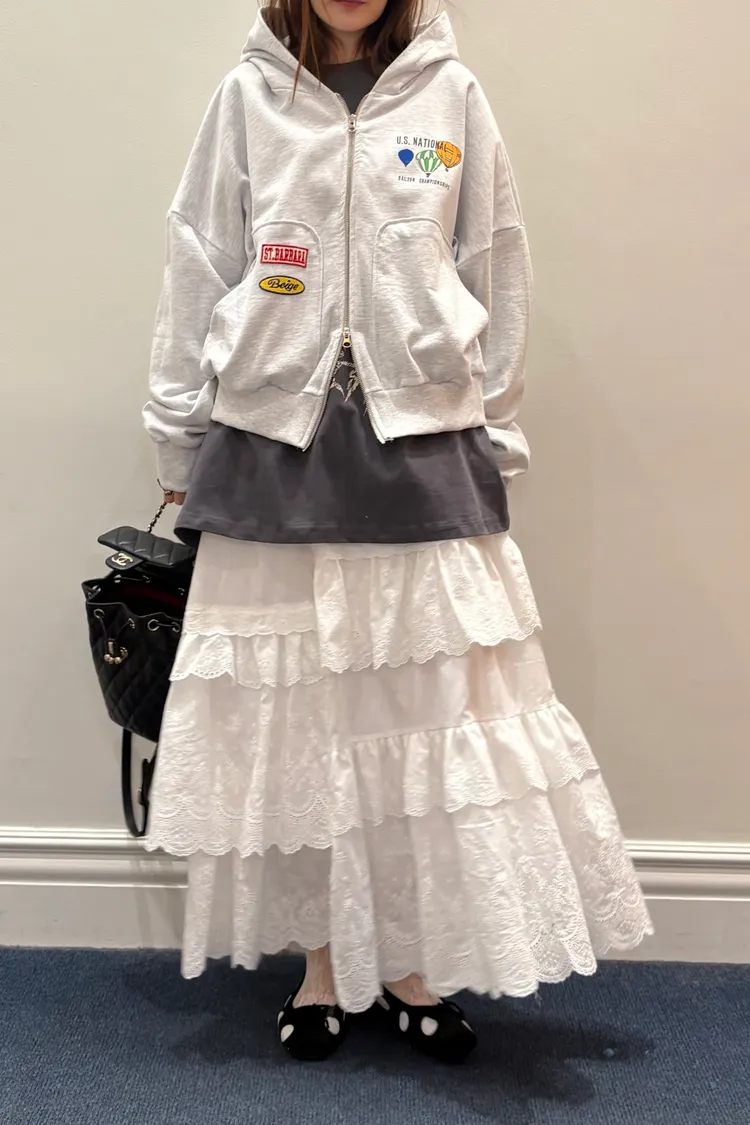 這款真的會讓人忍不住轉圈圈🤍 相同版型,兩個顏色是不同面料玩出兩種氣質 白色款是棉布蕾絲,帶點清新日系感米色是網紗蕾絲,自帶仙氣濾鏡 蕾絲都不是單一種,都是有不同花紋的蕾絲不規則層次拼接高級感直接拉滿 蛋糕裙擺自然澎開,走路會輕輕晃,甜而不膩 腰部整圈彈性鬆緊,S-L妞都可以穿 有內襯