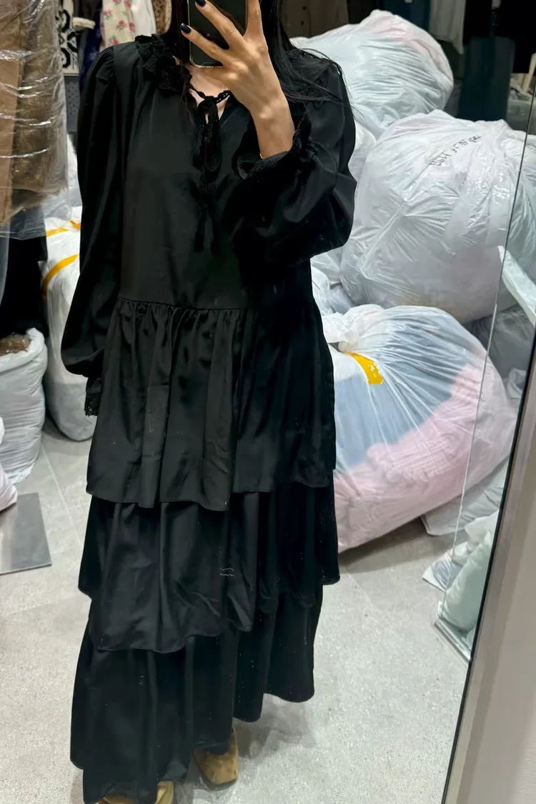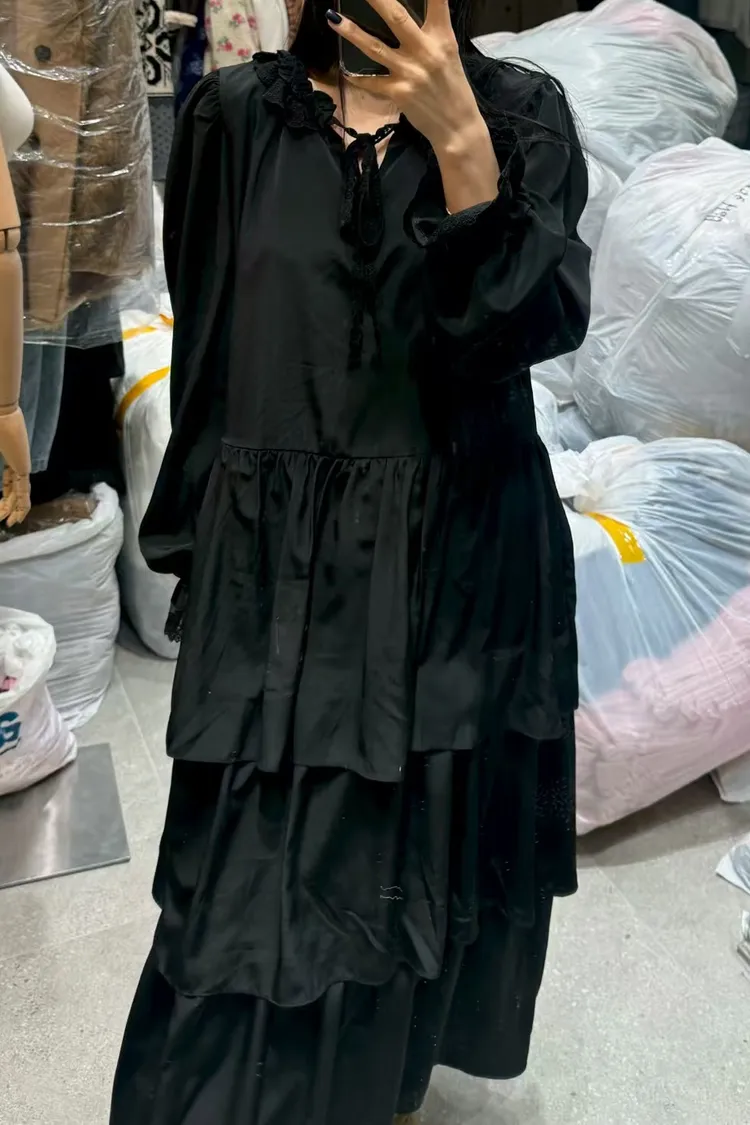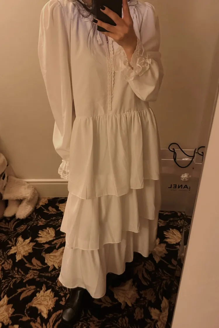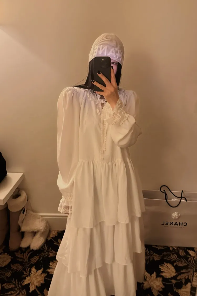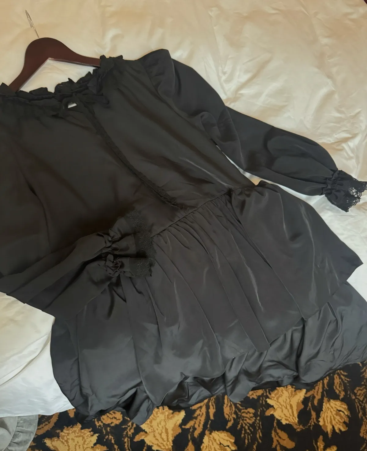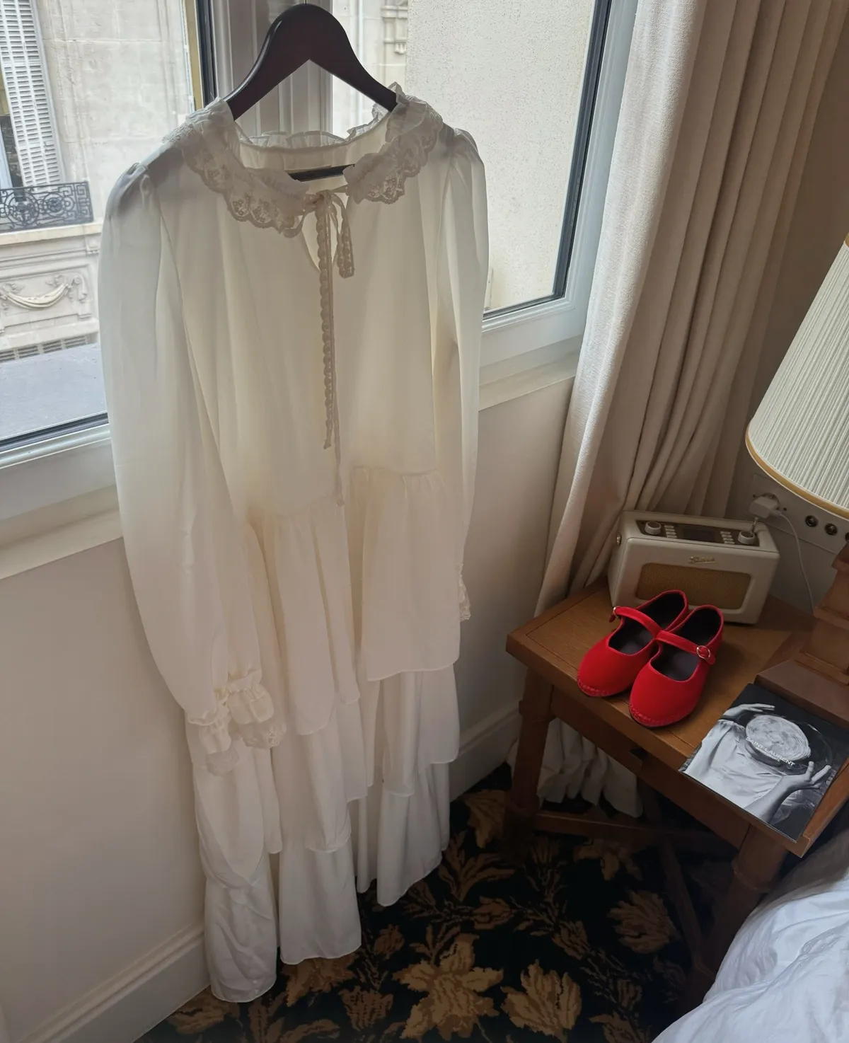 絲緞感聚脂纖維面料,穿起來輕盈舒適 層次蛋糕裙擺甜美又俏皮,修飾身型 寬鬆版型,S-L妞都可以穿 V 領搭配抓折花邊拼接緞帶蕾絲,加上可愛緞帶綁帶設計 想自然垂墜或綁成蝴蝶結都超仙氣 袖口彈性鬆緊,拼接網紗蕾絲,讓整體甜美又有層次感