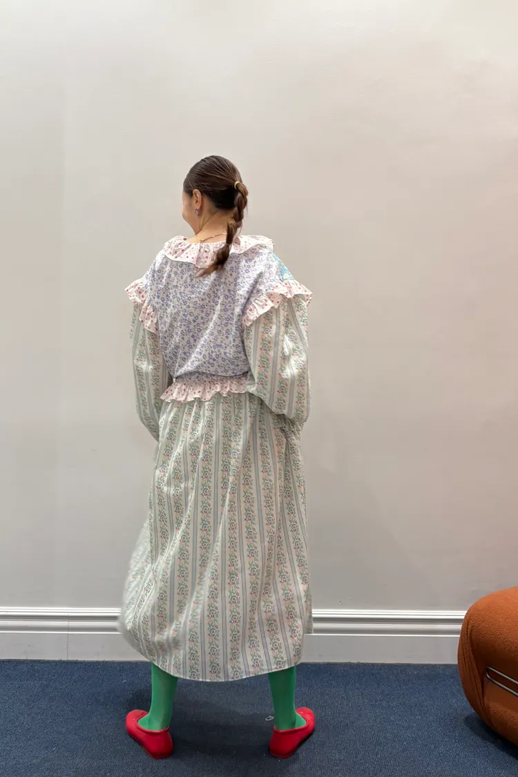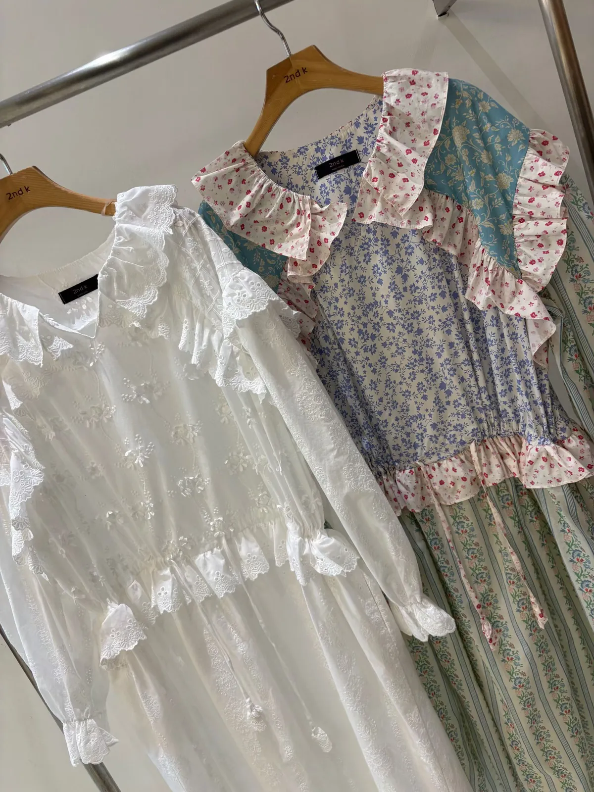 碎花拼接棉料材質輕柔親膚、腰部有拼接抓折加上抽繩可調節腰身線條 比例自然修飾 V領翻領搭配自然垂墜的流蘇設計,走動時線條很美,整體多了點浪漫氛圍 手袖彈性鬆緊的荷葉邊設計甜而不膩,有口袋、有內襯 相同版型,JYD05是棉料蕾絲材質,可一併參考