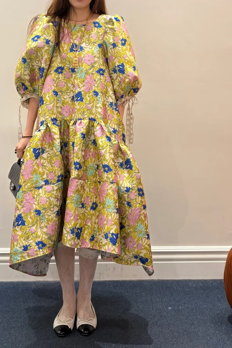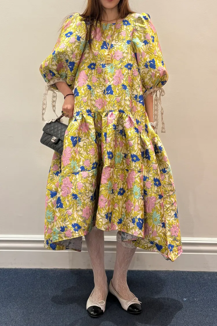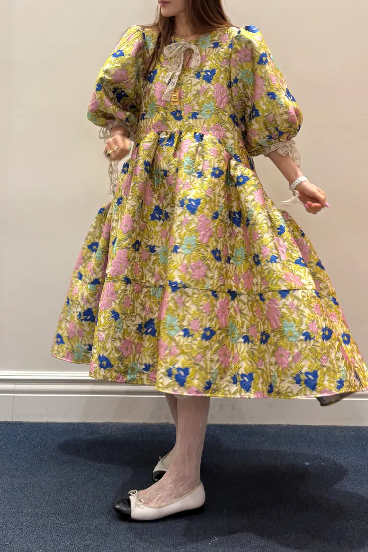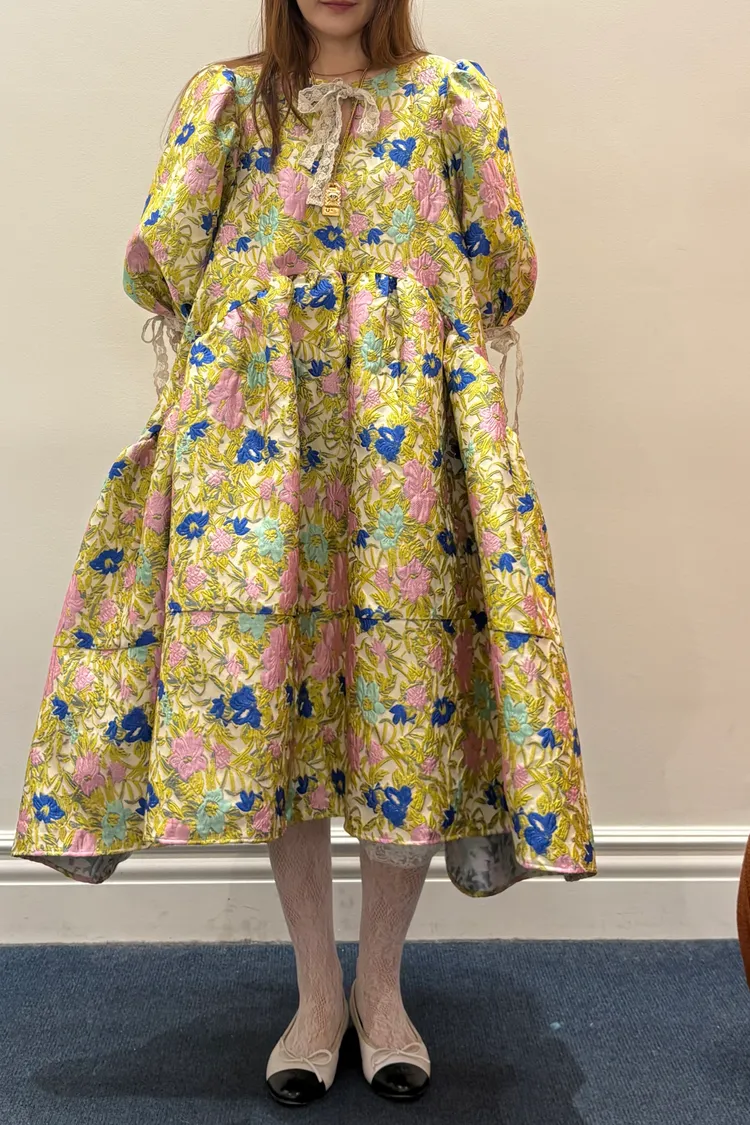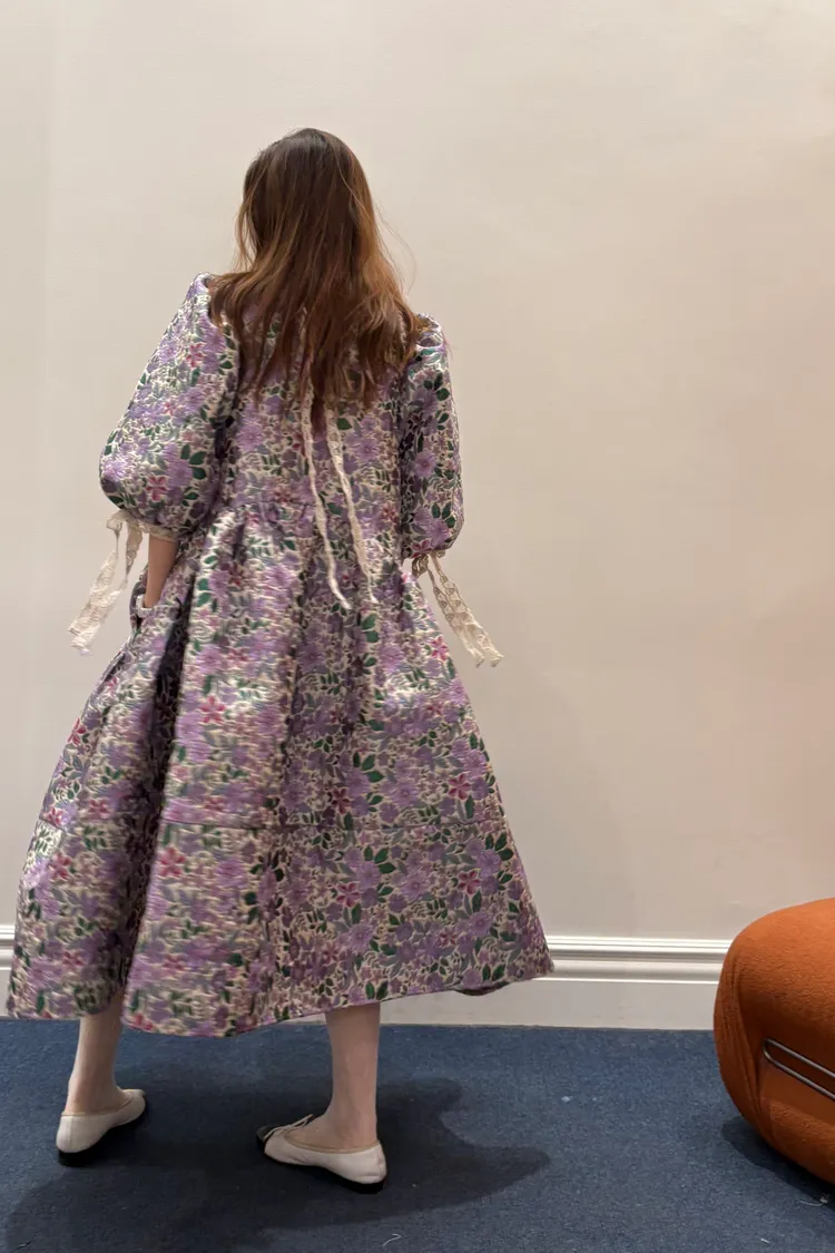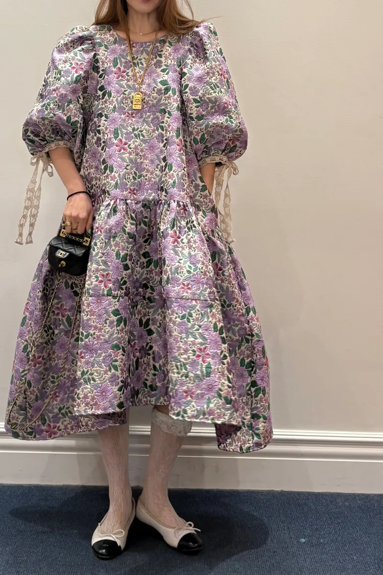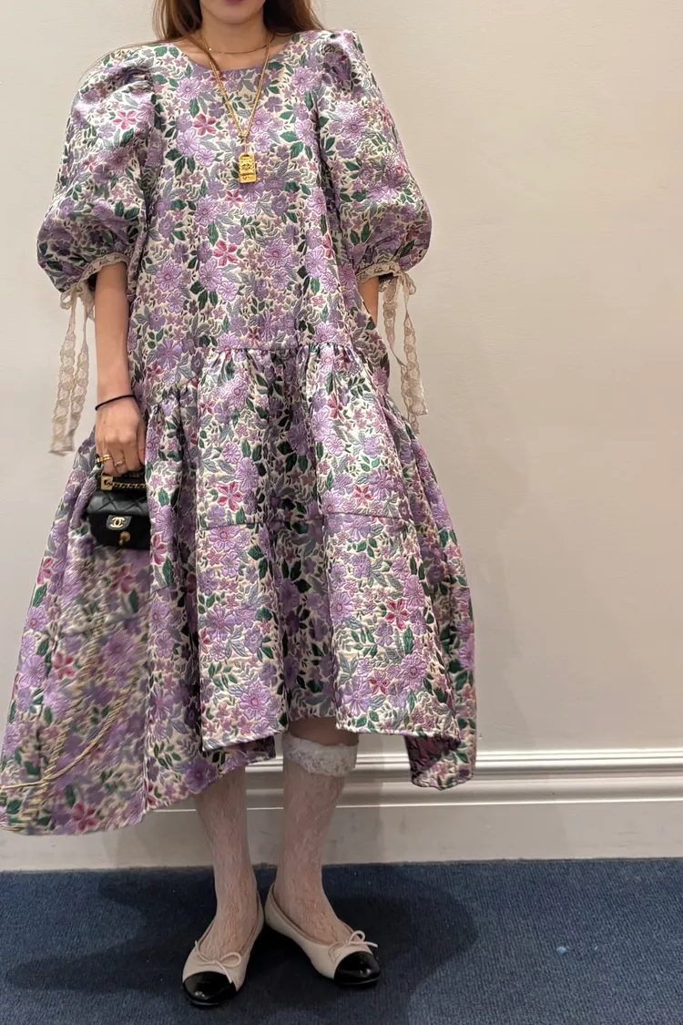 立體宮廷蓬袖,袖口還用蕾絲緞帶滾邊加蝴蝶結收尾,甜得很優雅