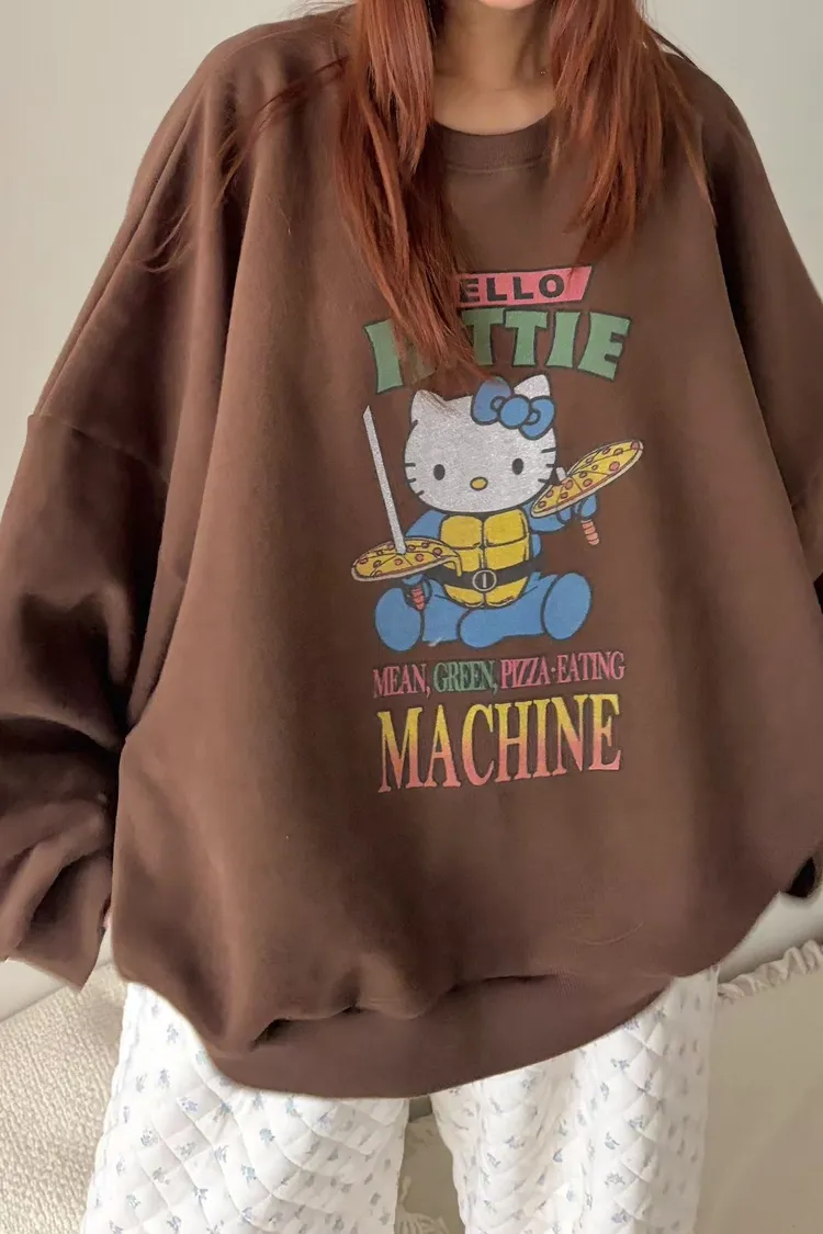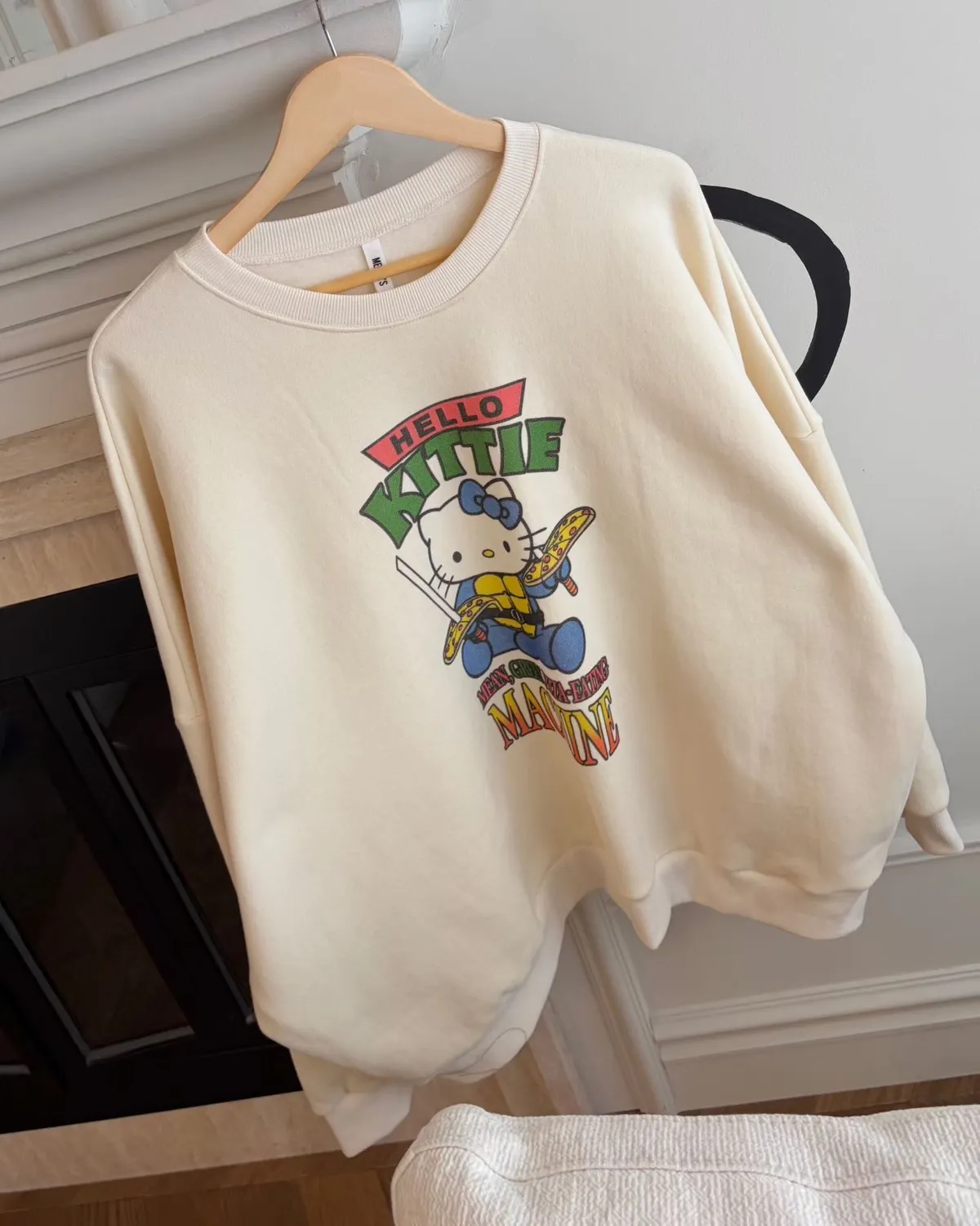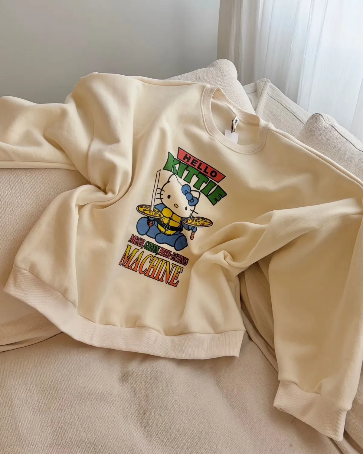 JYT01凱蒂貓忍者龜披薩印花加絨大學T上衣