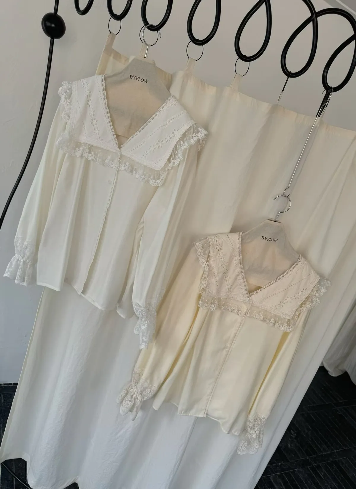 海軍翻領、手袖都有高質感刺繡蕾絲拼接~