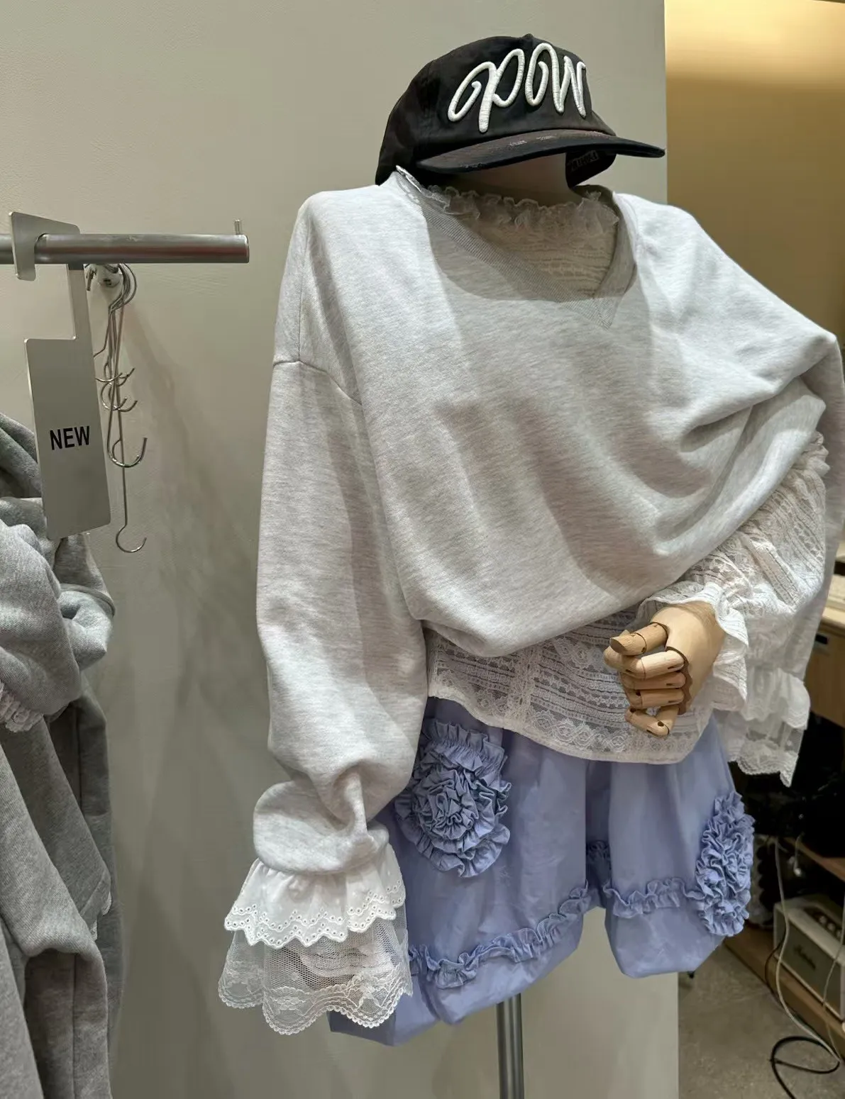 雙層蕾絲手袖拼接讓整體多了甜美細節