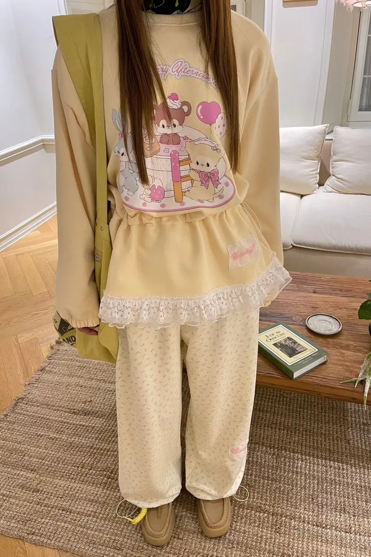 熊熊和兔子一起做蛋糕的萌系印花甜度剛剛好,俏皮卻不幼稚