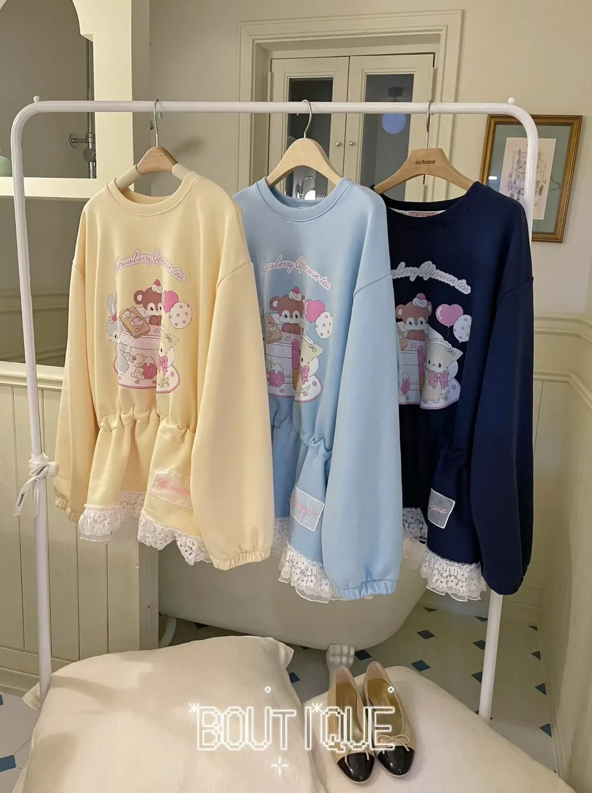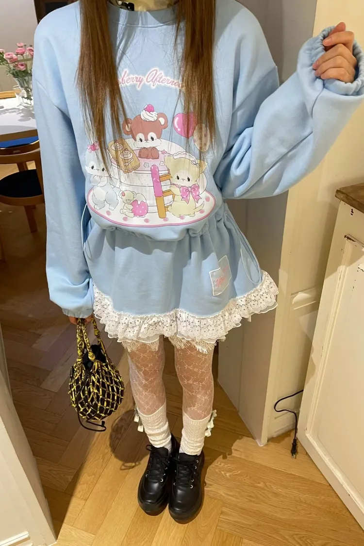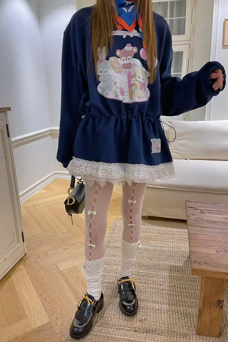 JYT12萌寵甜點派對蕾絲抽繩長版上衣