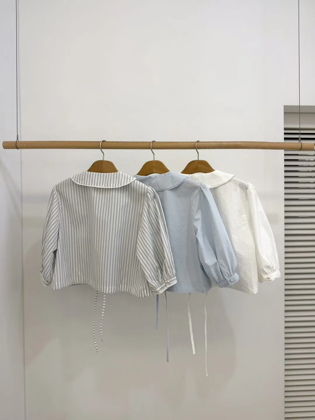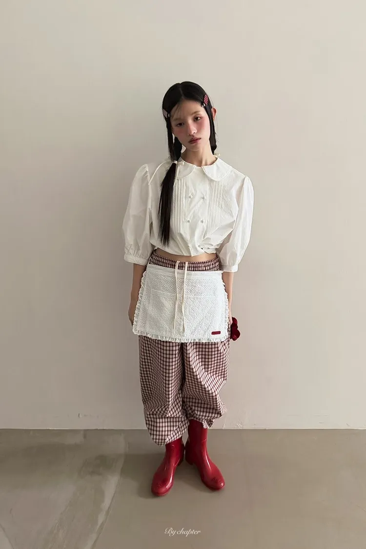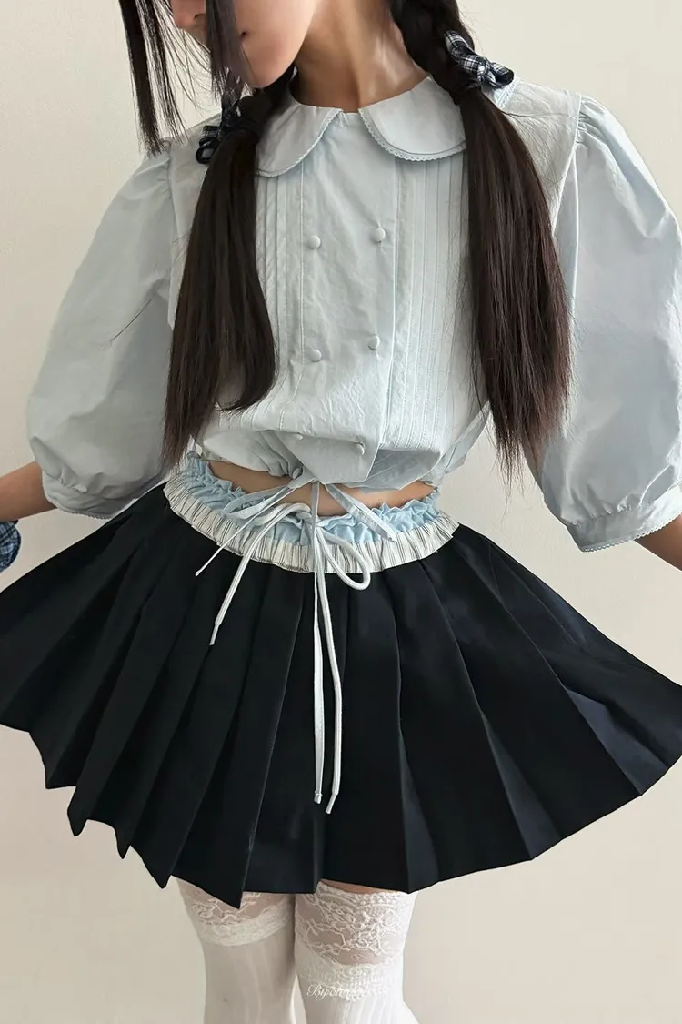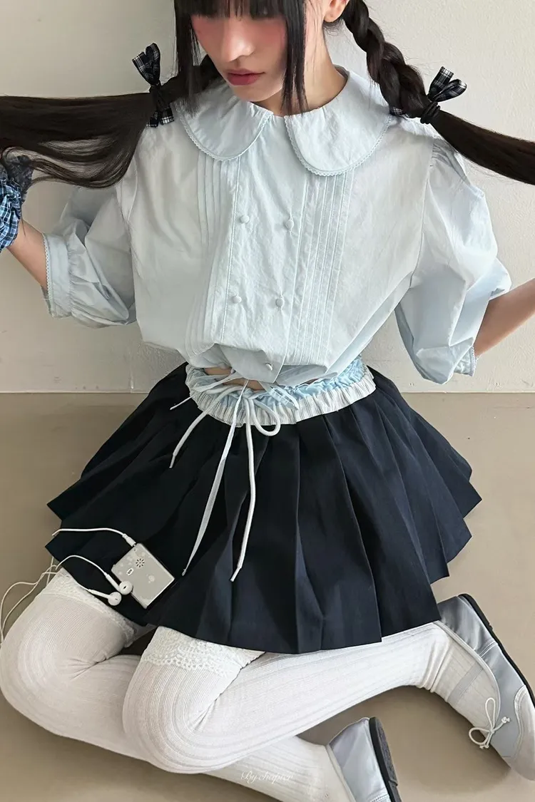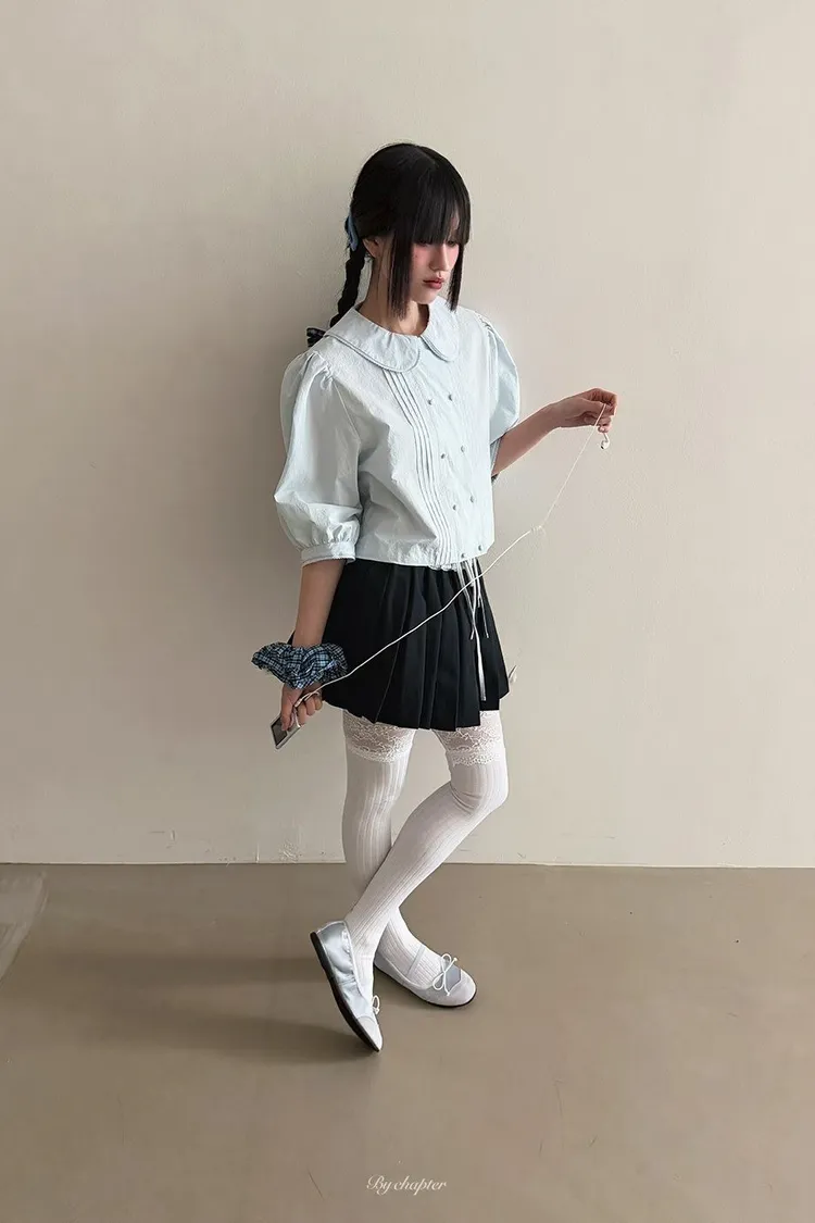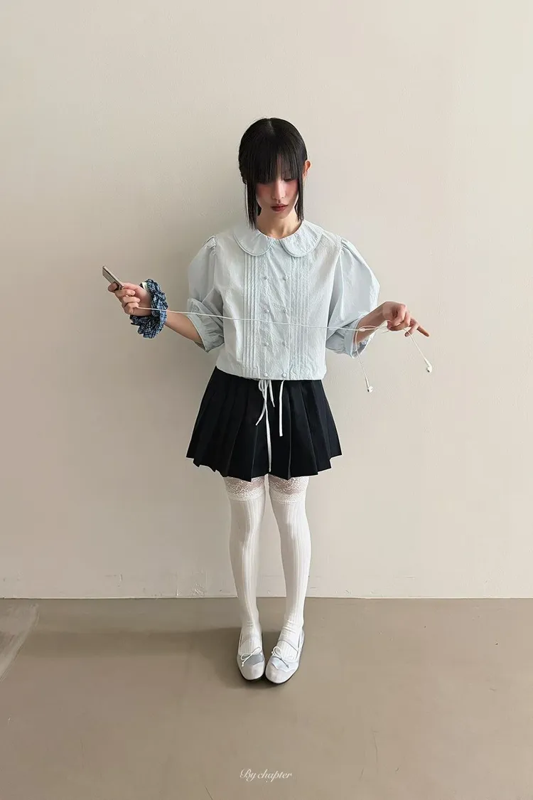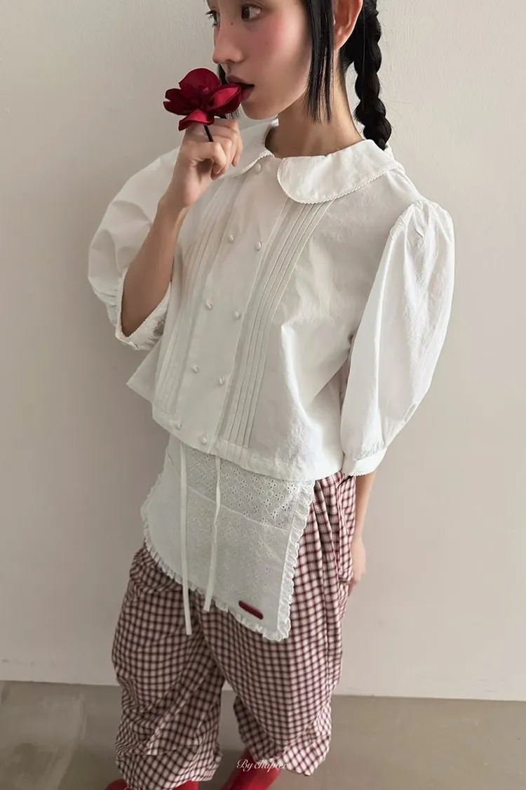 棉料材質輕盈透氣、小圓翻領搭配雙排扣設計整體感覺超級乖巧又帶點小復古氣息 排扣兩側還有打折細節,讓版型更立體有層次感 七分袖短版設計,剛好修飾比例,衣襬有抽繩可收縮,甜美中又帶點率性 歐膩說排扣打開當小罩衫穿也好看,能一路穿到夏天